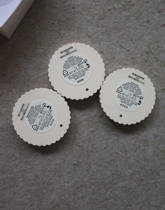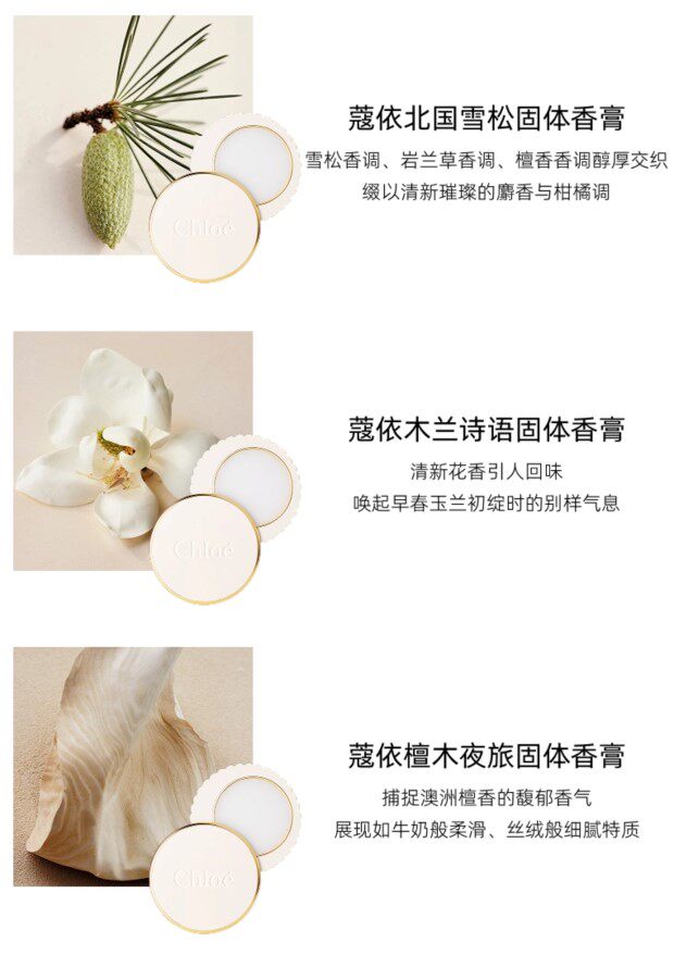 分别三种香型 膏体颜色都一样 都是Ta家标志性的香氛 花香与木香的特征