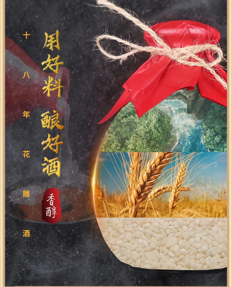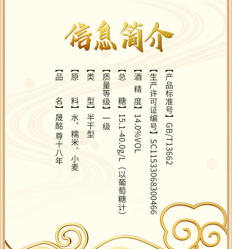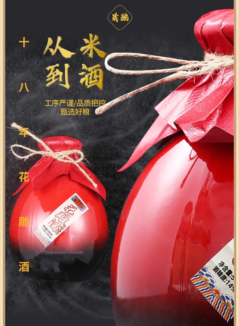 【年货节活动:2箱 送1坛子1.5斤10年黄酒;3箱 送2坛子1.5斤10年黄酒】绍兴特产 无焦糖色 晟酩尊十八年 半干型黄酒14度 整箱