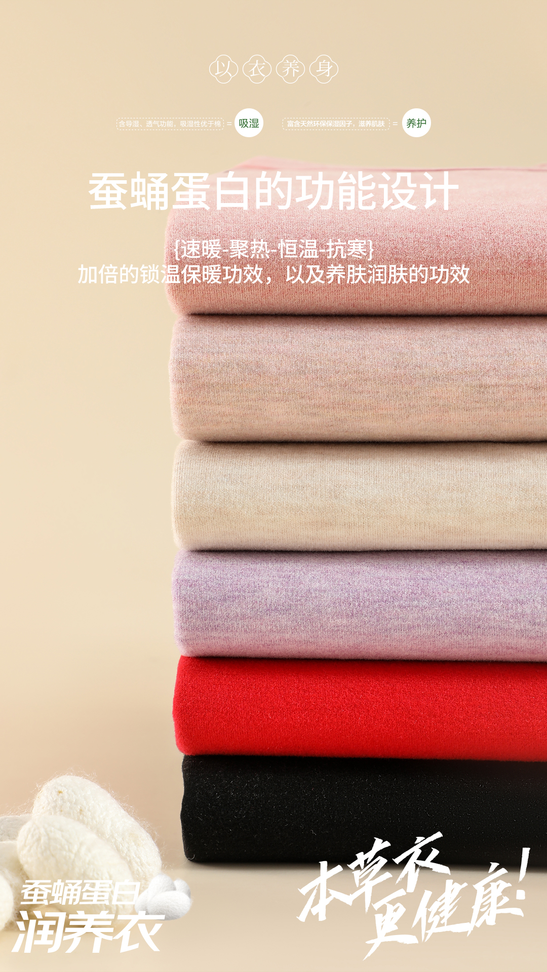 ✅双面磨毛工艺加持,暖感加倍,锁温透气,出汗不黏腻,轻盈过冬。 从桑叶到丝线,每一步都延续自然的温柔。
