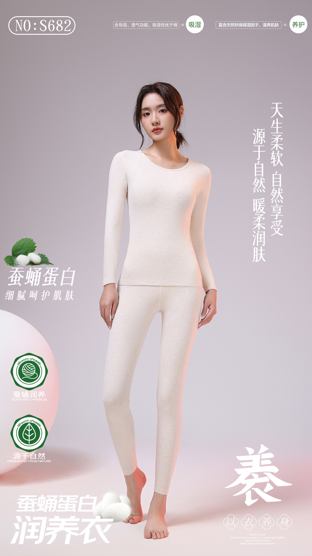 松植屋女款蚕蛹蛋白润养衣套装