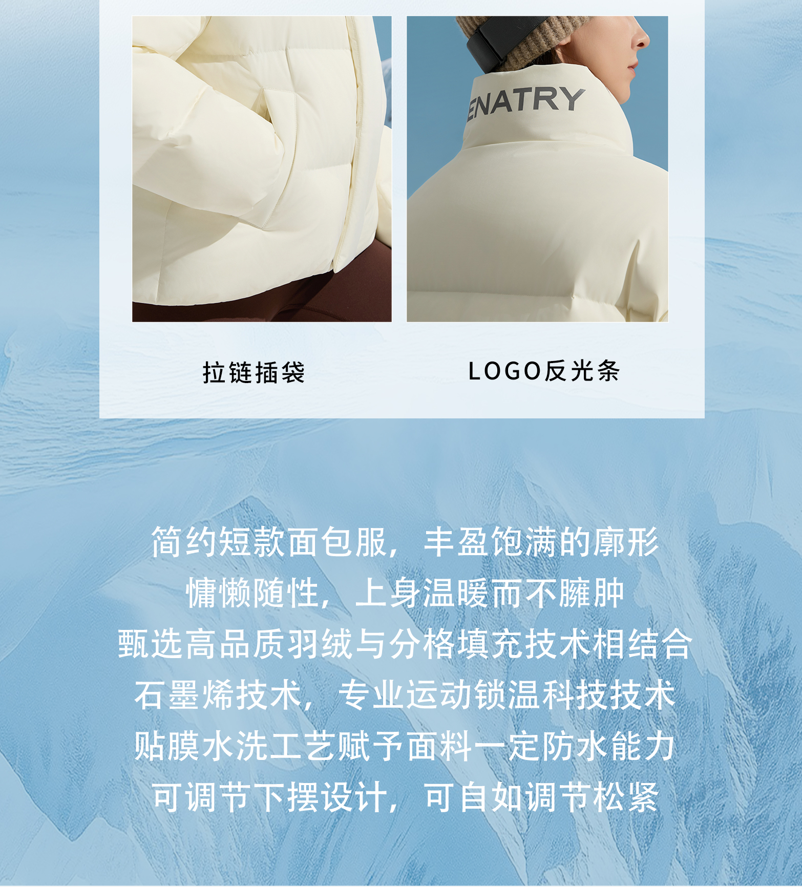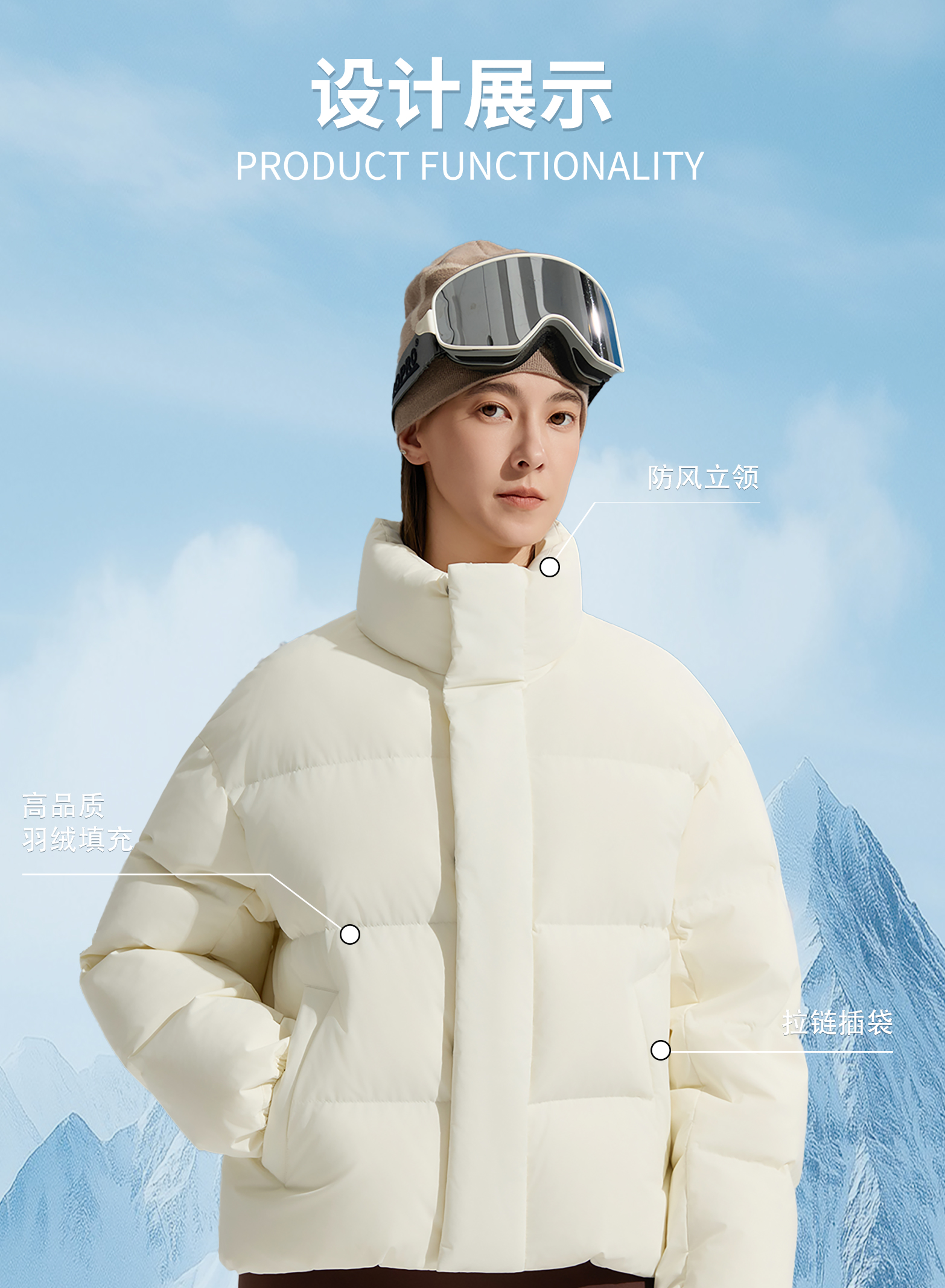 BENATRY贝纳川女生短款保暖立领户外90白鸭绒羽绒服外套秋冬新品EGF405307