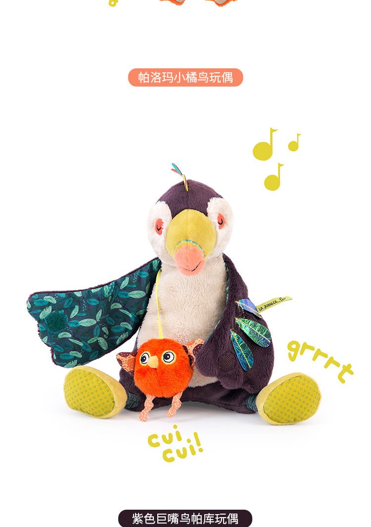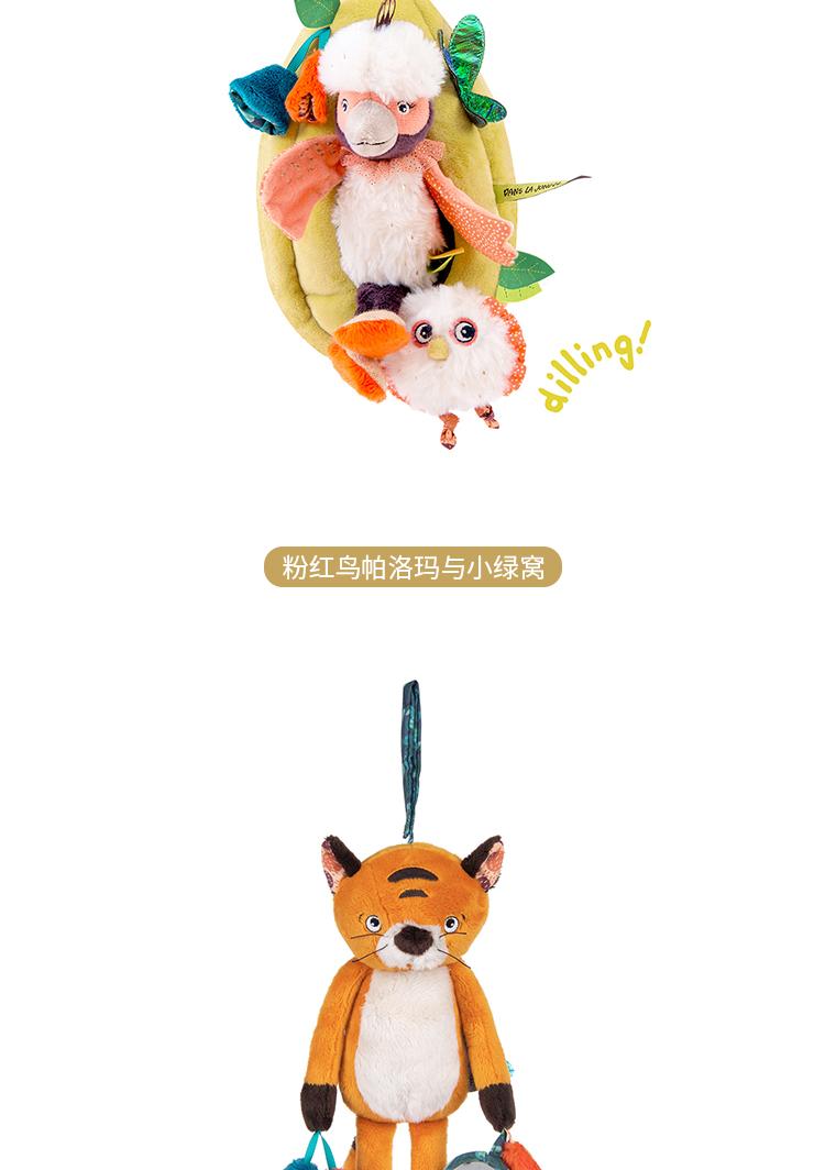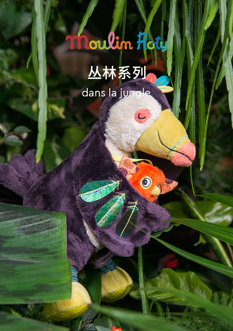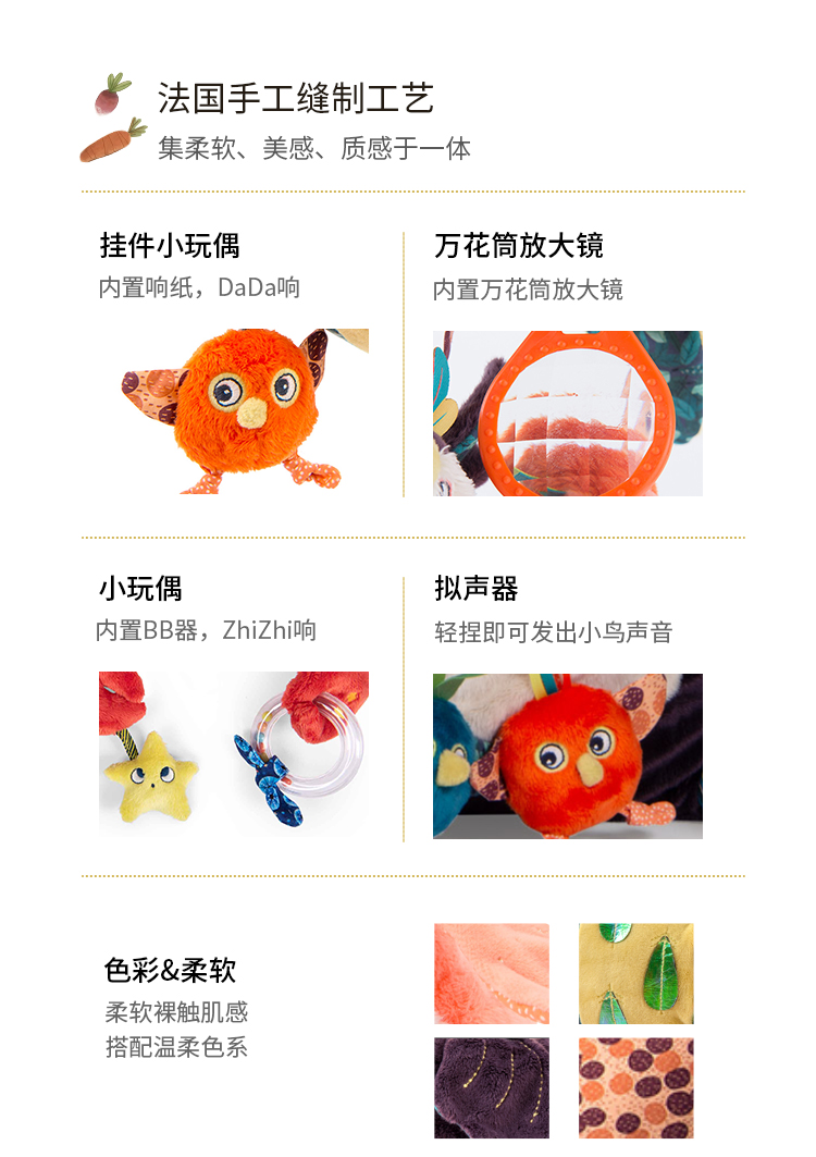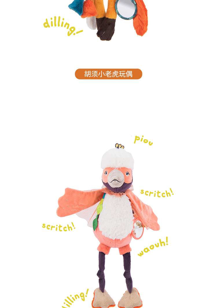 Moulin Roty 小橘鸟精灵 多功能/启蒙玩偶 内置响纸摇铃 菱形格放大镜 适合0岁以上 丛林系列-668071