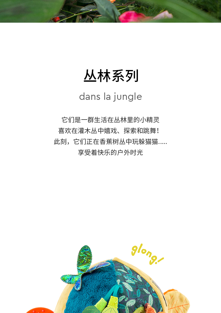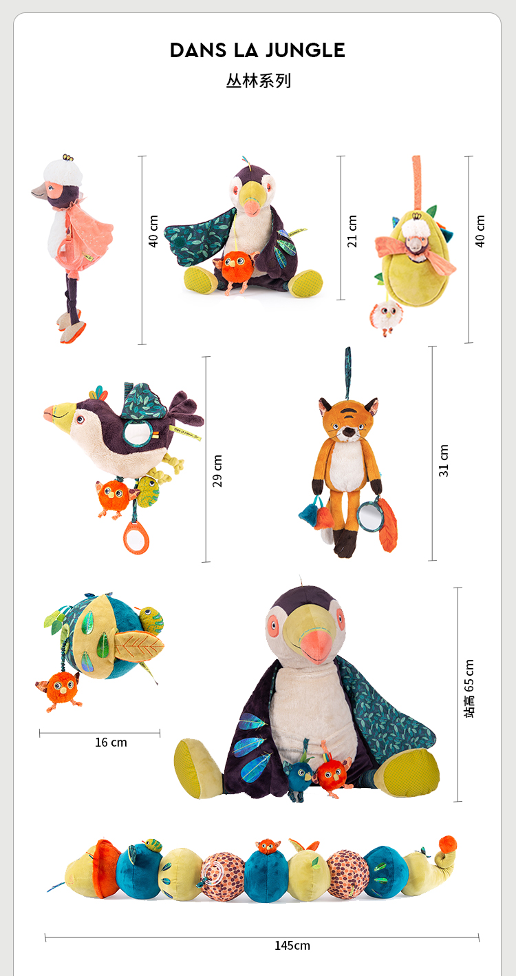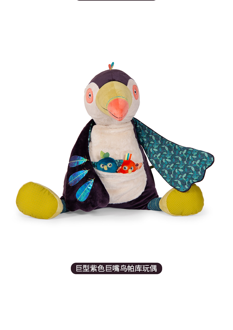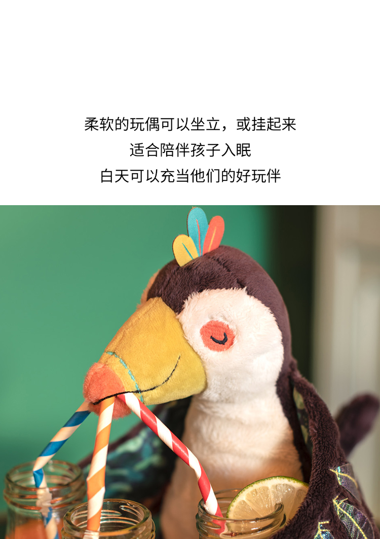 Moulin Roty 小橘鸟精灵 多功能/启蒙玩偶 内置响纸摇铃 菱形格放大镜 适合0岁以上 丛林系列-668071