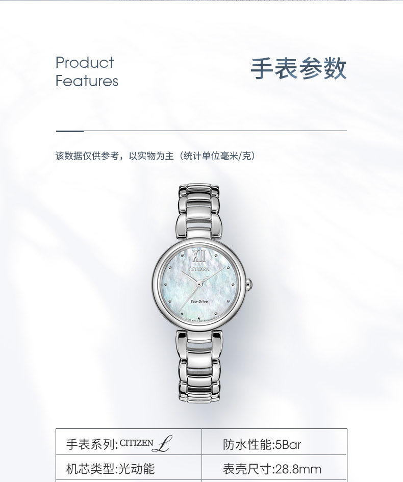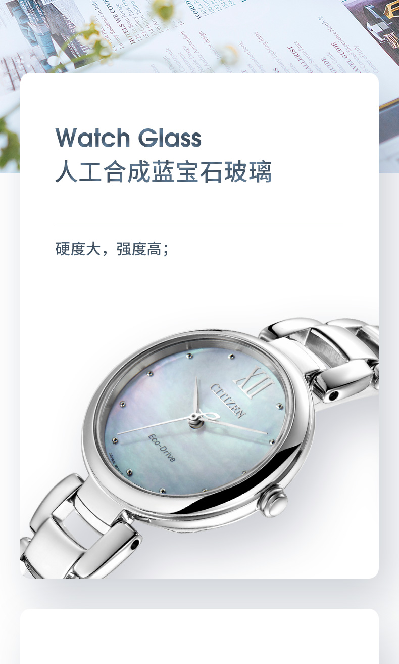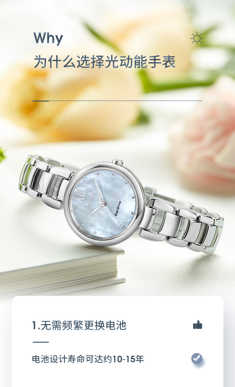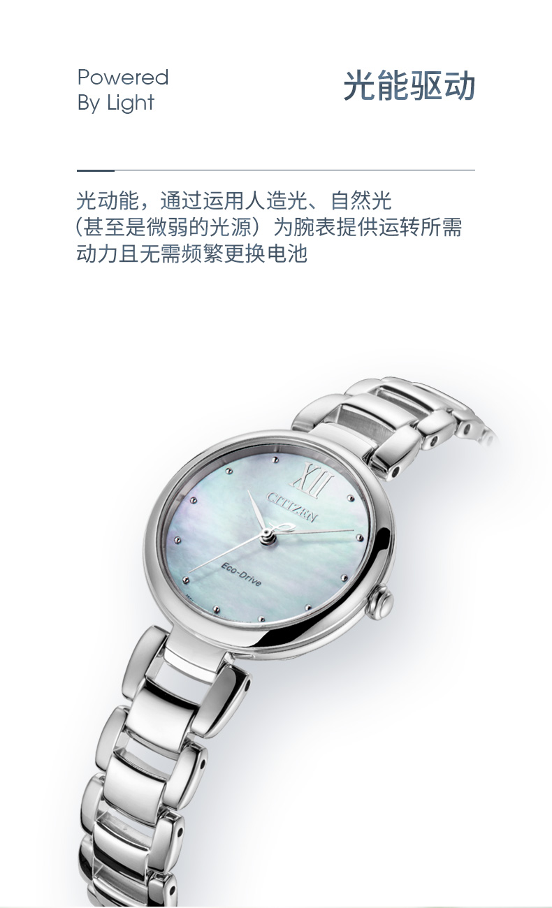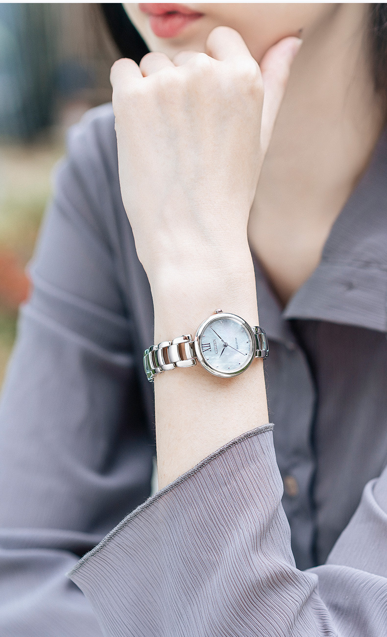 西铁城日本官方正品花语风吟系列贝母盘简约光动能女表EM0530-81D