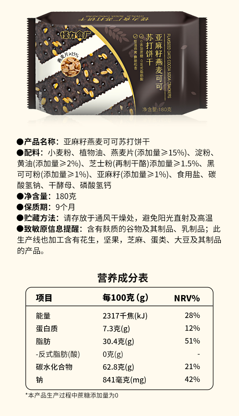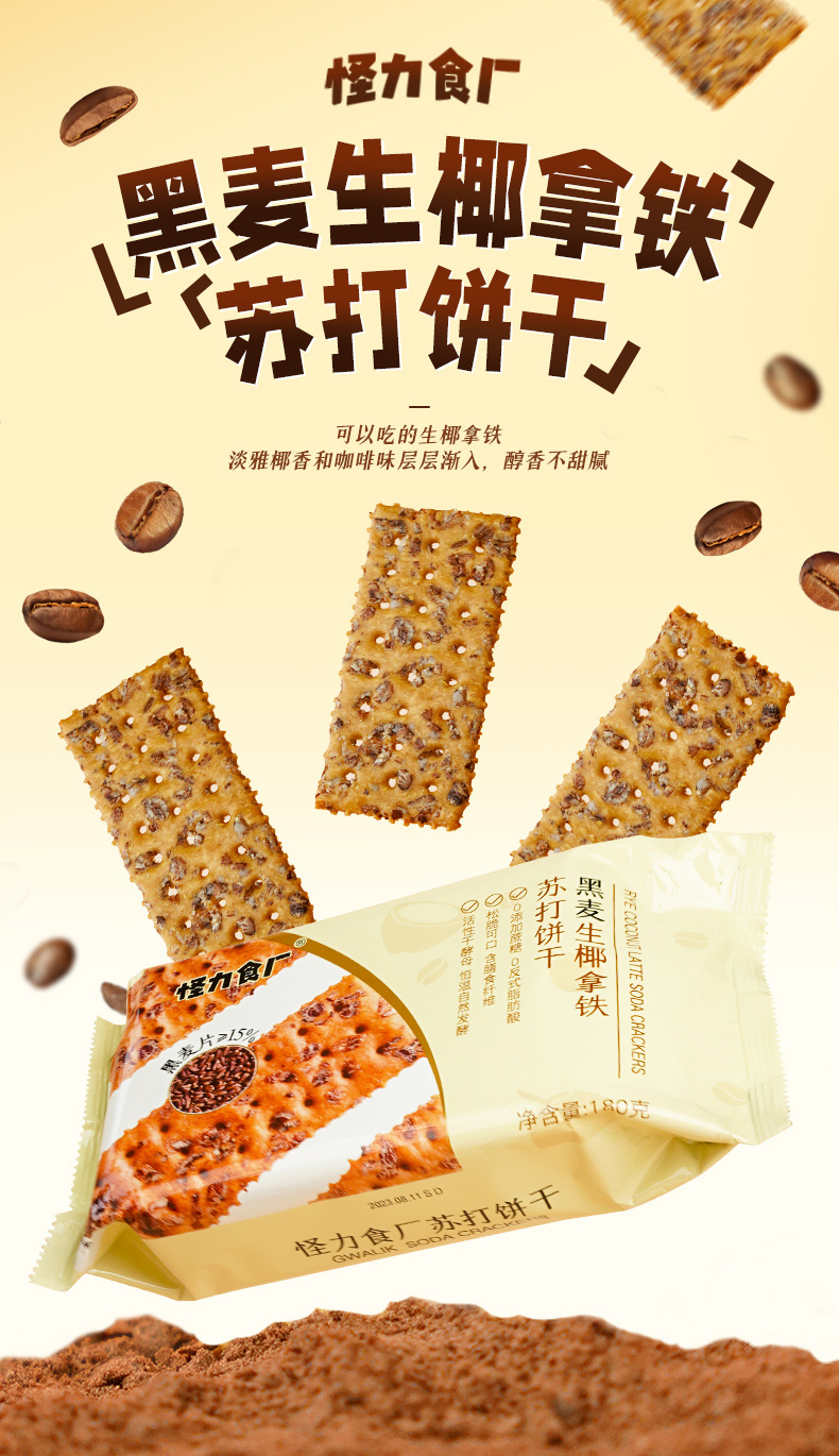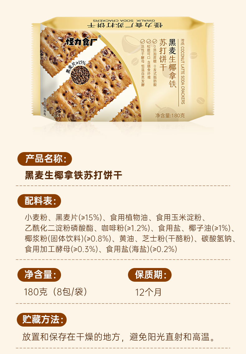 【热卖1000w+袋苏打饼干系列】怪力食厂黑麦海盐苏打饼干 添加≥15%阿根廷黑麦 地中海海盐以及新西兰进口黄油 0添加蔗糖 0反式脂肪酸 咸香可口 口感酥脆 180g/袋