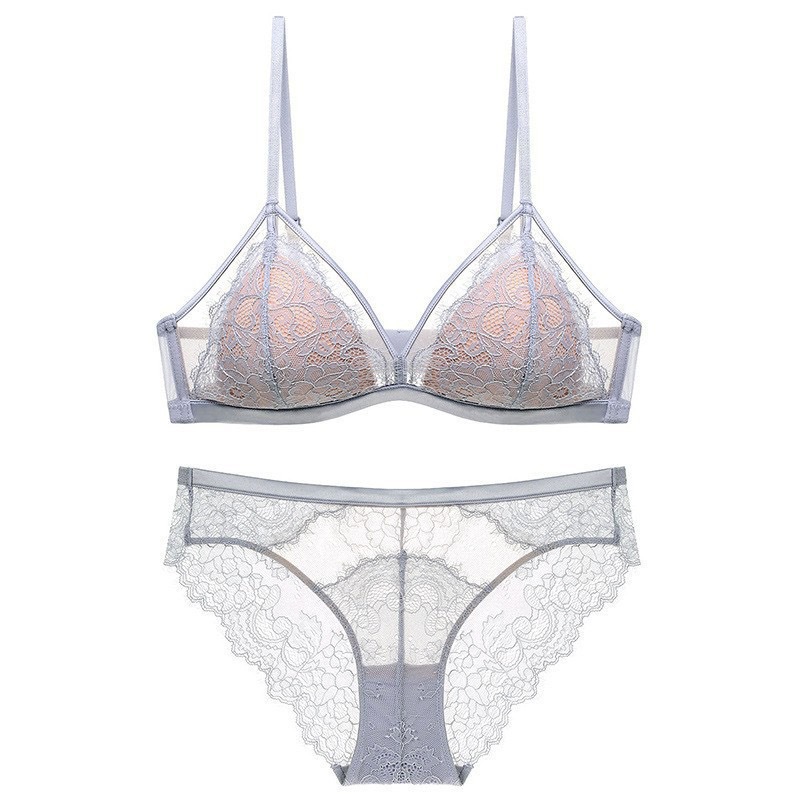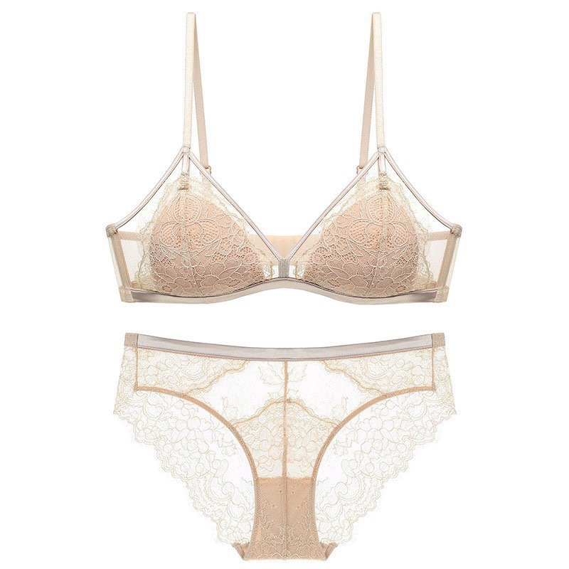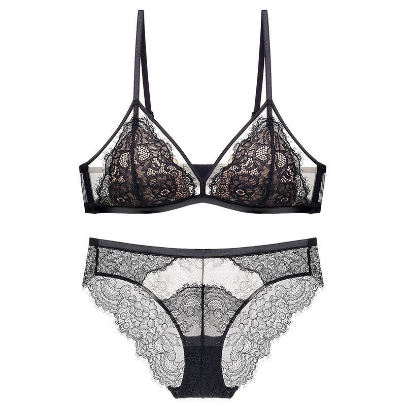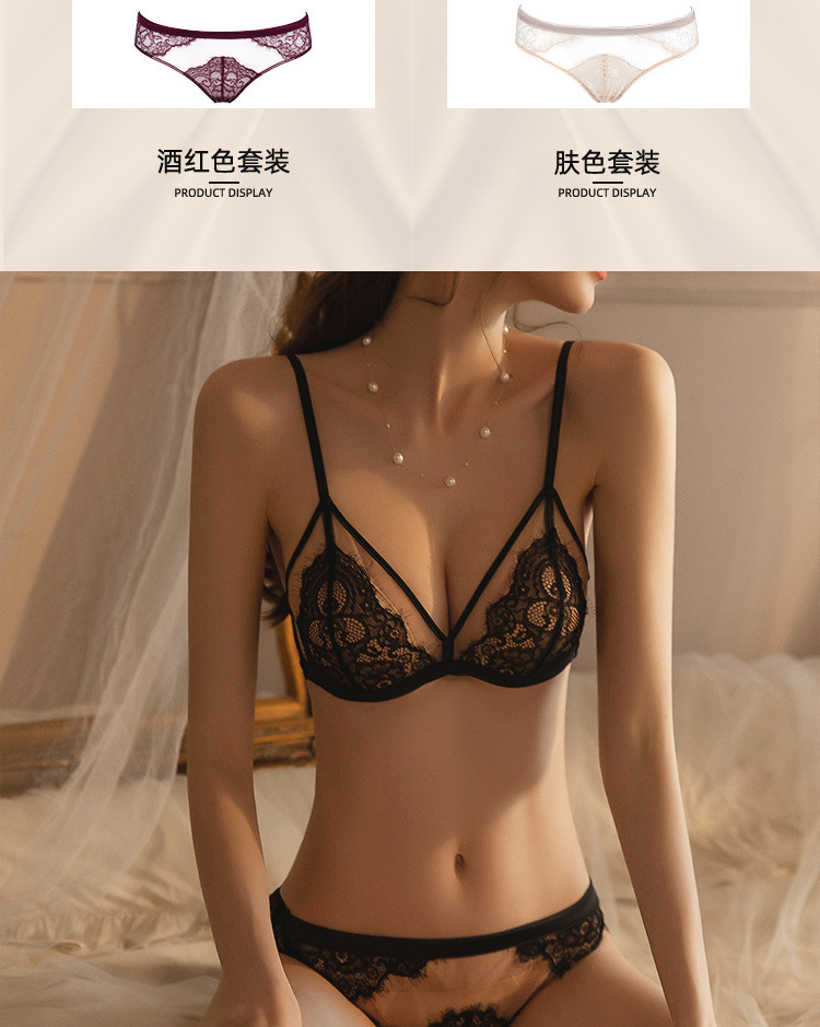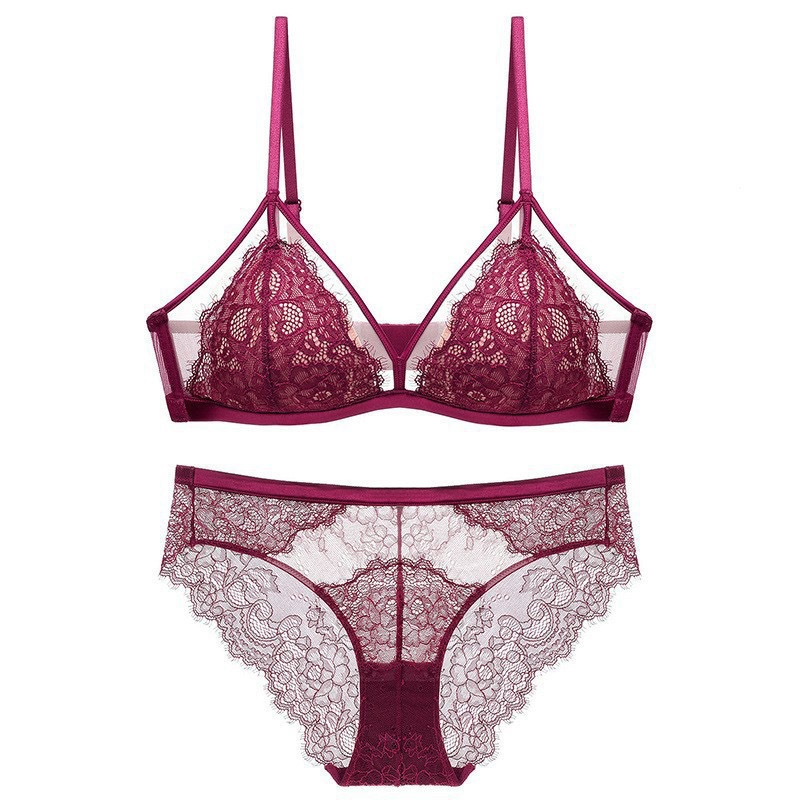 【本命年!法式蕾丝聚拢内衣套装】 女大胸显小超薄款无钢圈固定杯性感纯欲文胸 本命年红色性感内衣套装