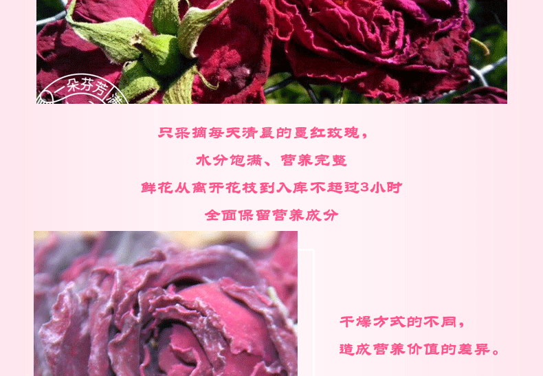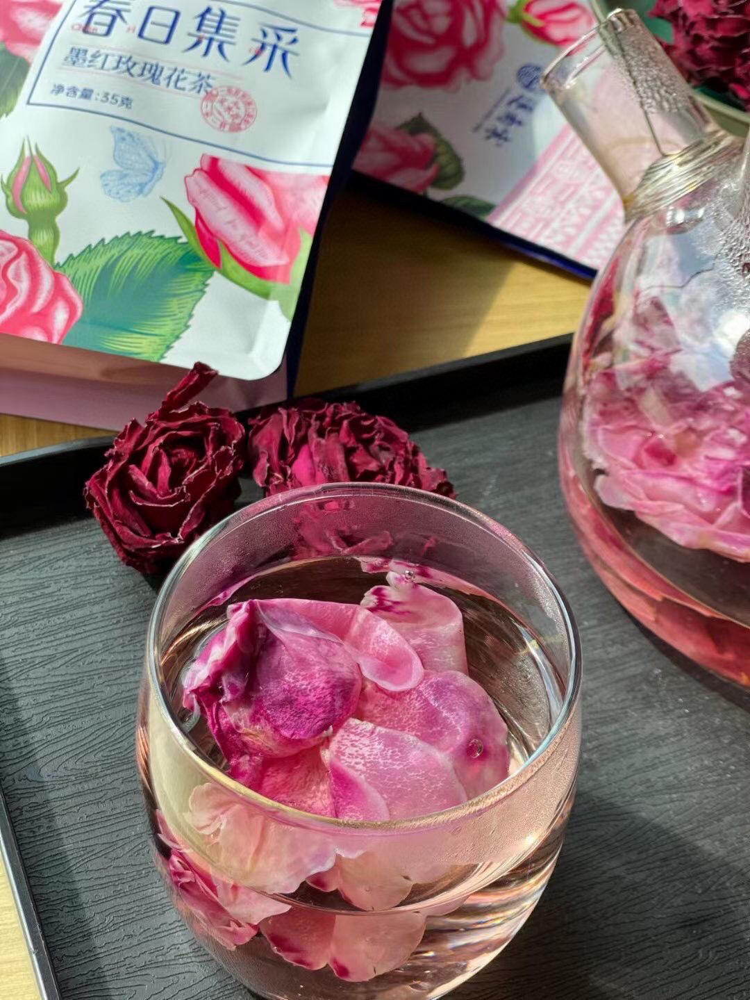 1⃣️墨红玫瑰为干花,快递过程中花瓣散落不在售后范围!单独的花瓣泡水也是极好的!