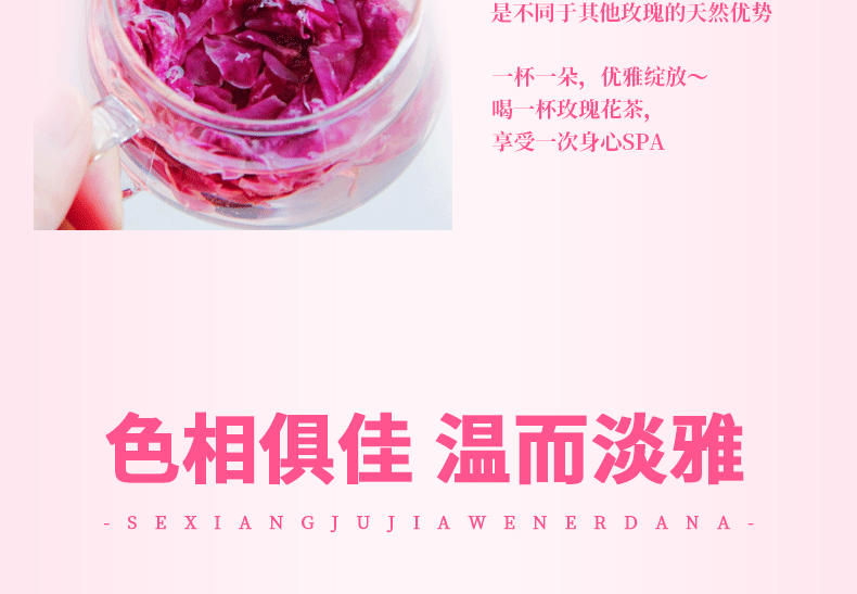3⃣️可反复冲泡,玫瑰花的颜色会由深到浅,花朵盛开越来越大。