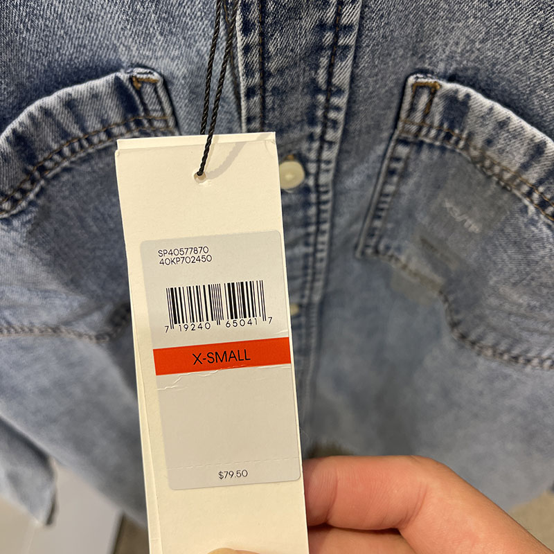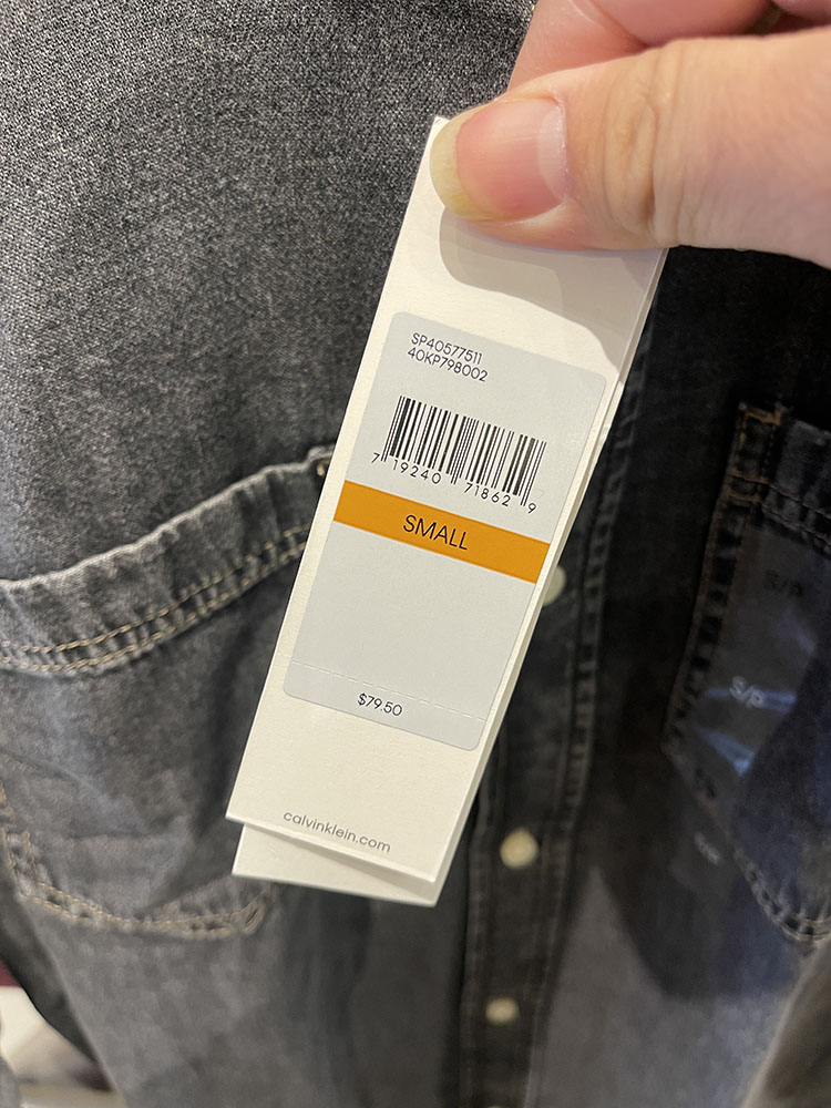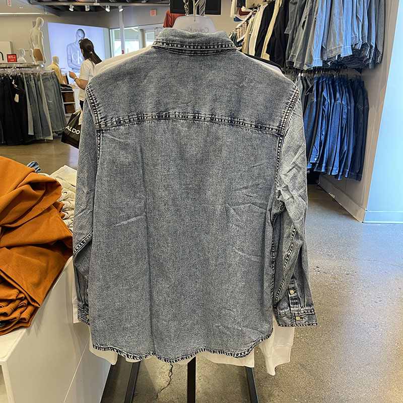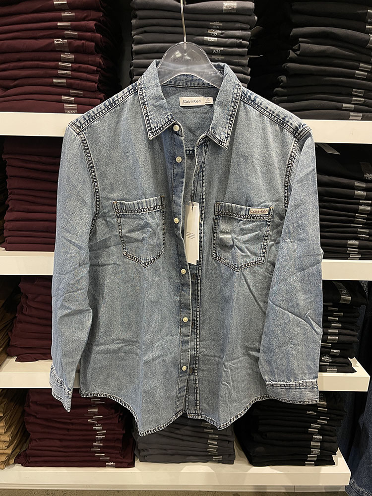 Calvin Klein/CK 男士胸前双口袋袋口LOGO尖领牛仔衬衫