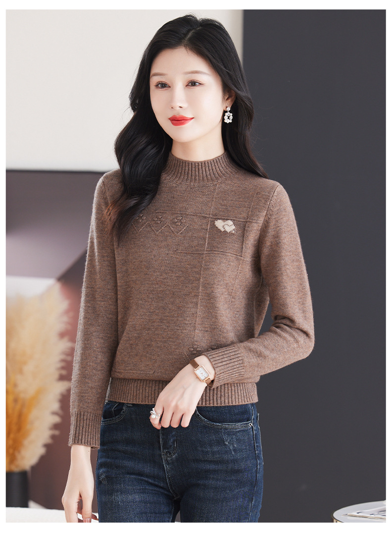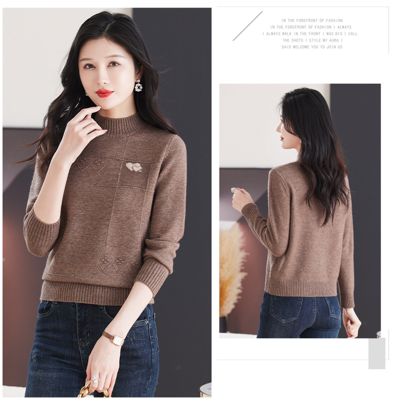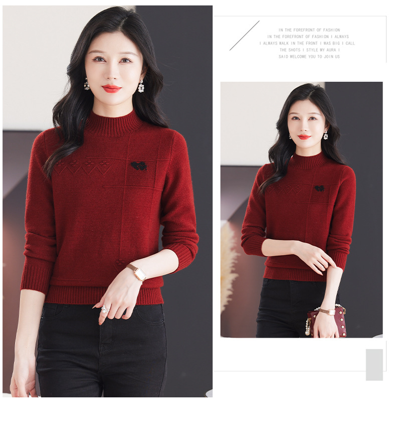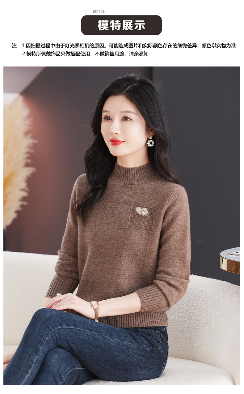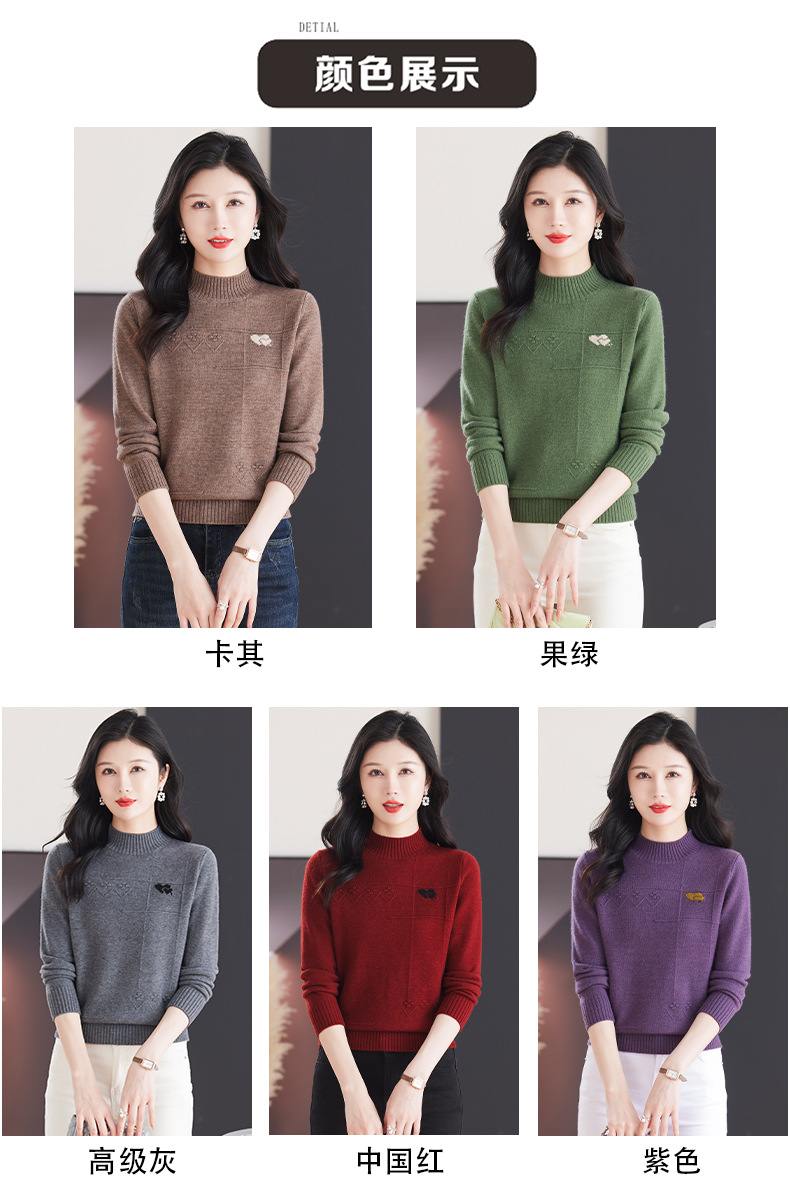 CC-103-79010半高领羊毛打底衫女秋冬内搭短款长袖针织上衣洋气毛衣女