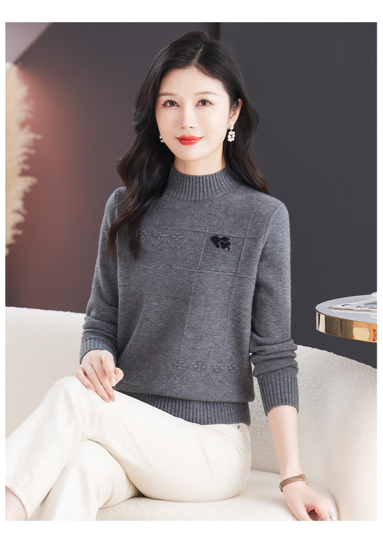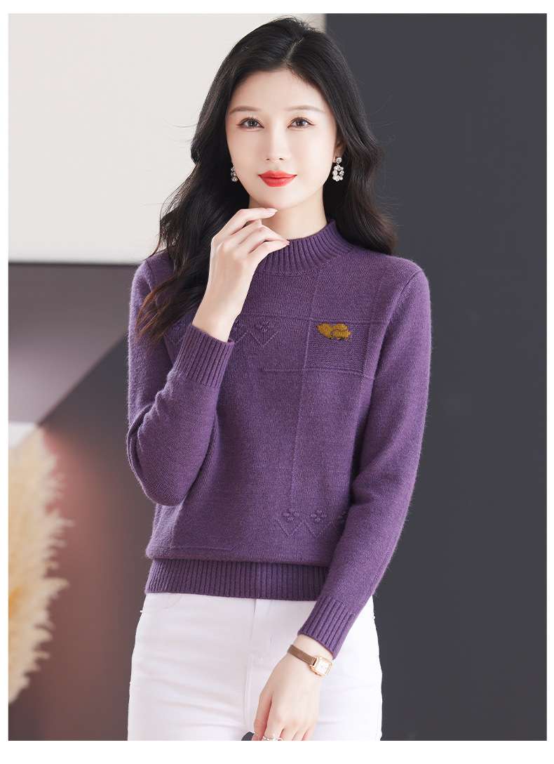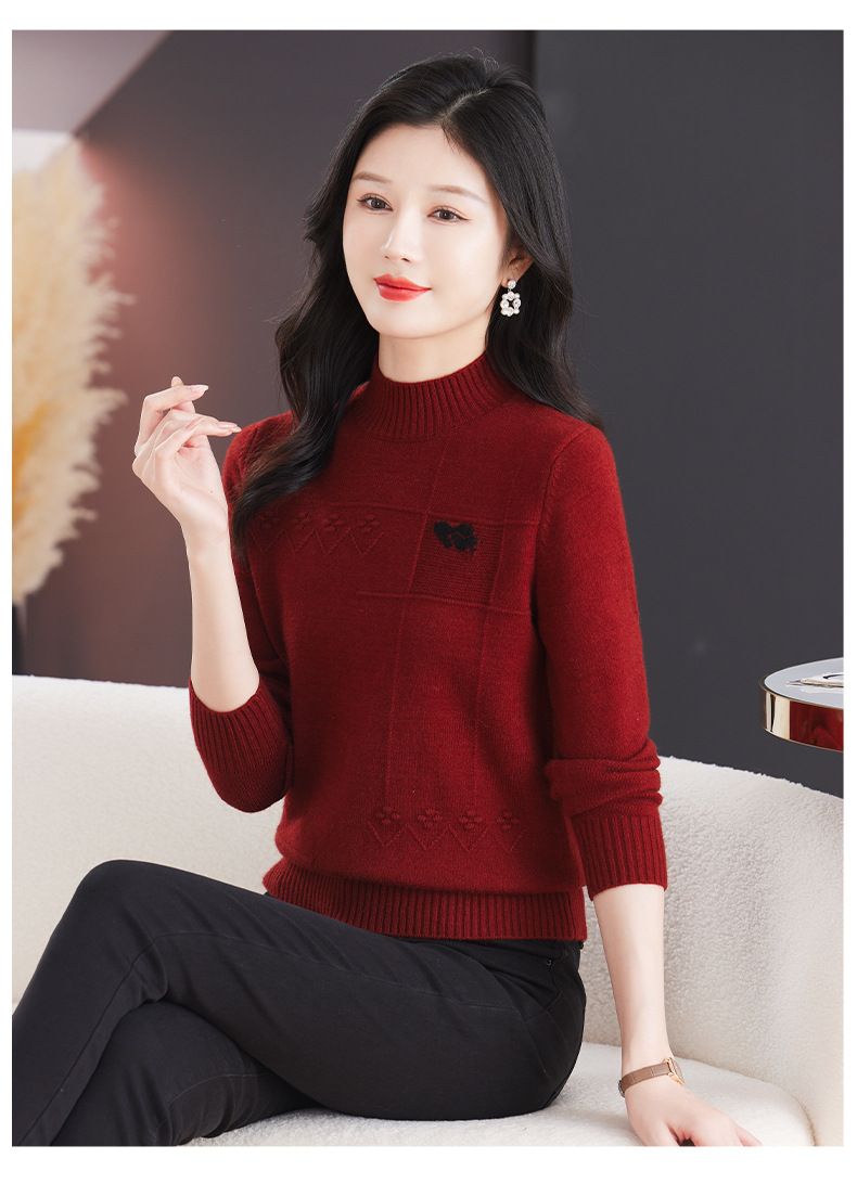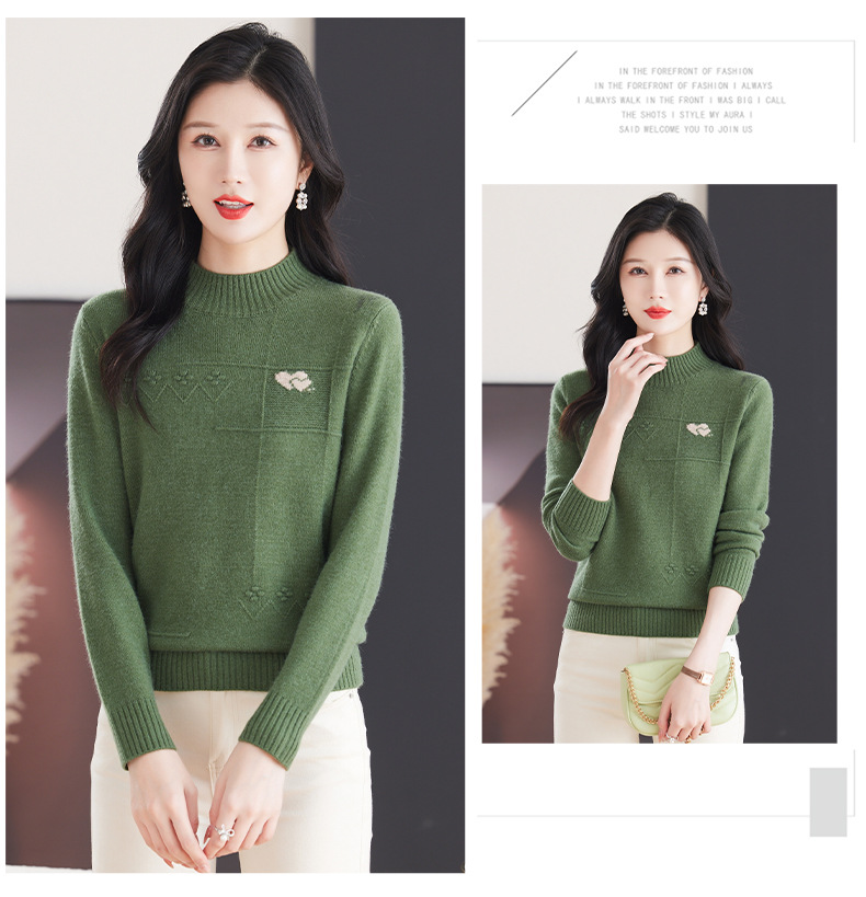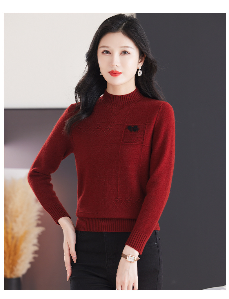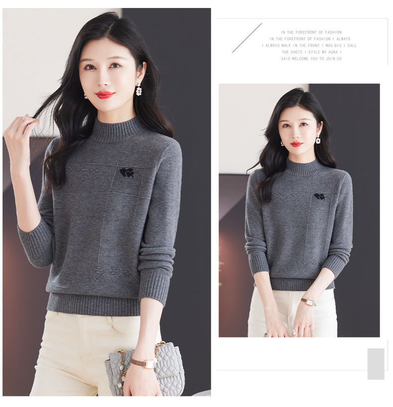 CC-103-79010半高领羊毛打底衫女秋冬内搭短款长袖针织上衣洋气毛衣女