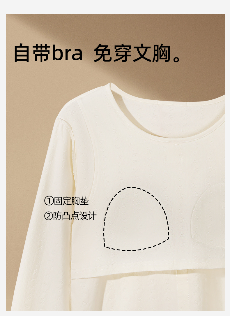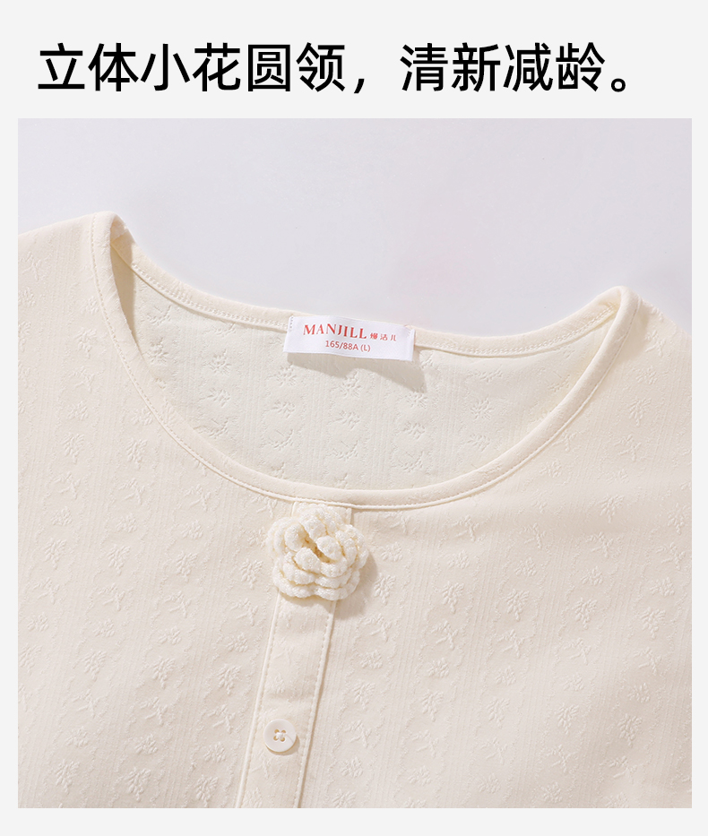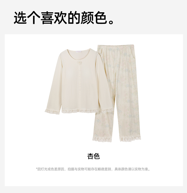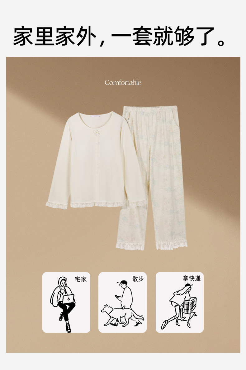 【带杯垫】【商场同款】熳洁儿 秋冬新款家居服甜美公主风圆领95棉套装立体提花25703217