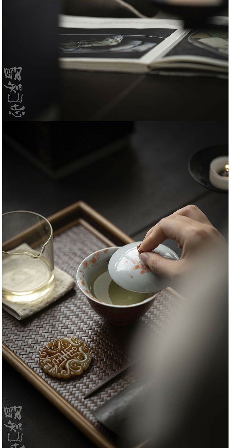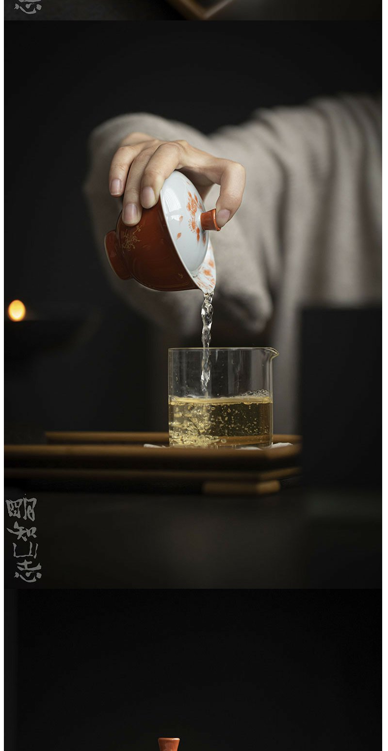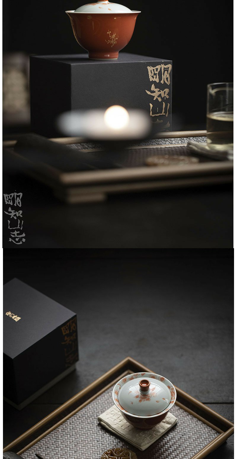 束刻/明知山志/矾红/花海/惜梦盖碗 矾红手绘盖碗 烫金花海泡茶碗 茶室文人茶空间手抓碗
