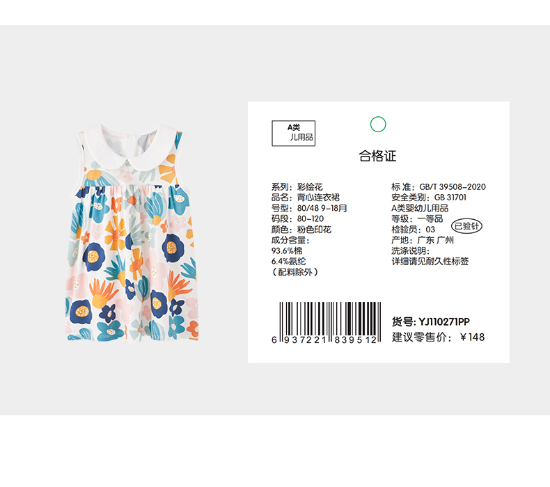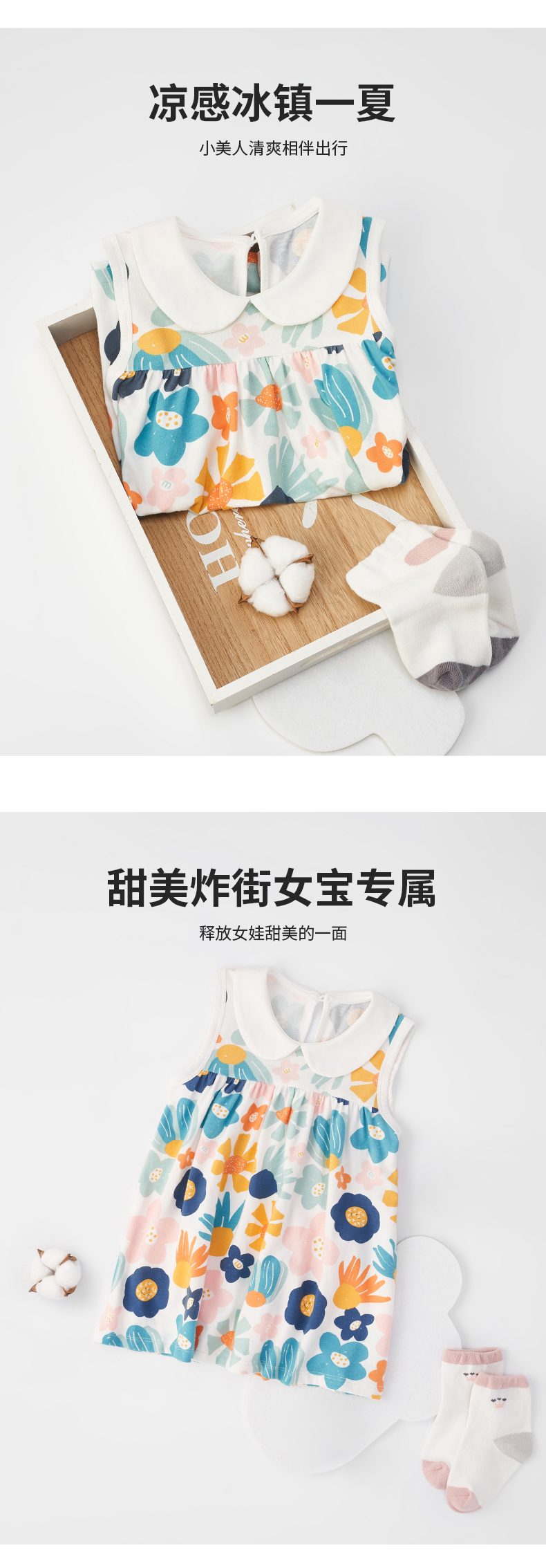 小米米童衣夏季薄款女宝宝连衣裙甜美娃娃领凉感背心裙女童可爱花朵裙MIM-YJ11027