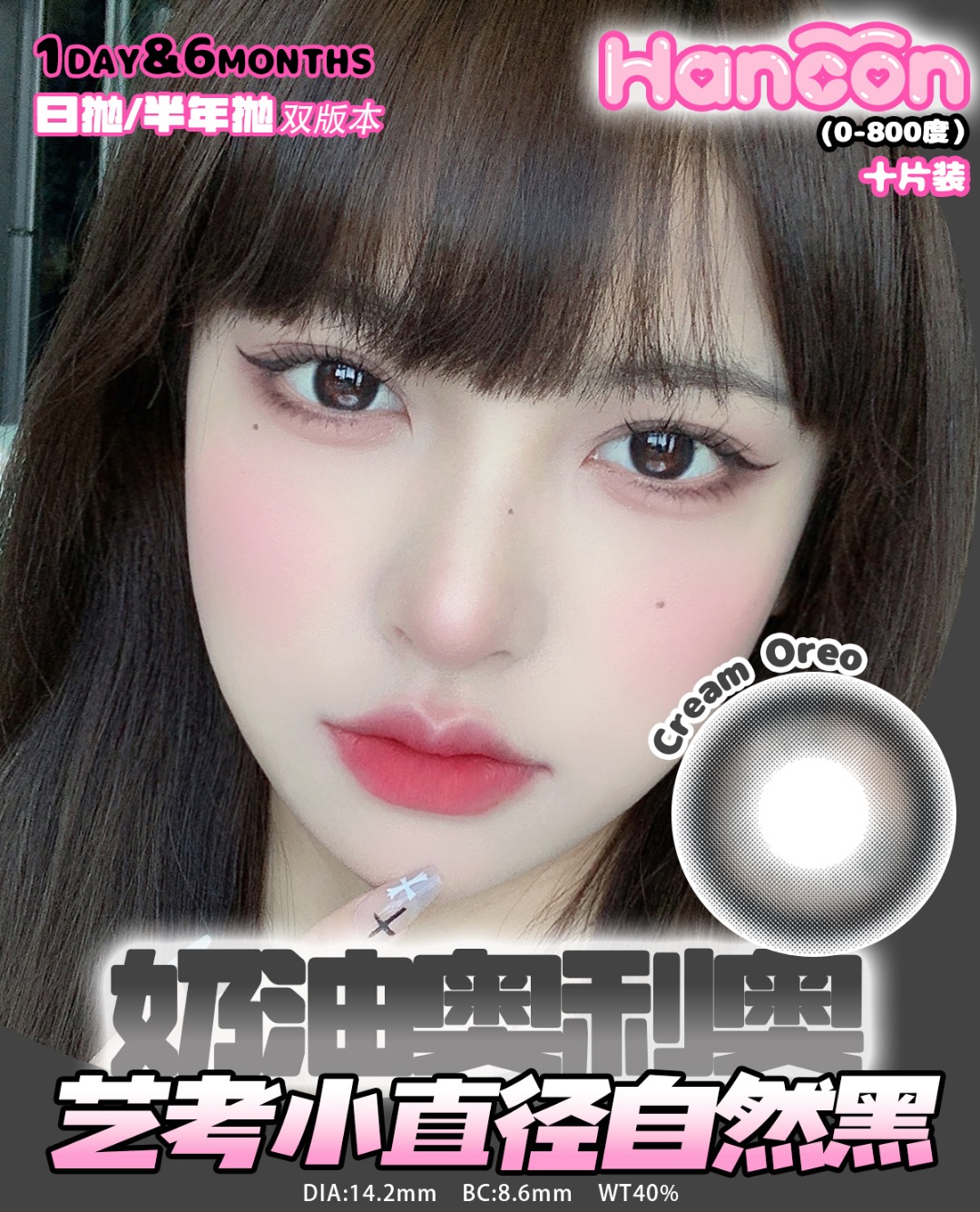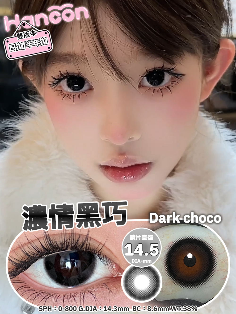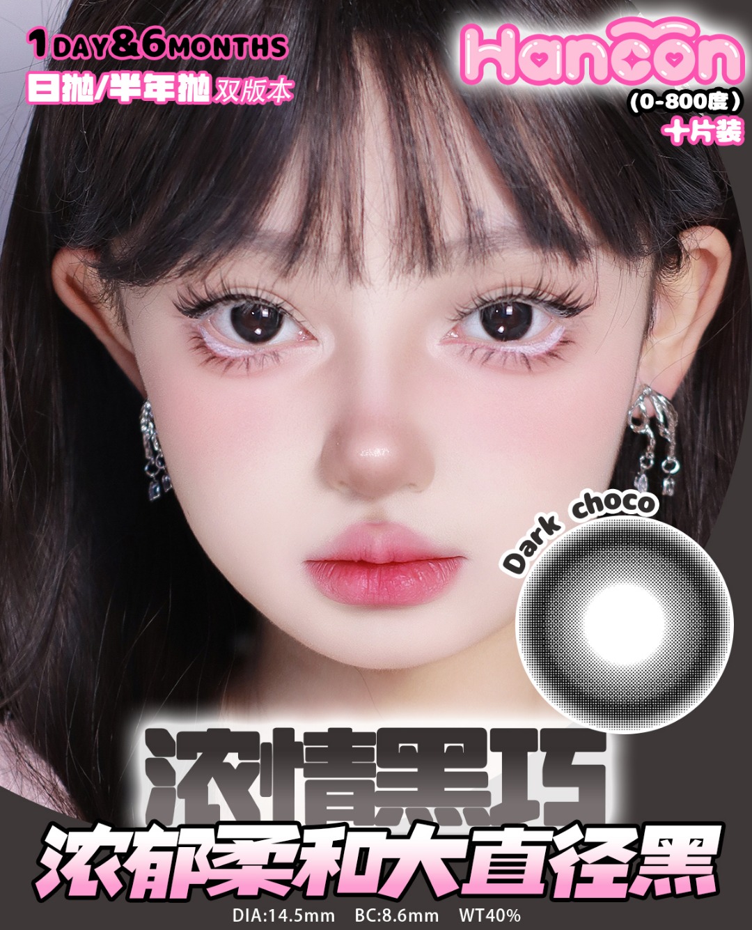 hancon日抛 浓情黑巧/燕麦可可/奶油奥利奥/泰式奶茶/雾面雪山/红宝石/蓝眼泪 日抛无售后!!蓝红灰巧黑 14.2mm-14.5mm