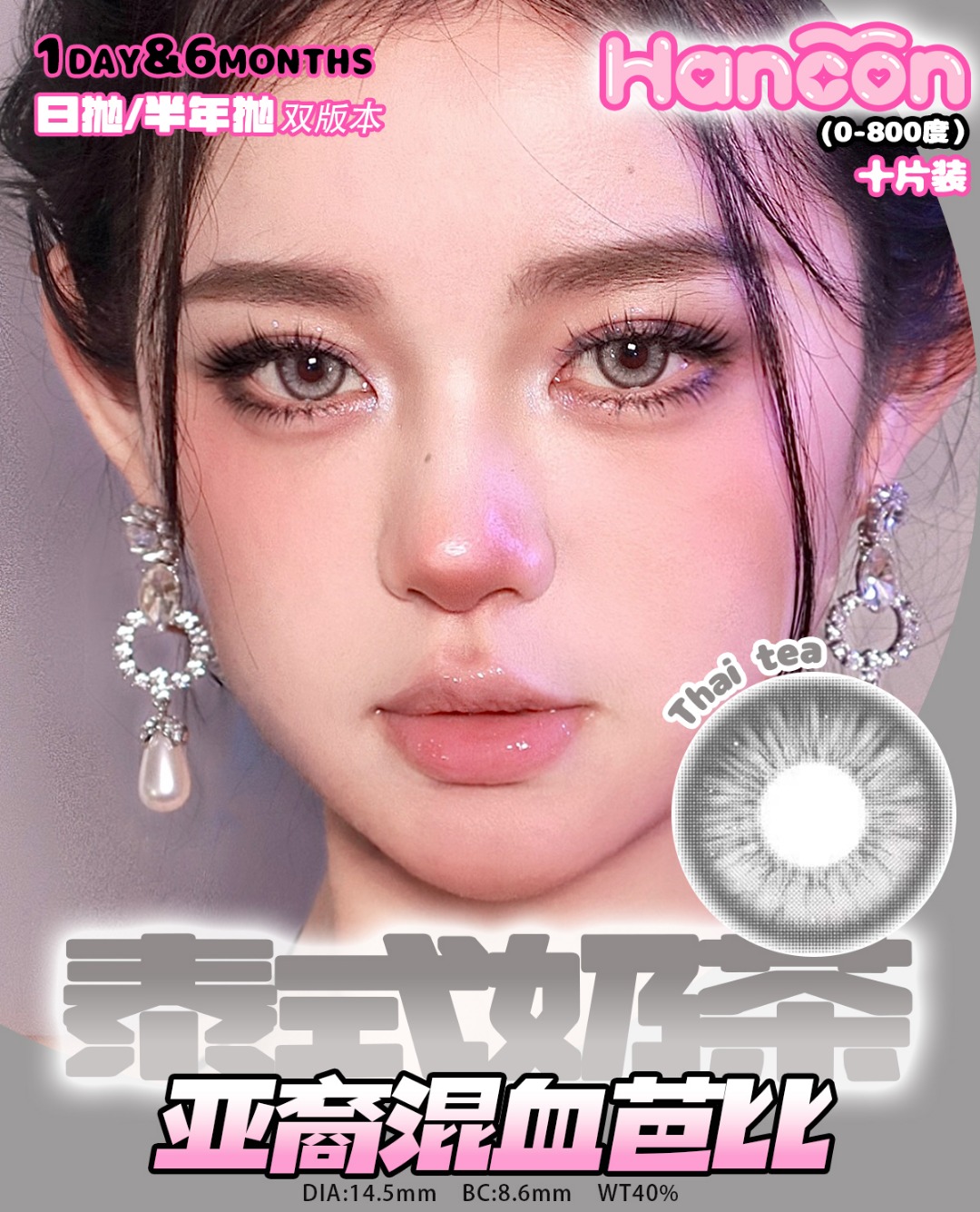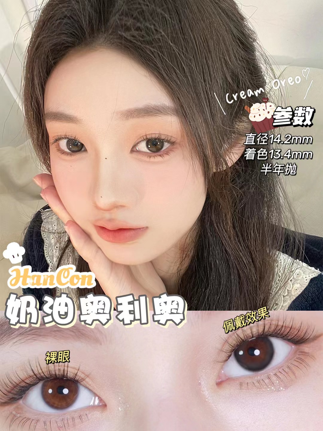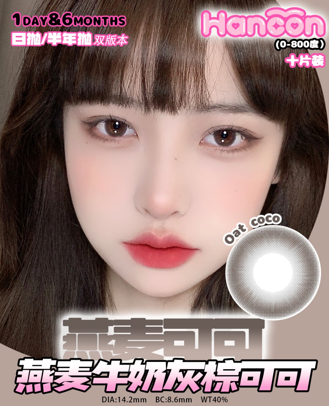 hancon日抛 浓情黑巧/燕麦可可/奶油奥利奥/泰式奶茶/雾面雪山/红宝石/蓝眼泪 日抛无售后!!蓝红灰巧黑 14.2mm-14.5mm