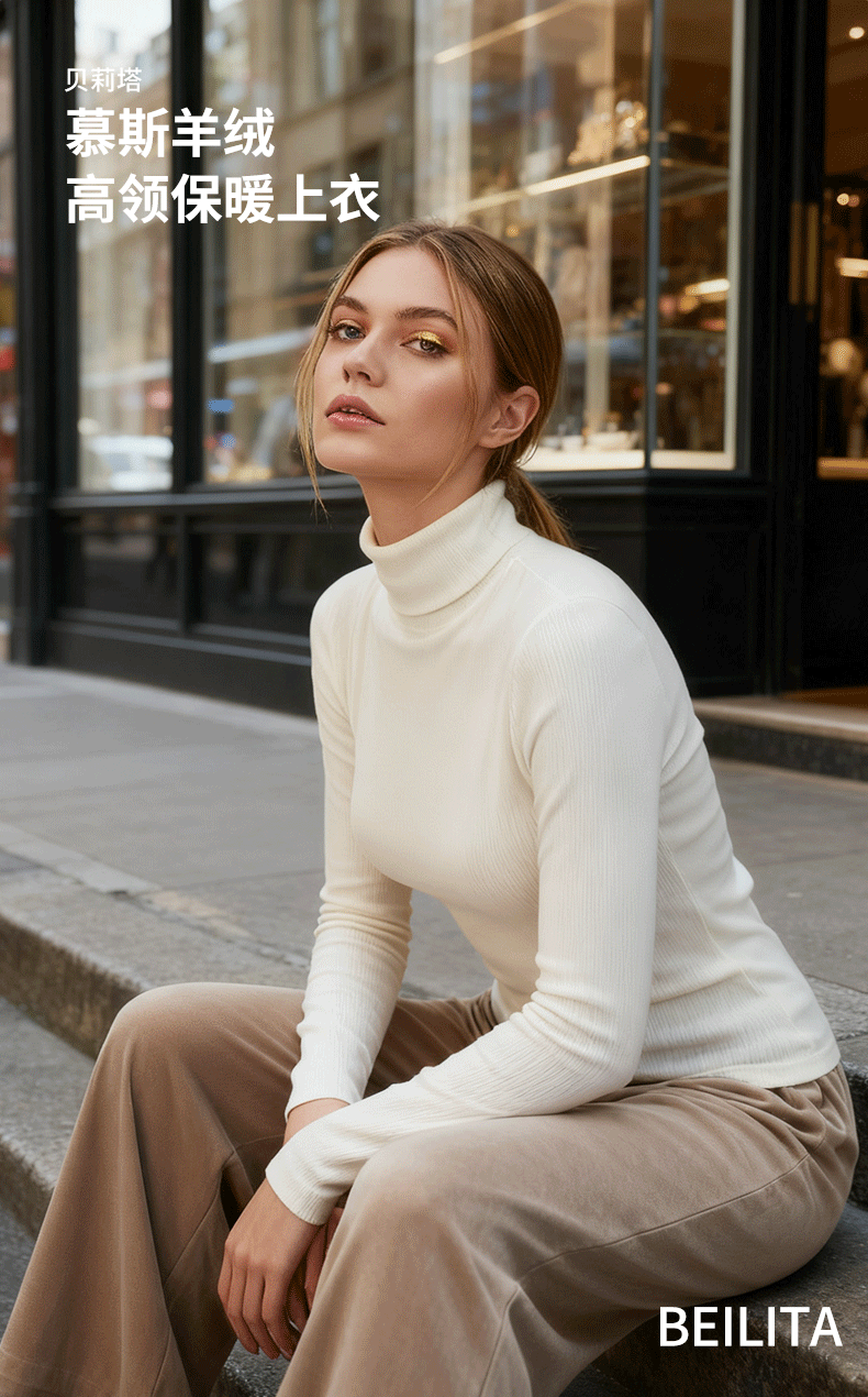 贝莉塔加厚高领慕斯羊绒秋冬保暖长袖上衣BLT5213女士瑜伽服堆堆领