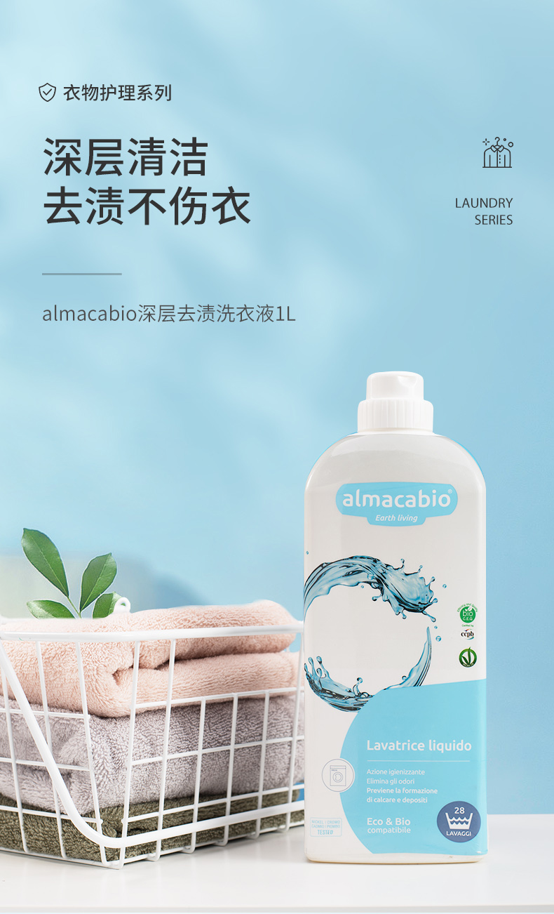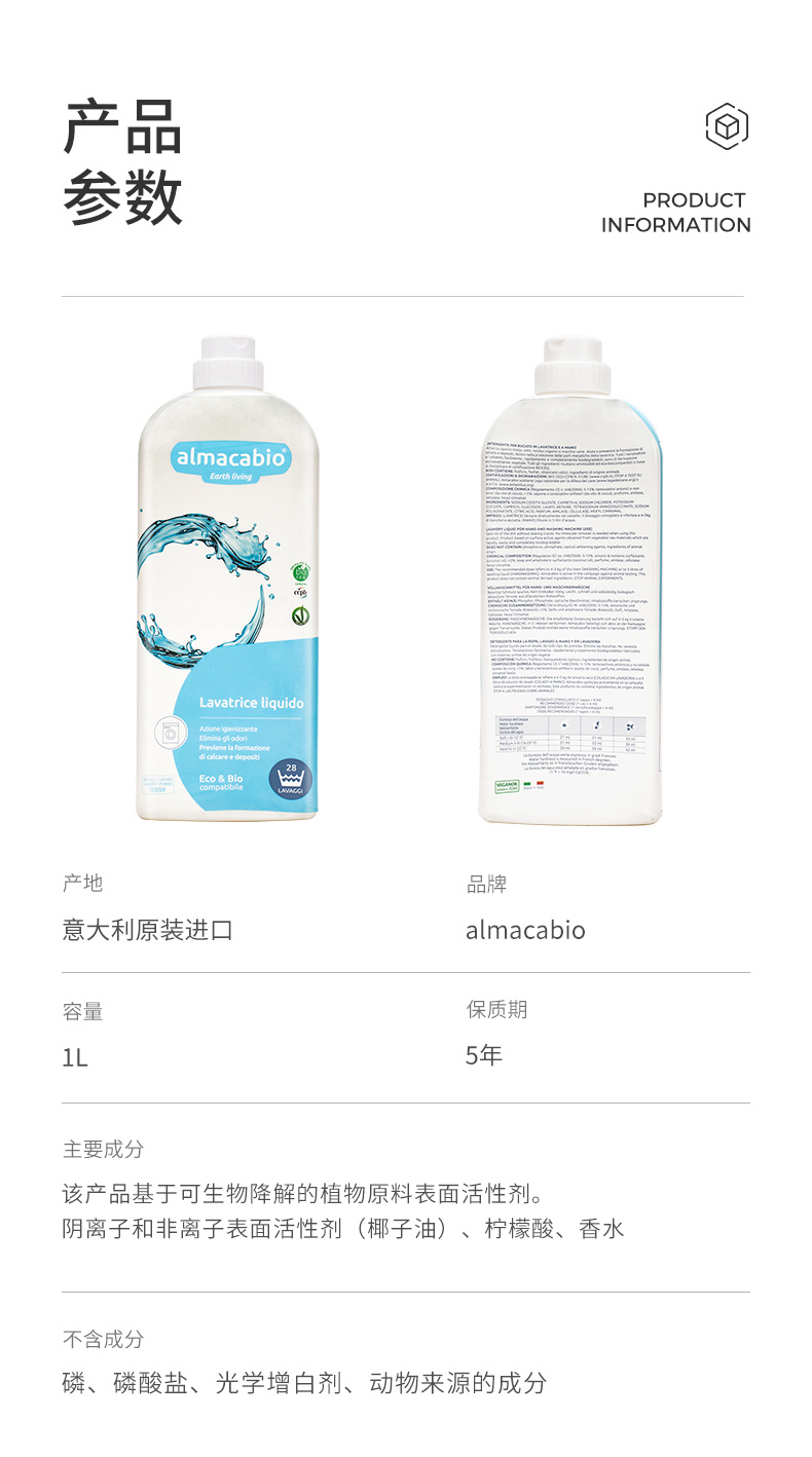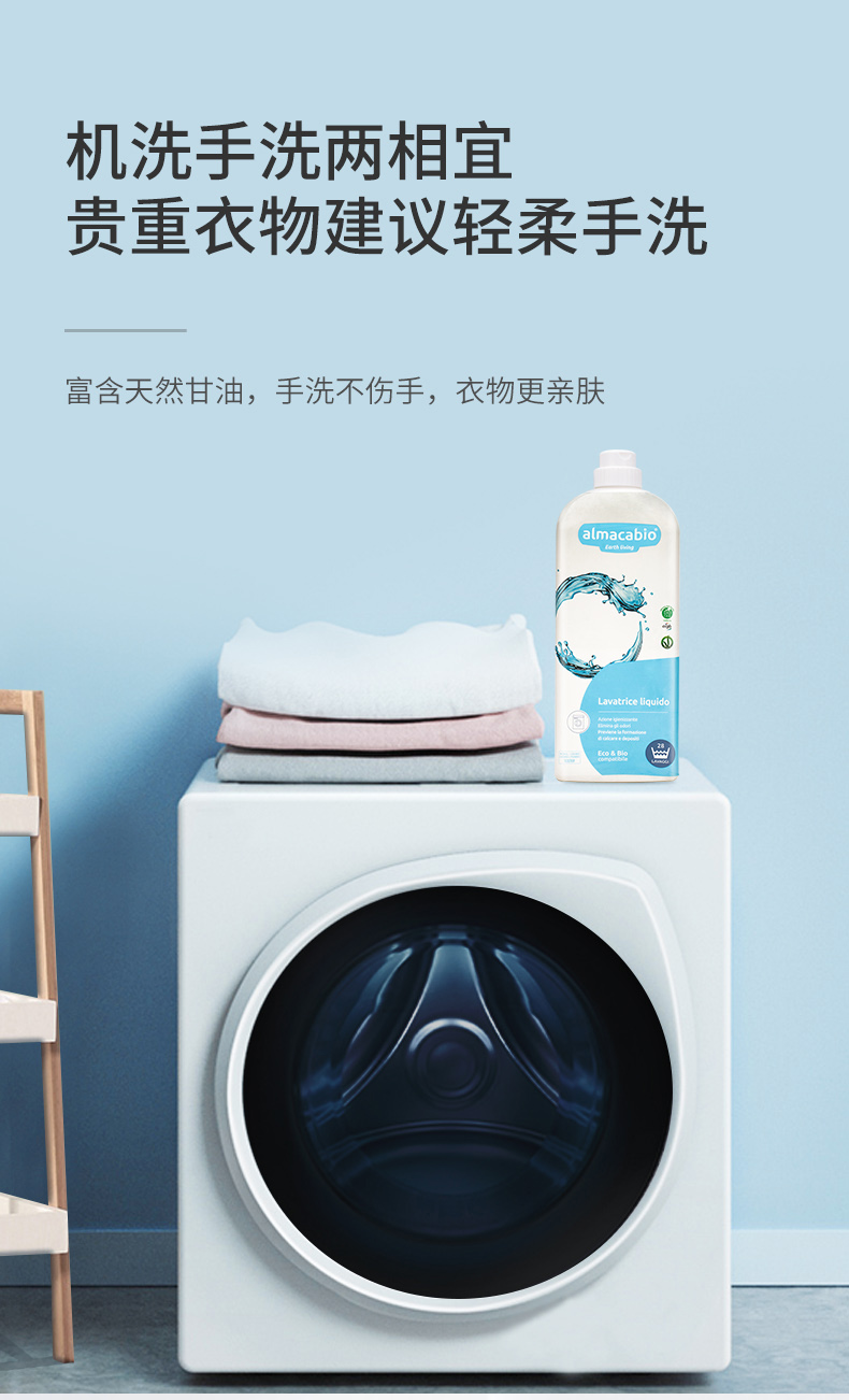 用途:浓缩配方非常适合日常洗衣。对混合污垢、油脂、有机残留物和各种污渍均有效。有助于防止水垢和沉积物的形成,积极保护洗衣机的金属部件,消除污垢而不留痕迹,使用时不需要除垢剂。
