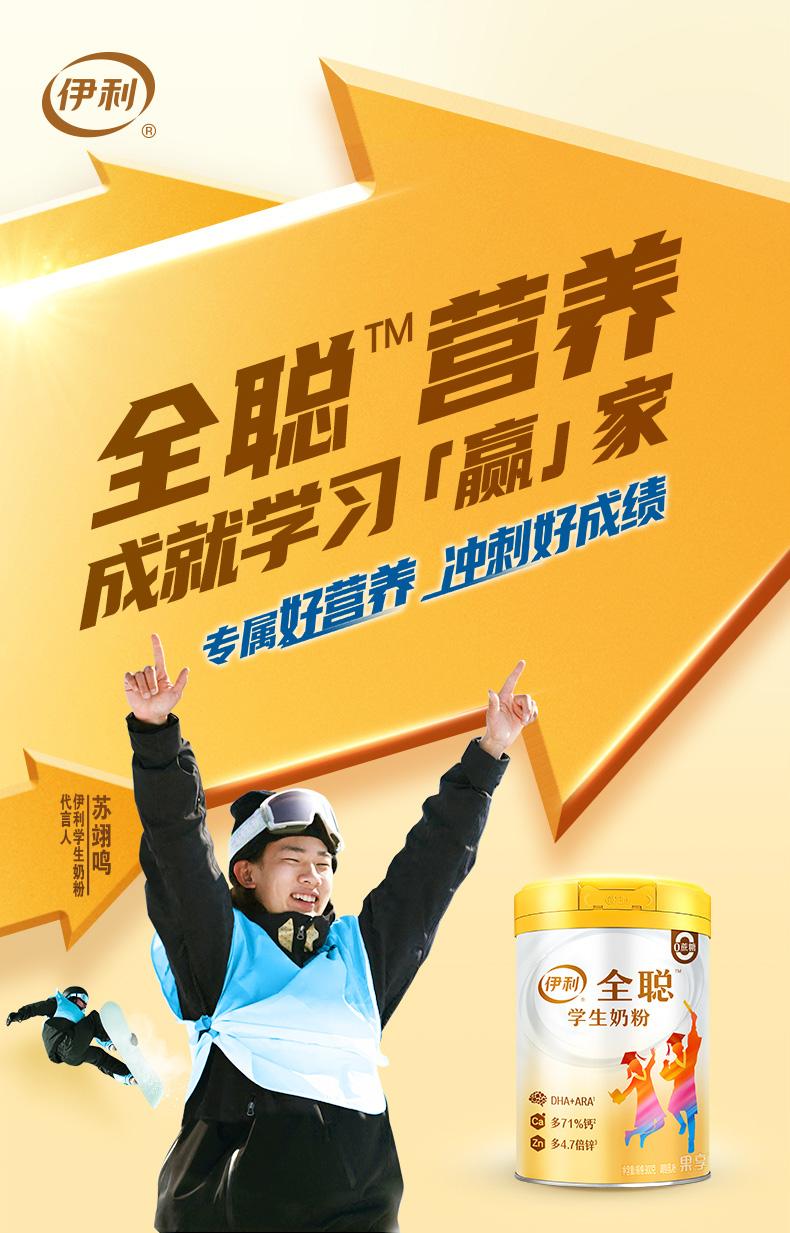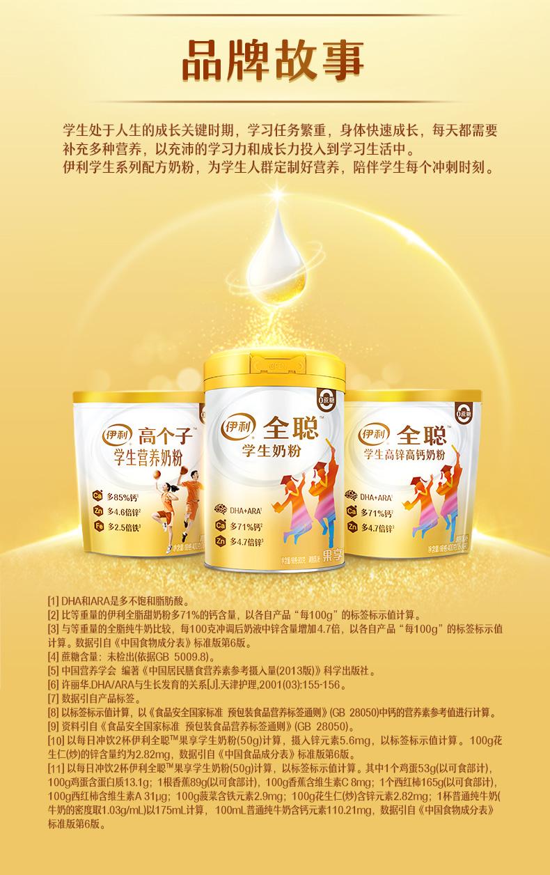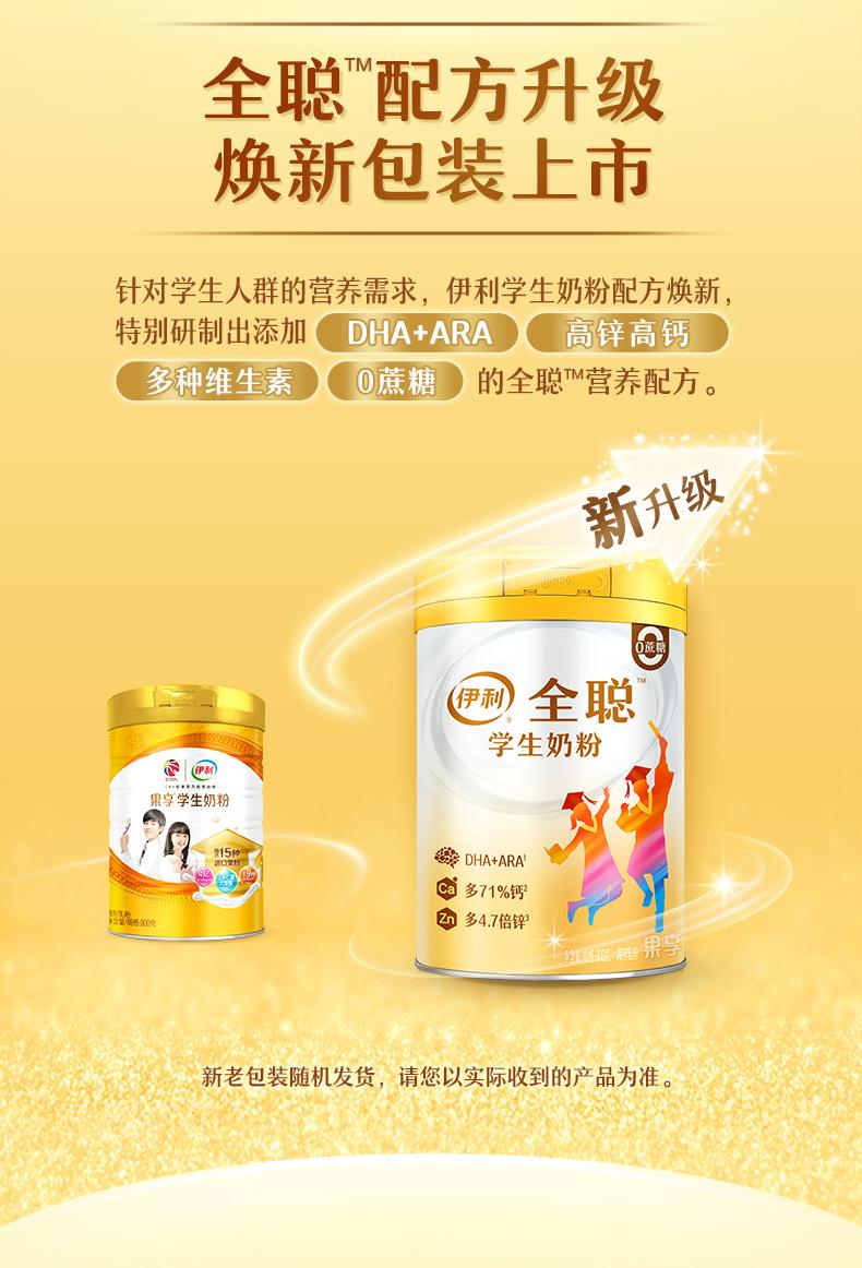 伊利全聪学生奶粉儿童青少年DHA奶900g罐早餐高钙高锌牛奶维生素