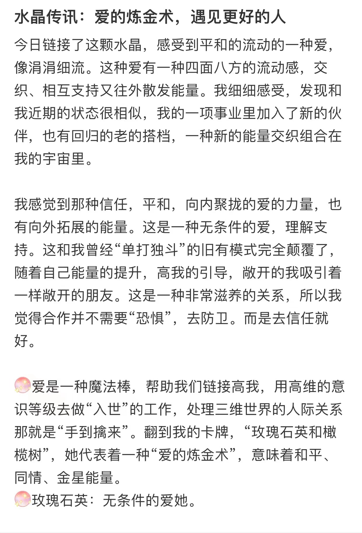 这枚玫瑰石英,给到我们的启示是:无限的理解,无条件的爱。开启你对合作、友谊的信任。提升爱的能力和宽度。也许你不用在单打独斗,也许你开始看到了背后的来自四面八方爱的支持。