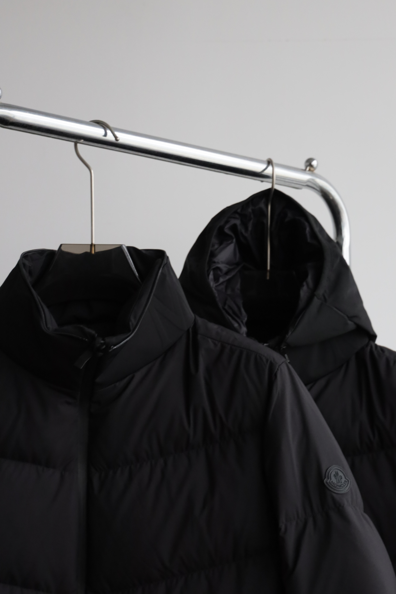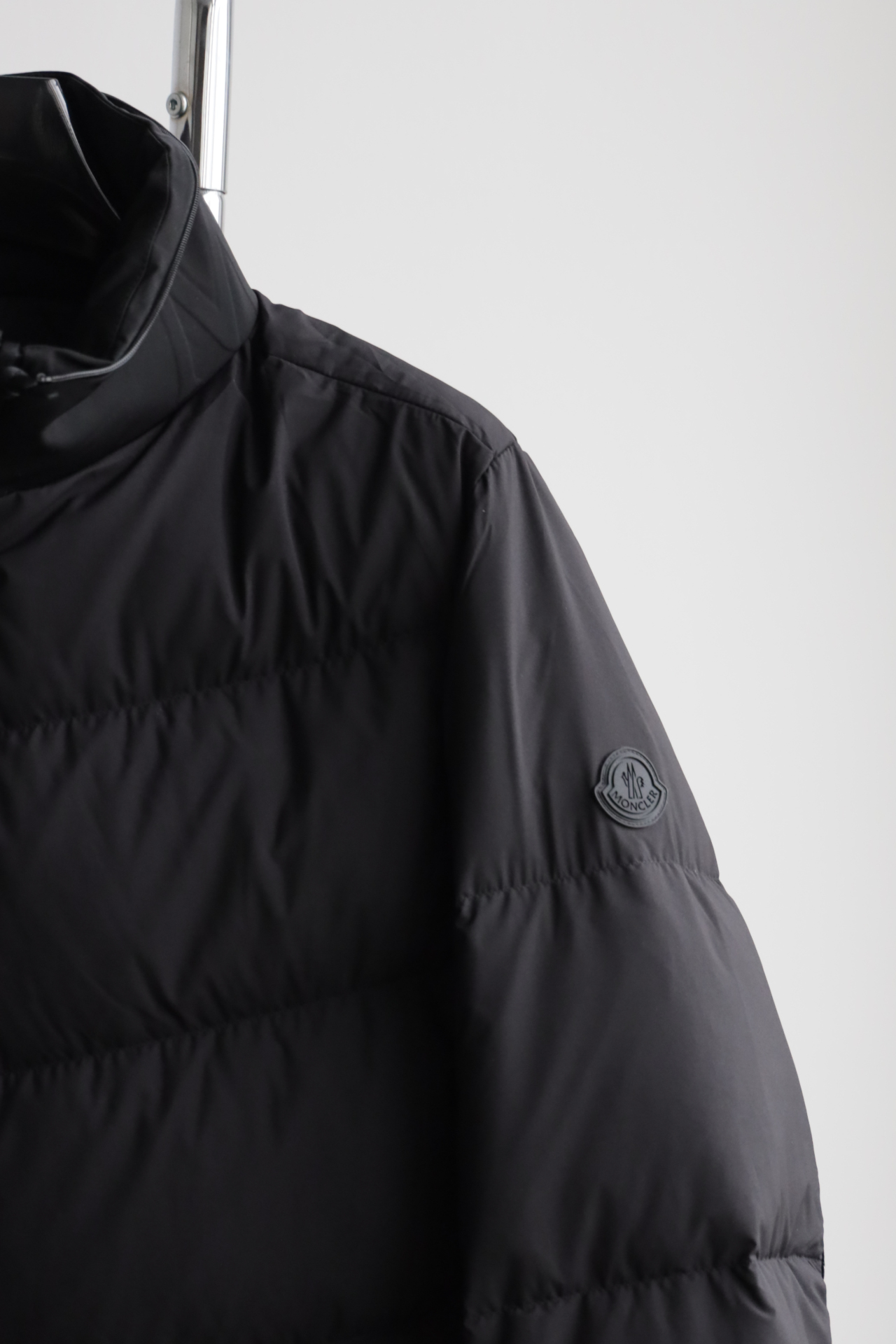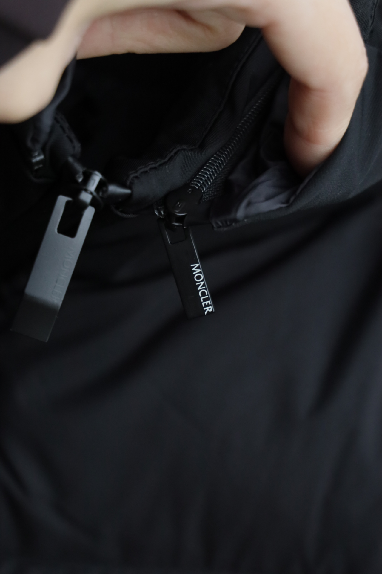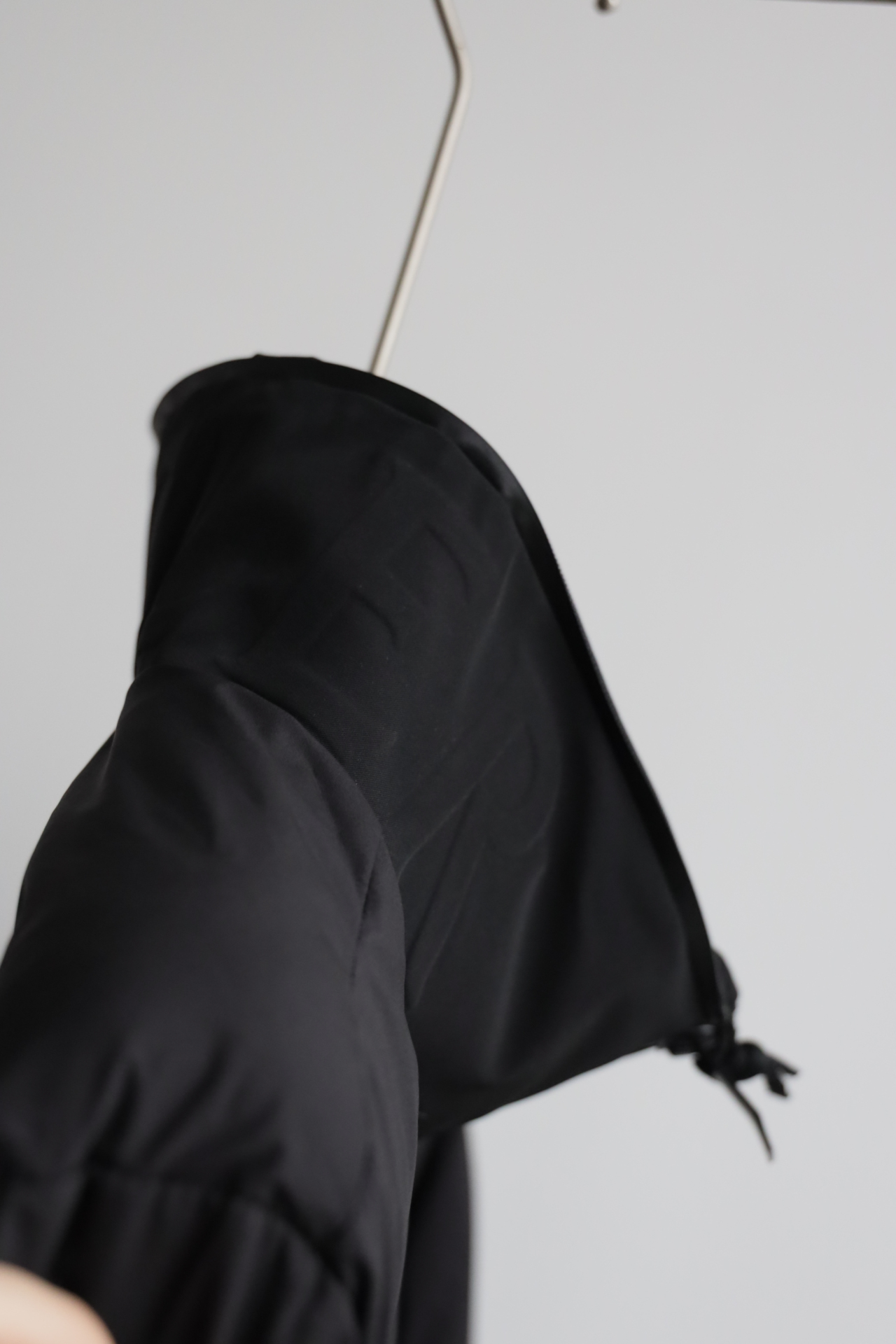 兜帽拆卸后,立领呈现压纹同色系标识,增添别致的视觉体验和触觉细节。