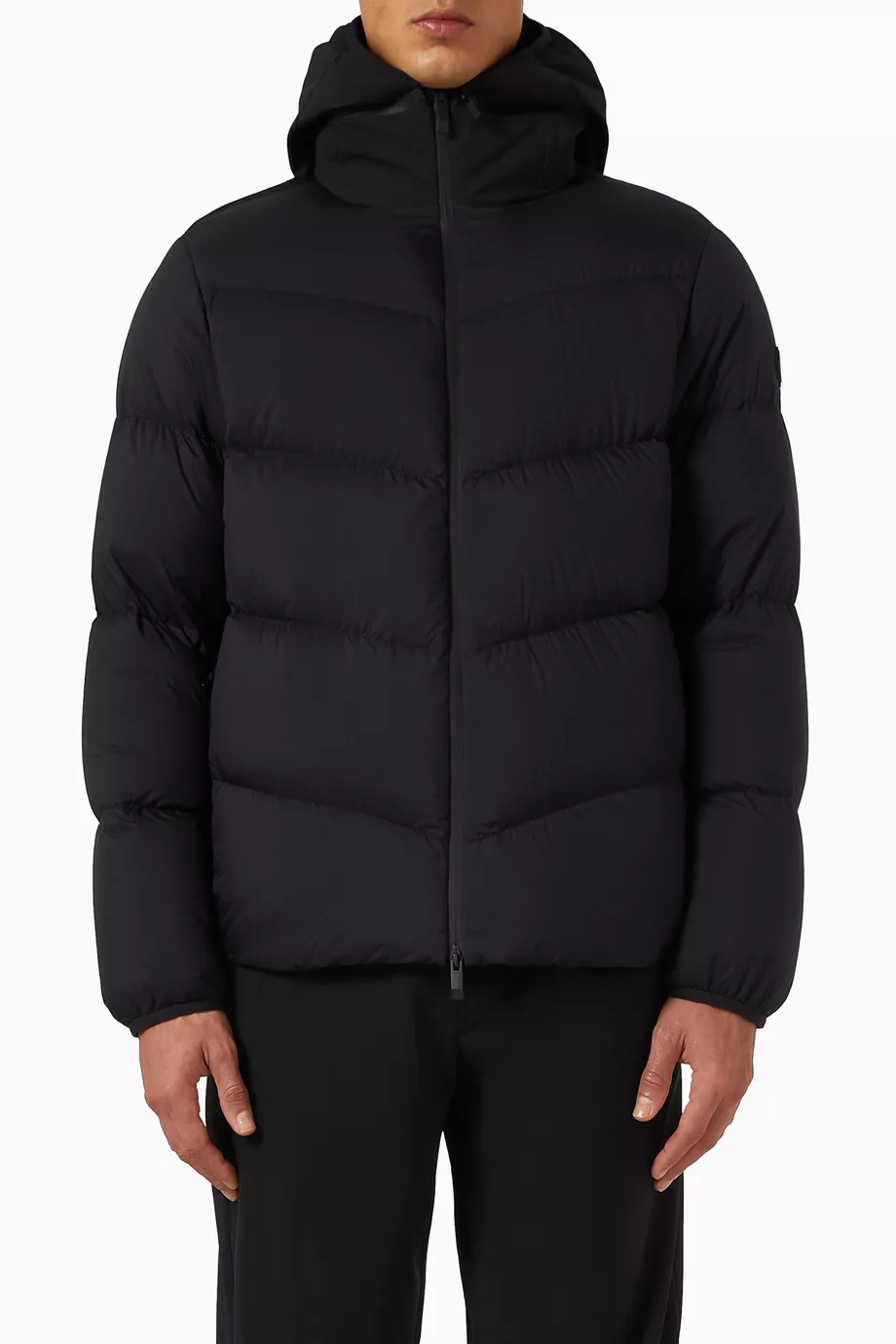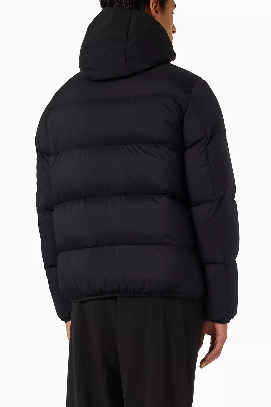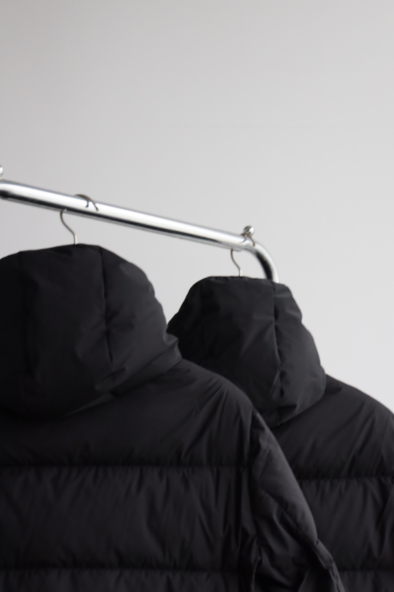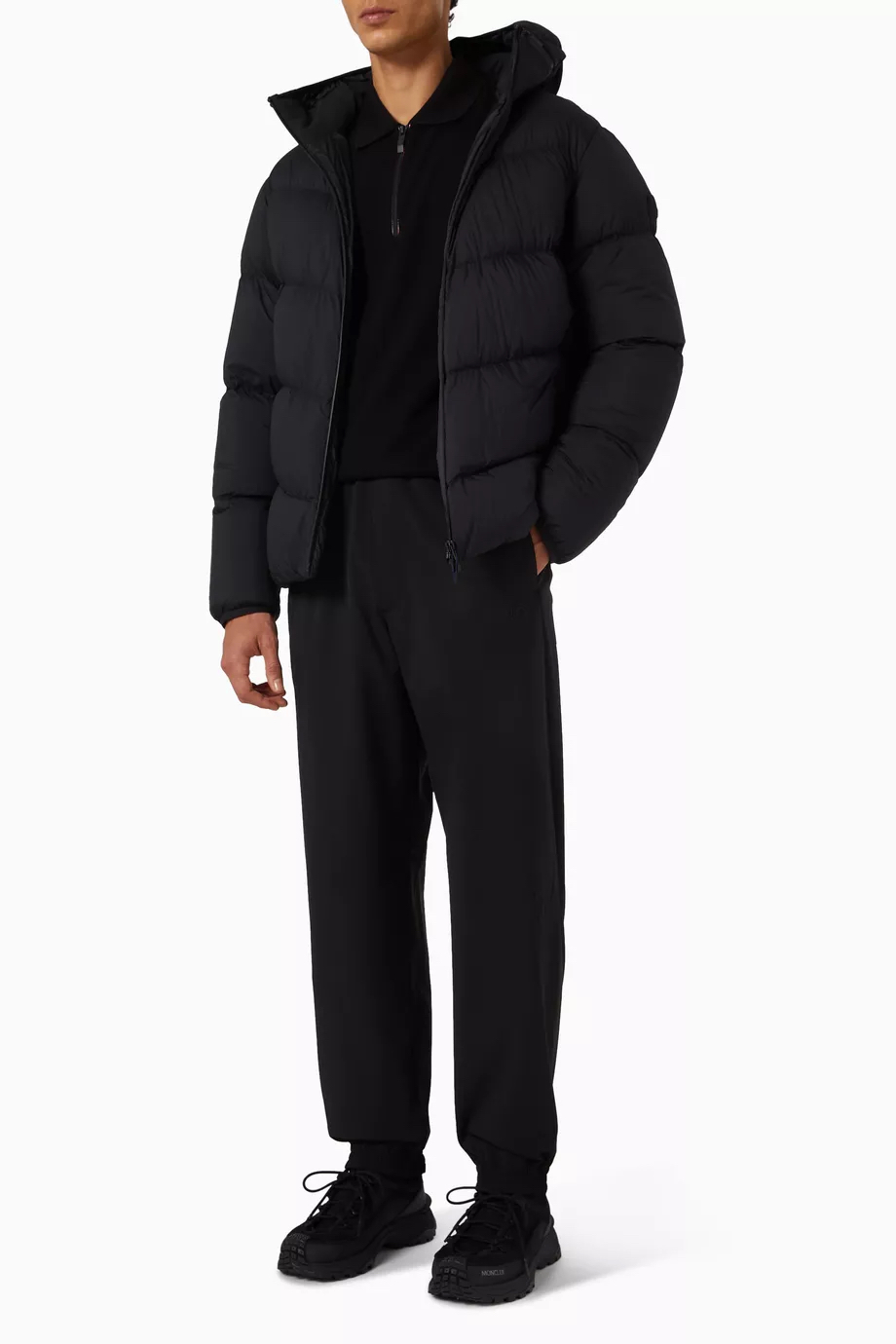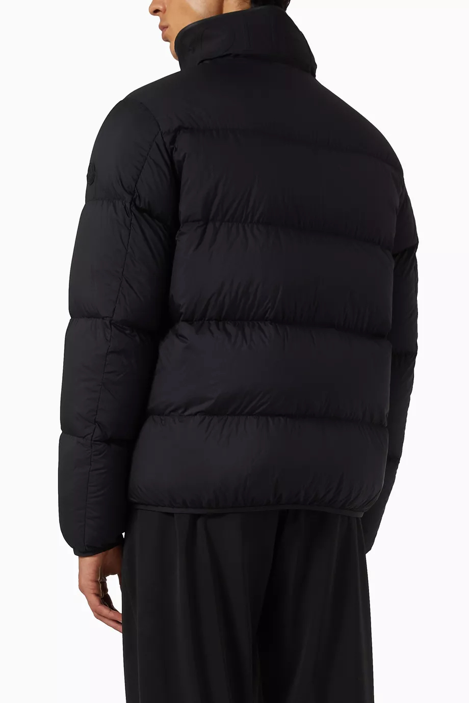 兜帽拆卸后,立领呈现压纹同色系标识,增添别致的视觉体验和触觉细节。