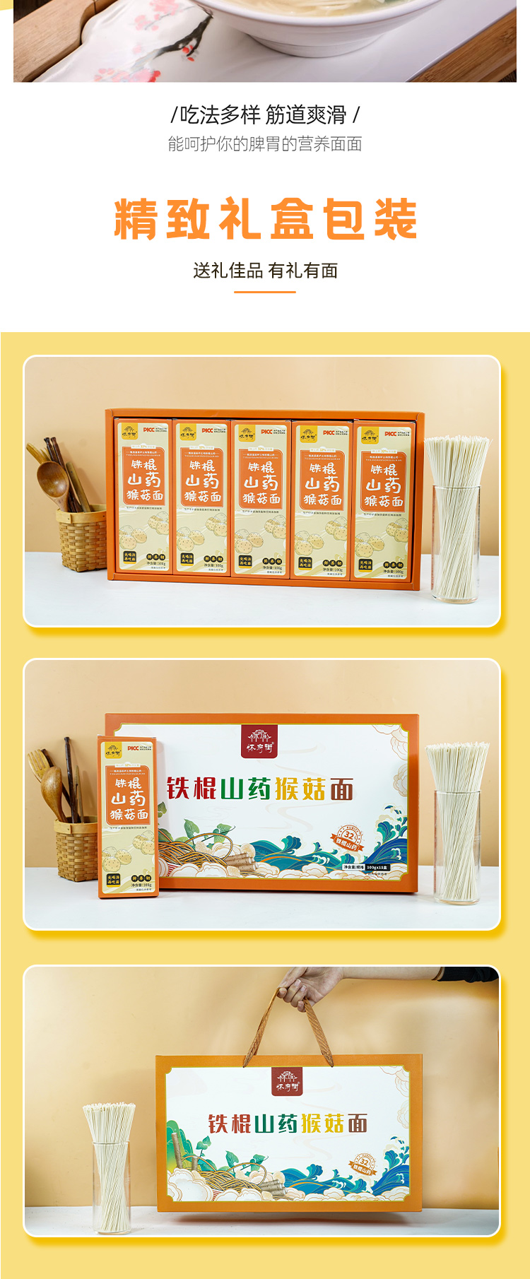 怀府街铁棍山药面200gx5盒 |铁棍山药猴菇面100g/盒 |药膳面,不添加剂道地原材筋道爽滑独立包装