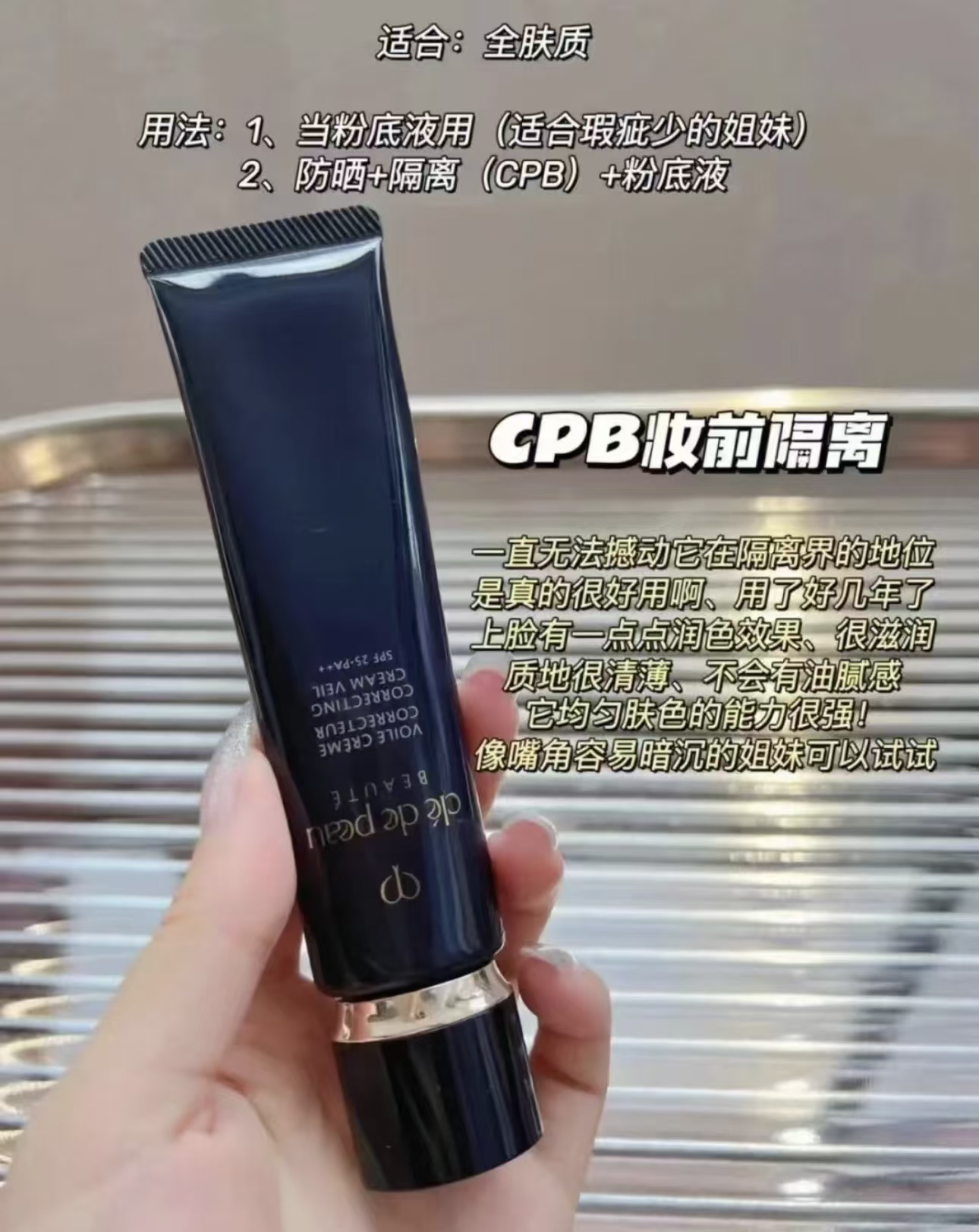 隔离界的扛把子,用在妆前做打底,湿保滋润,带会一点点色肤提亮,很好推开
