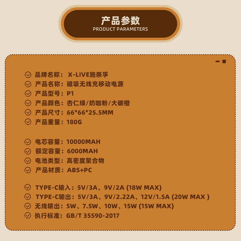 X-LIVE施奈孚苹果磁吸无线充电宝适用iPhone13Magsafe专用12pro快充10000毫安吸附式大容量电池便携移动电源
