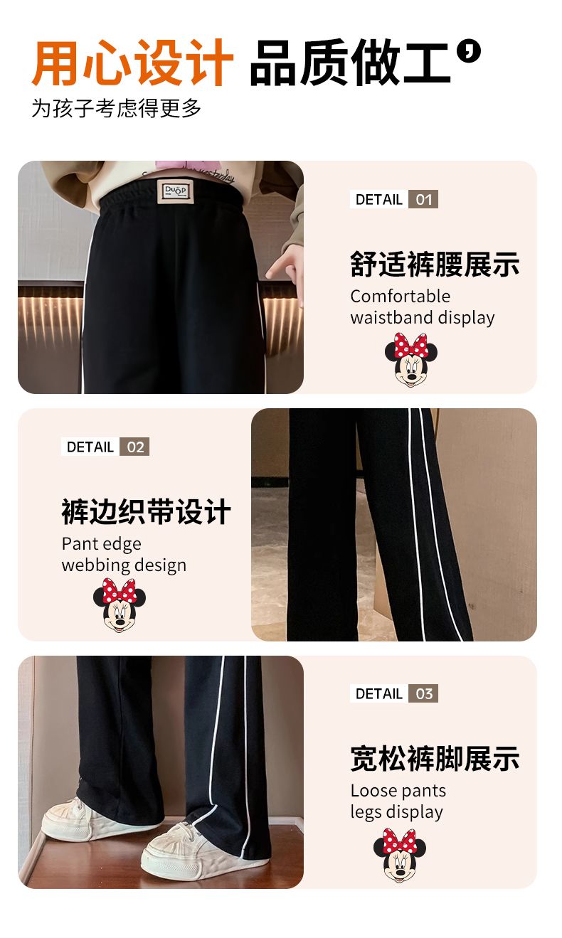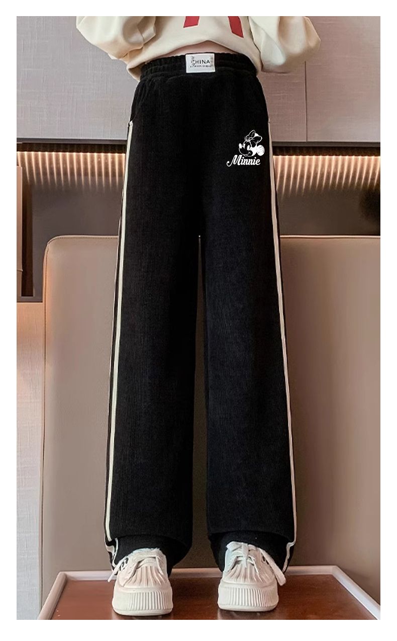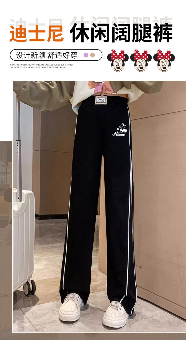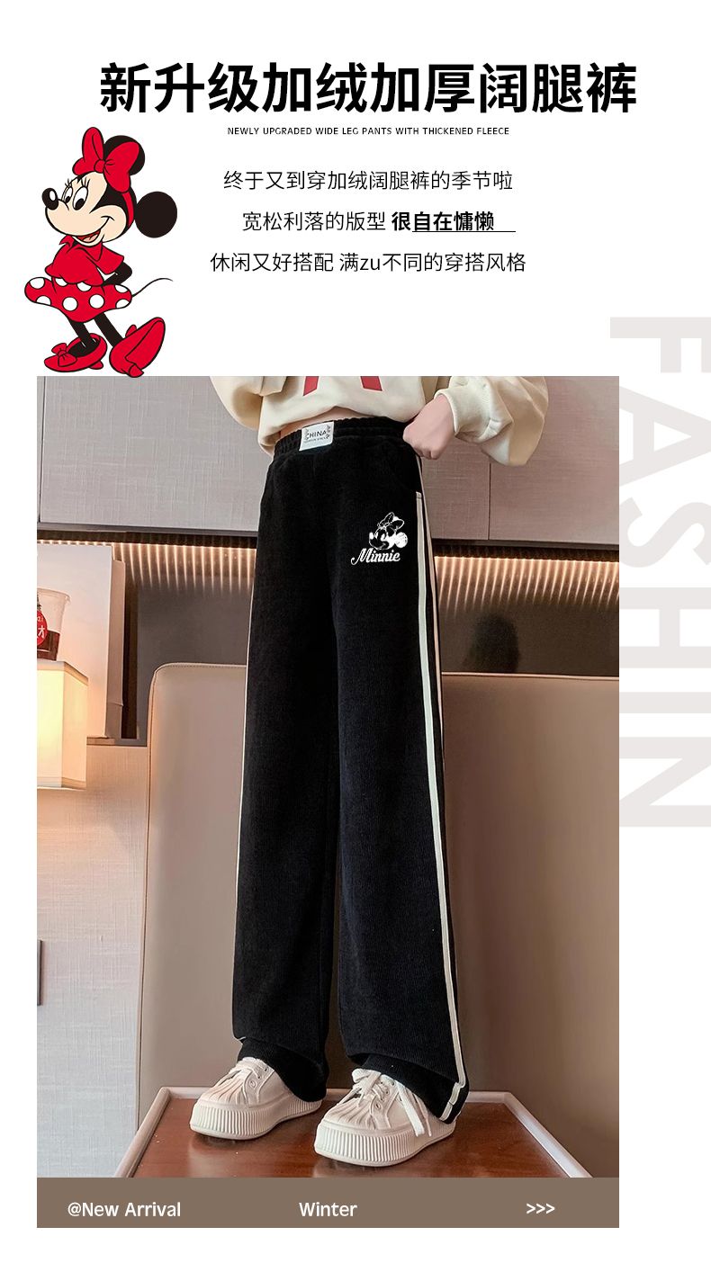 迪士尼女童阔腿裤冬季加绒加厚2025新款儿童长裤秋冬女大童直筒裤