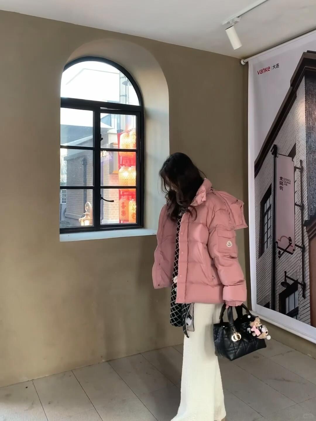【体验无断层】Moncler Maya 70 (Vezere哑光雾面升级版) 粉色少女心穿搭 爱上了干枯玫瑰粉 雾霾哑光粉高级又显白 maya属于不挑人的经典款 冬天谁穿这件谁好看哈哈哈哈