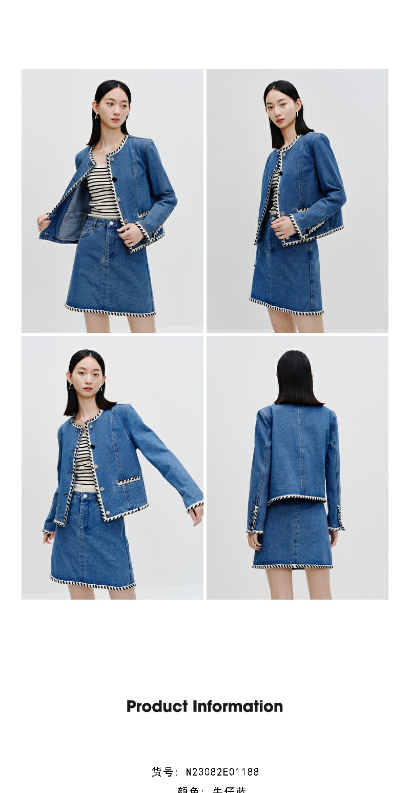 NEELLY纳俪商场同款牛仔半身裙显瘦遮胯2023秋季新款蓝色 A字裙女N23082E01188
