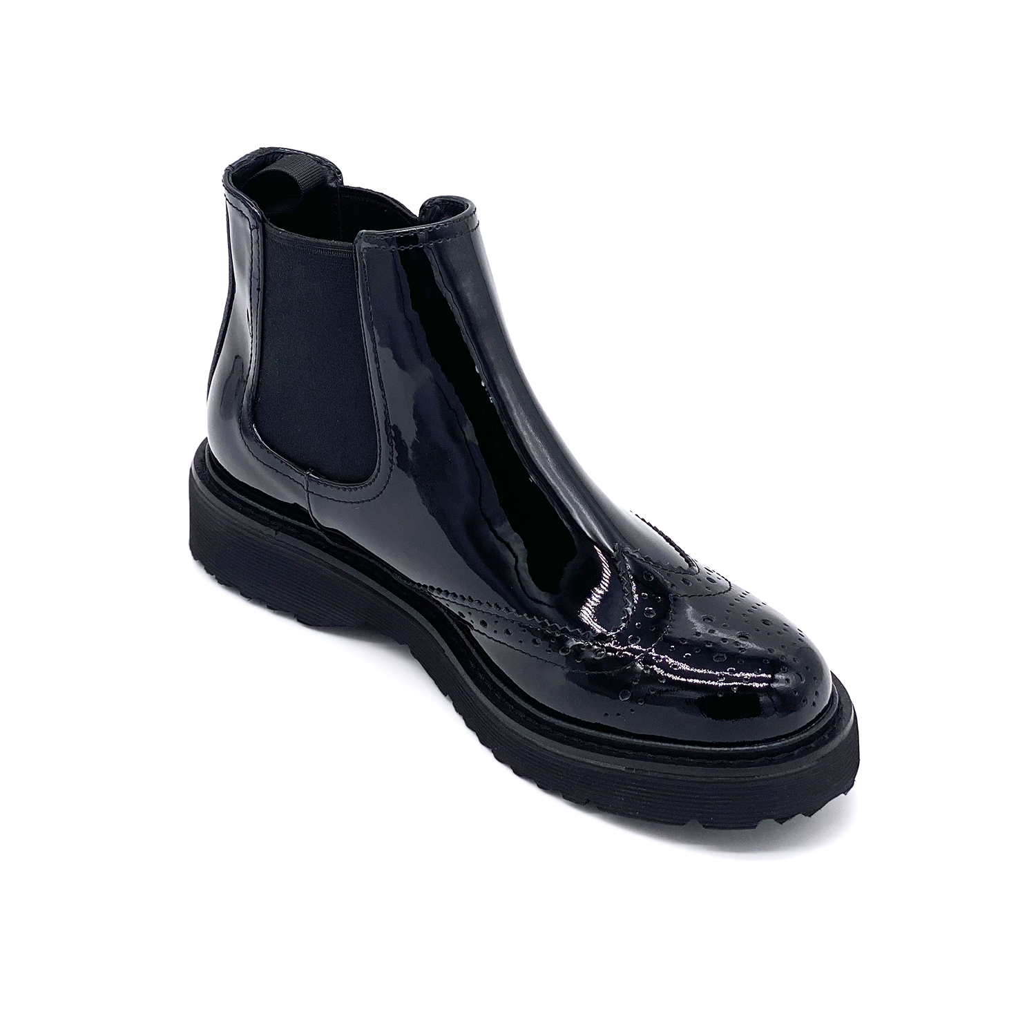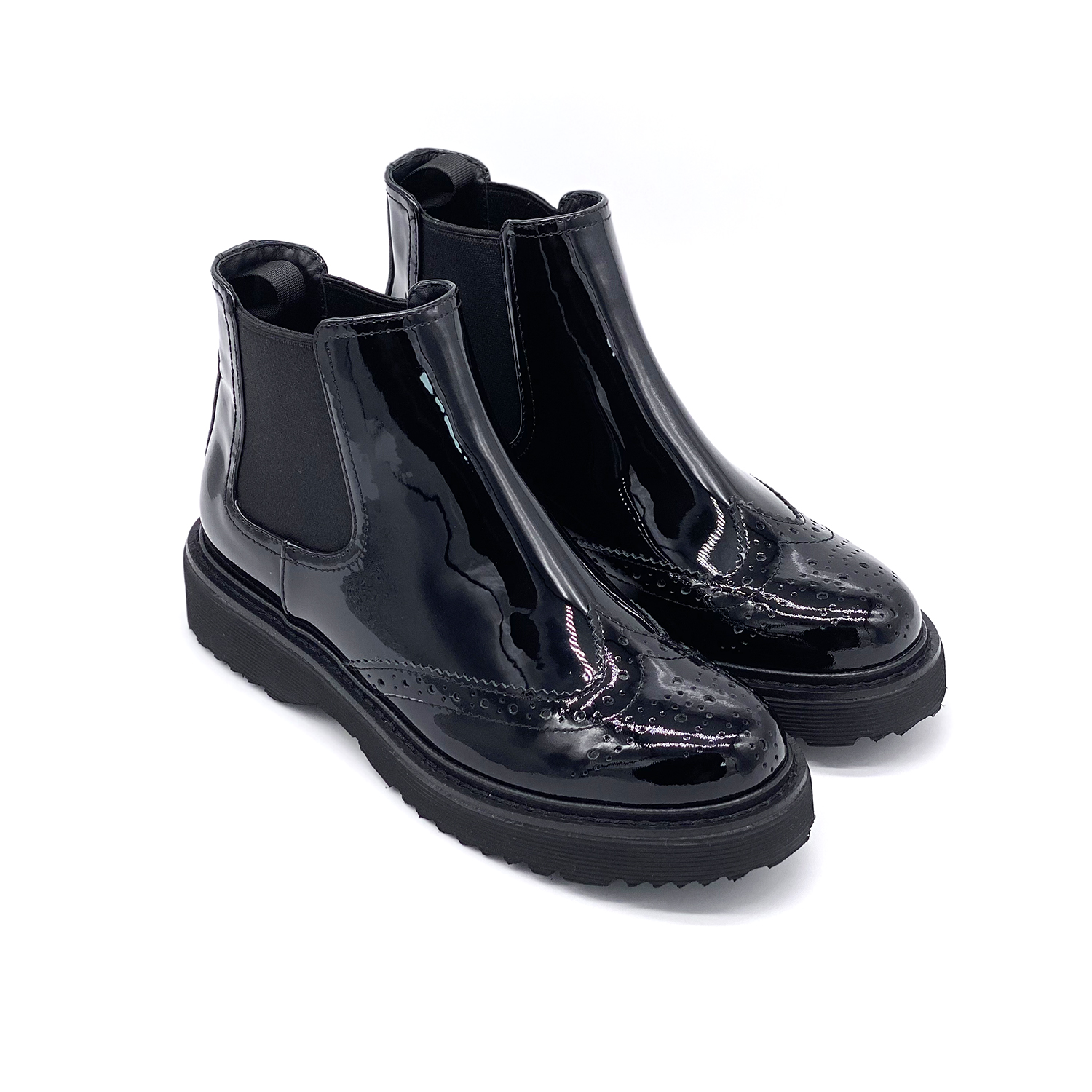 国货优品系列布洛克雕花切尔西女靴DAY STYLE990黑色漆皮(超轻款)