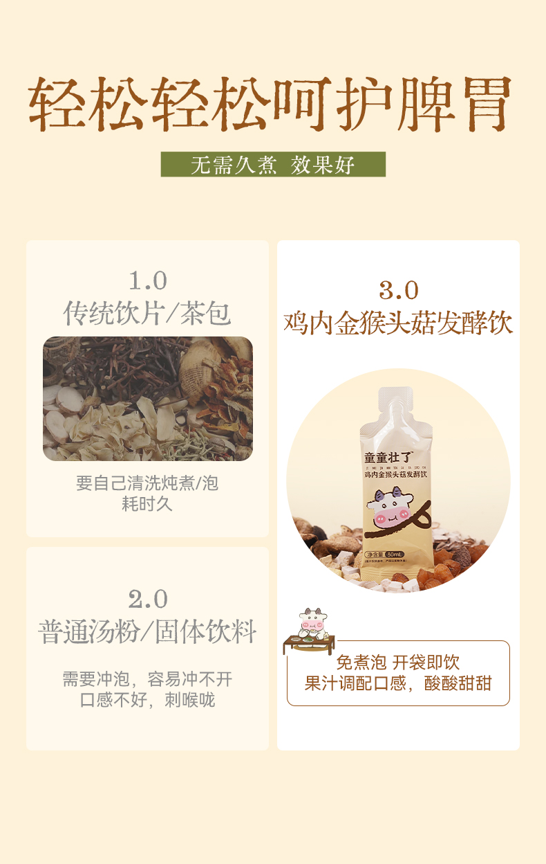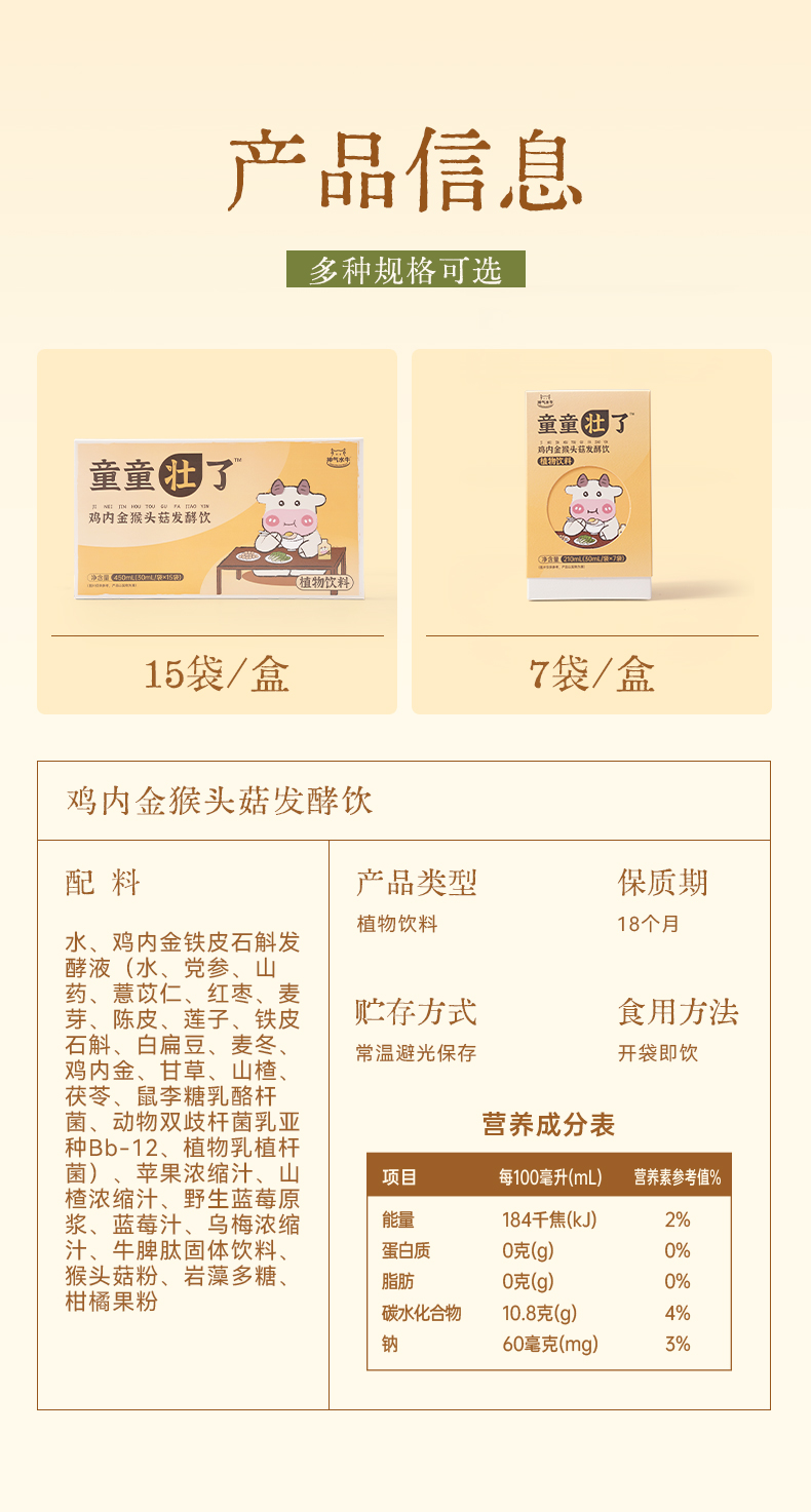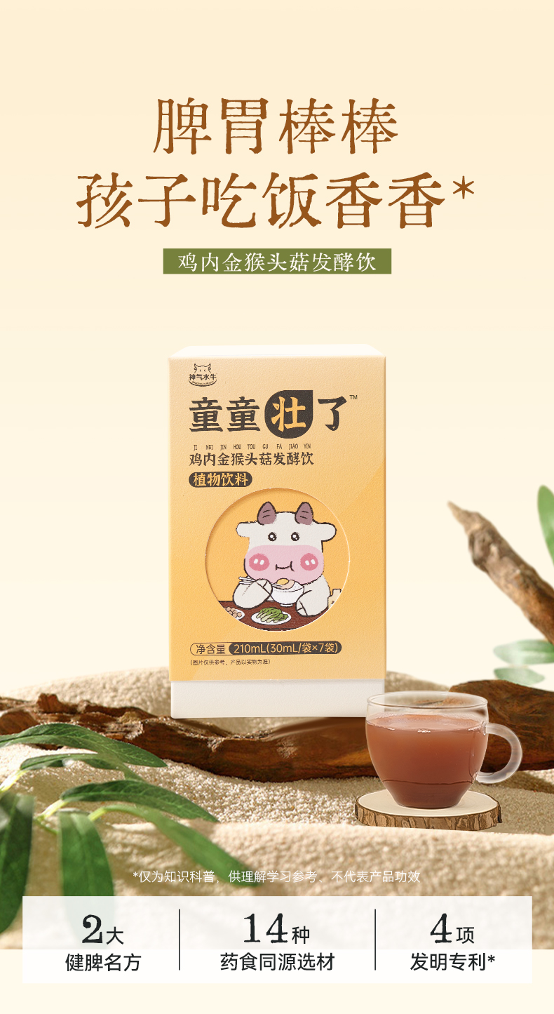 【鱼sir专属】 神气水牛 童童壮了脾胃饮 药食同源 鸡内金猴头菇 发酵饮30ml/袋