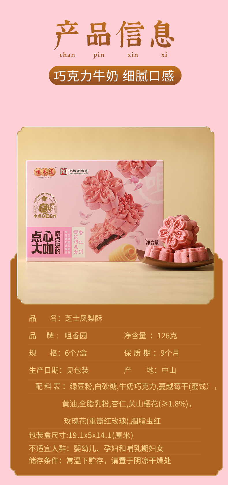 【咀香园樱花巧克力杏仁饼126g】 浪漫下午茶 小清新零食 酥脆夹心 限定甜点礼物