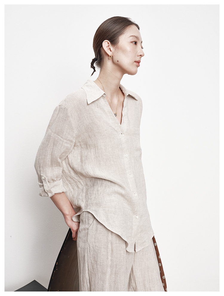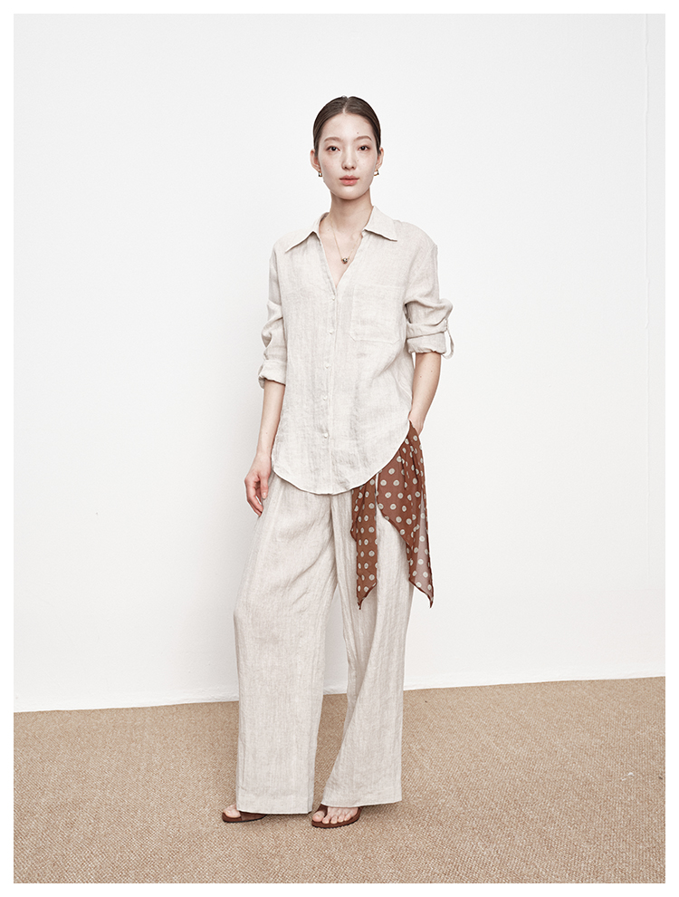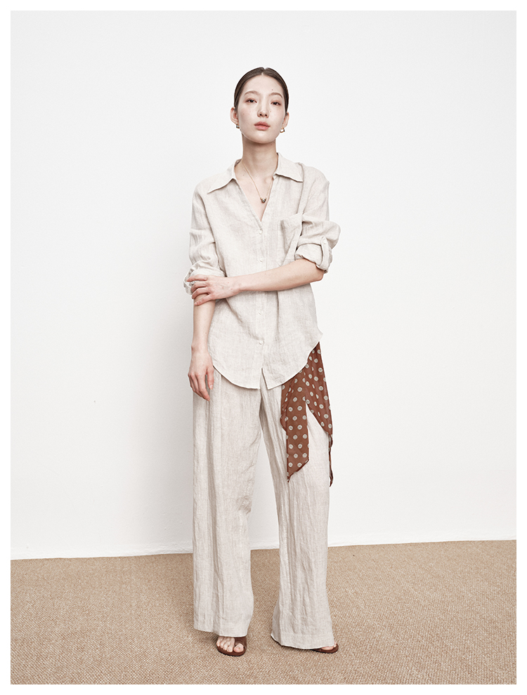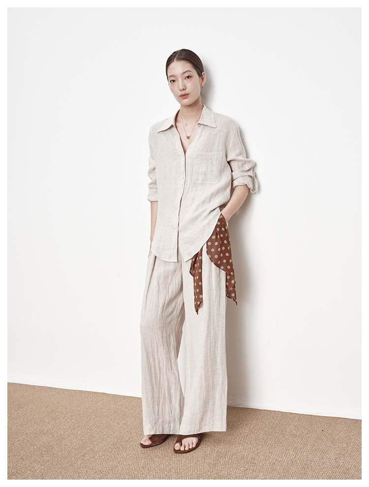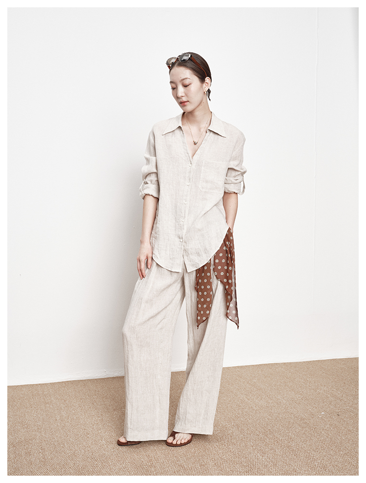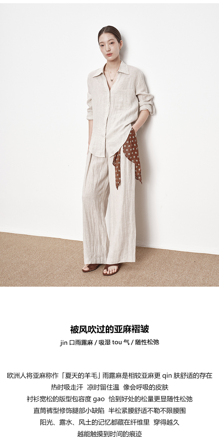 UMILAB|风竹*静奢亚麻系列 法国雨露麻呼吸感老钱衬衫/长裤E238W