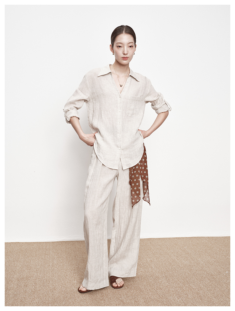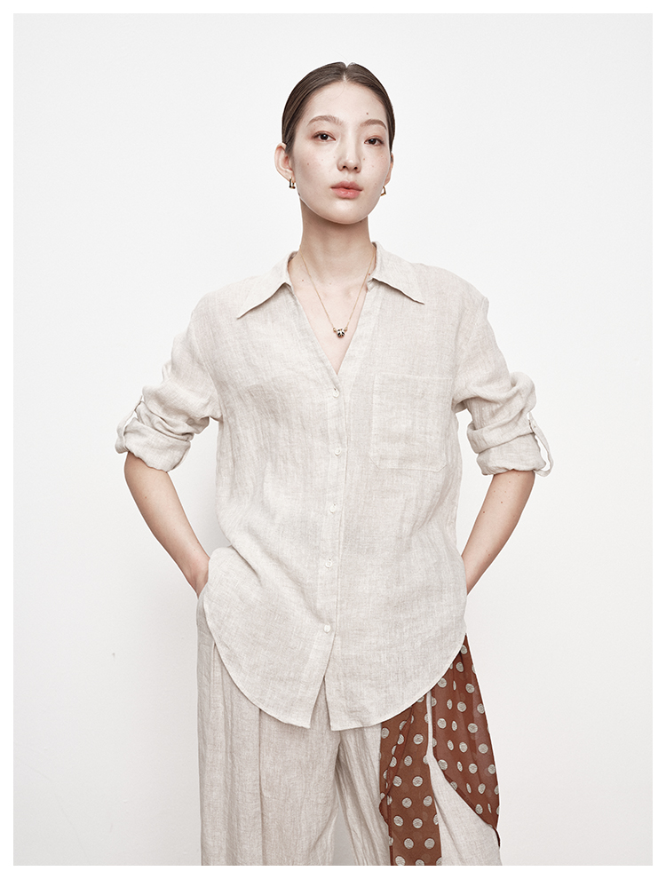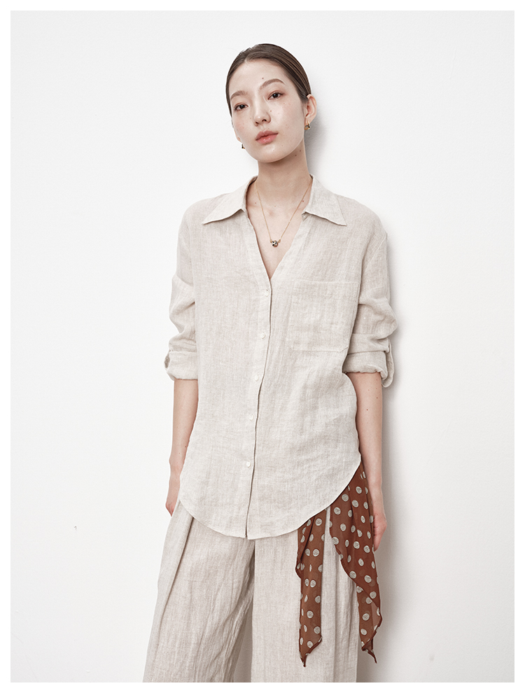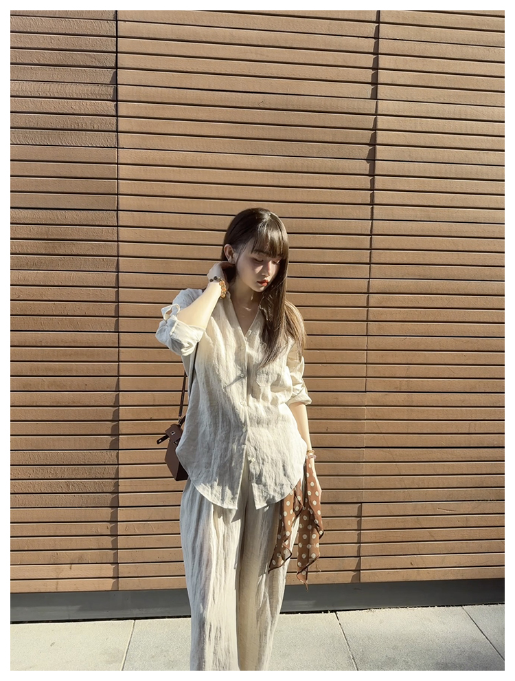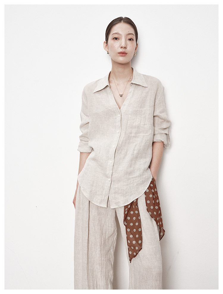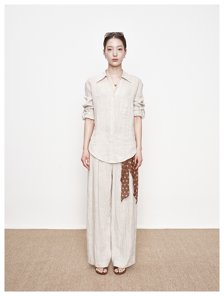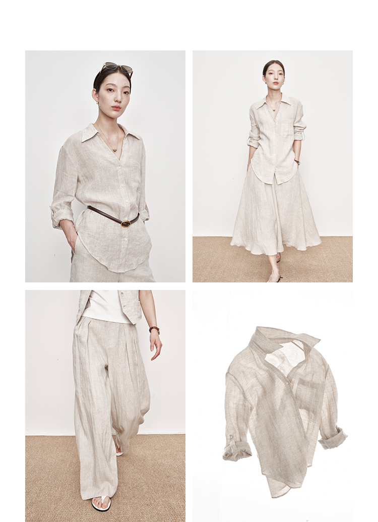 UMILAB|风竹*静奢亚麻系列 法国雨露麻呼吸感老钱衬衫/长裤E238W