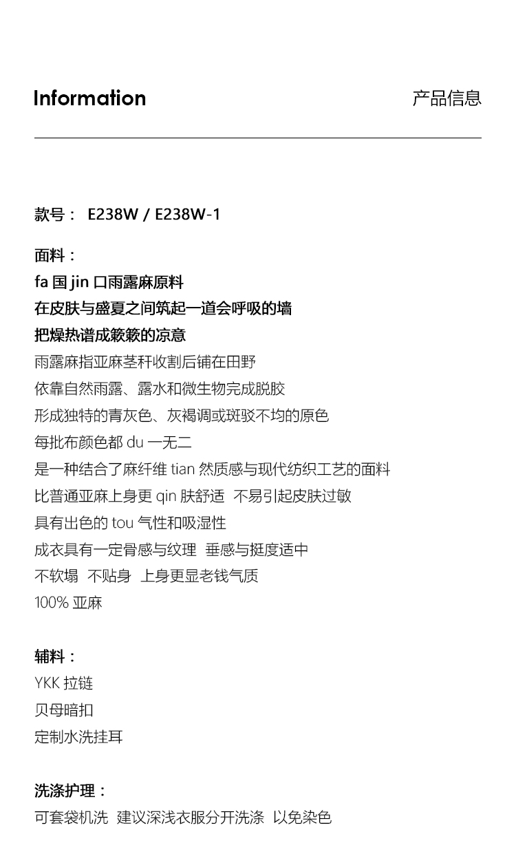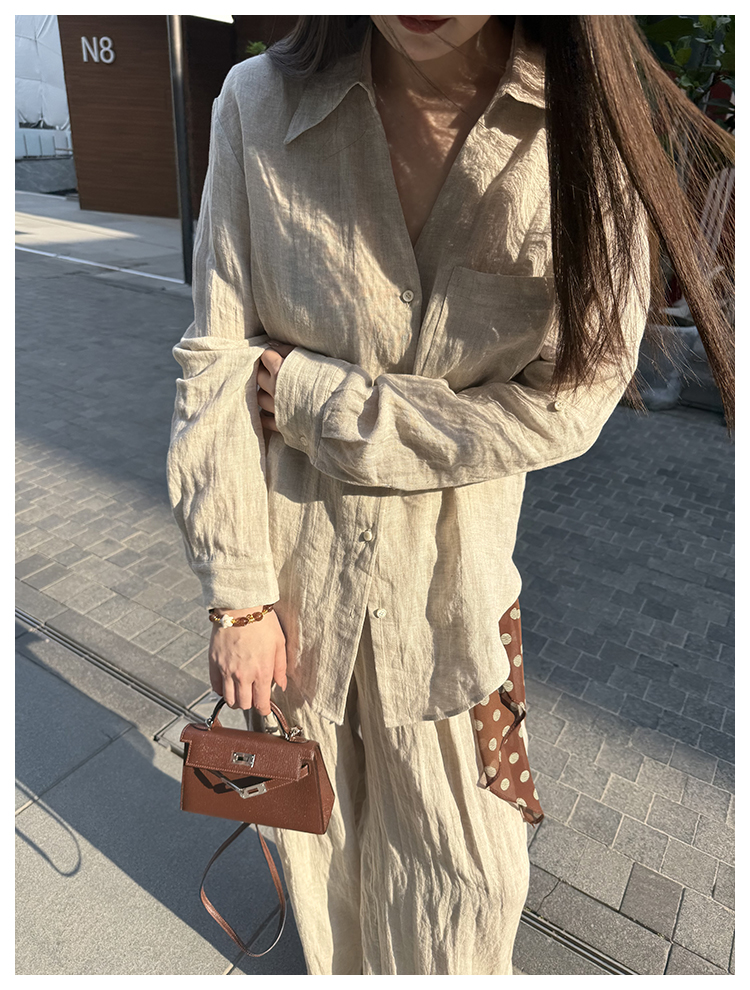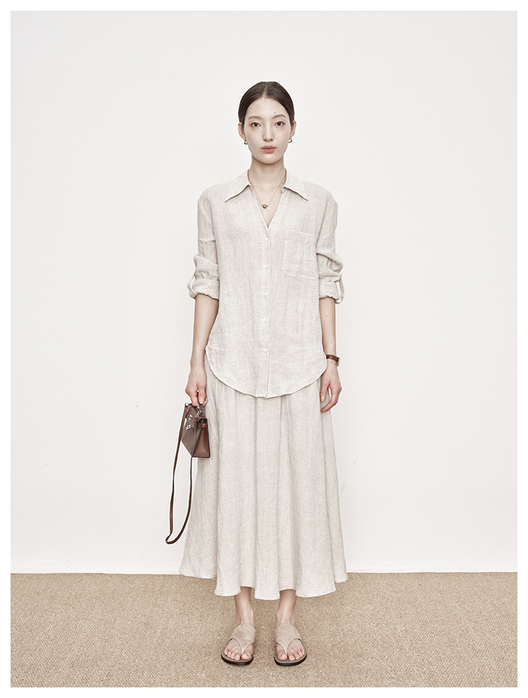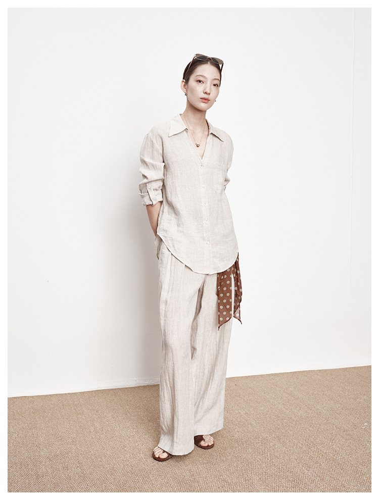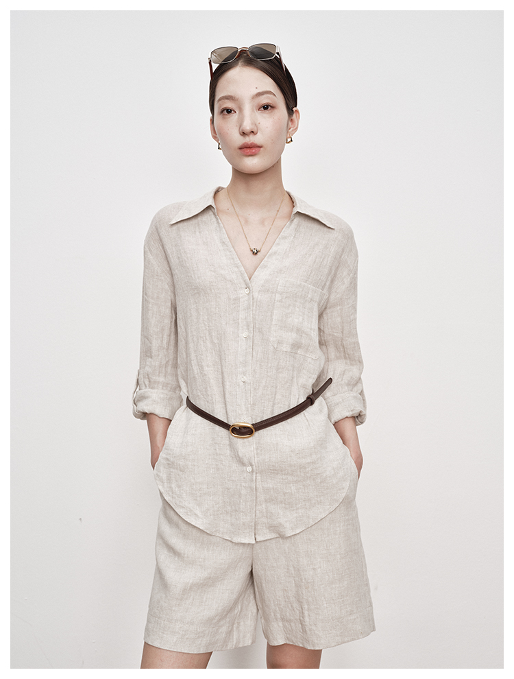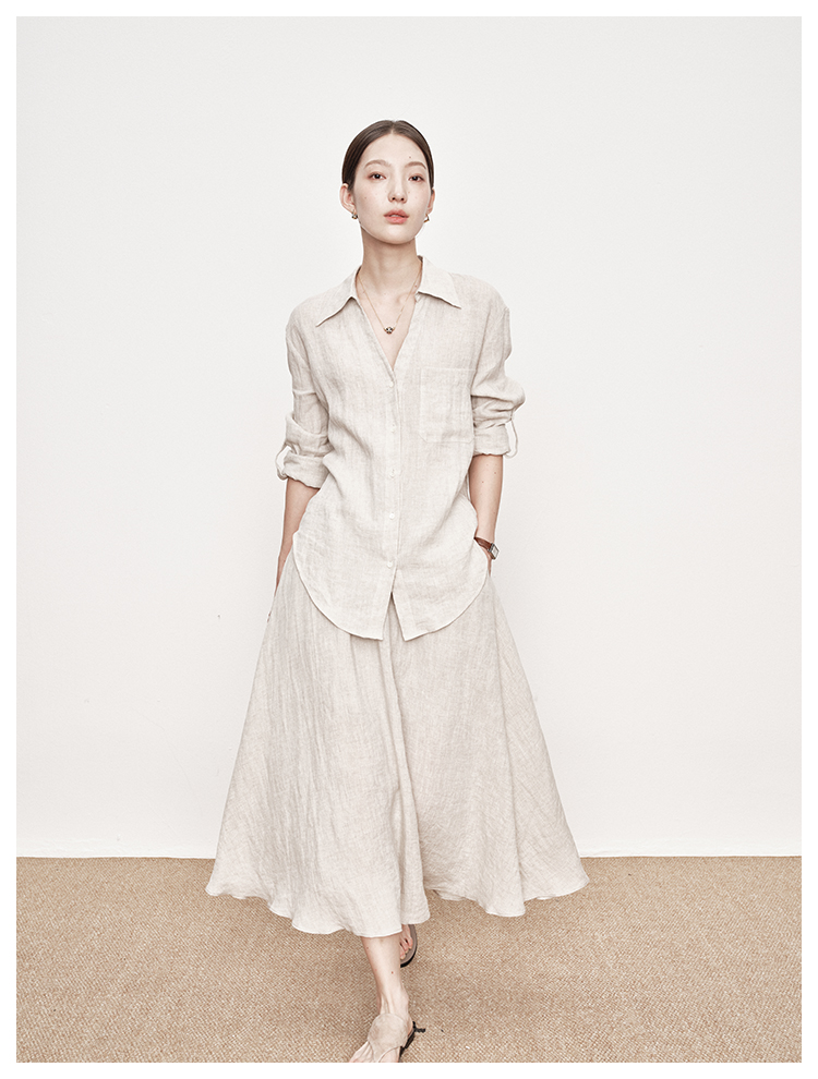 UMILAB|风竹*静奢亚麻系列 法国雨露麻呼吸感老钱衬衫/长裤E238W
