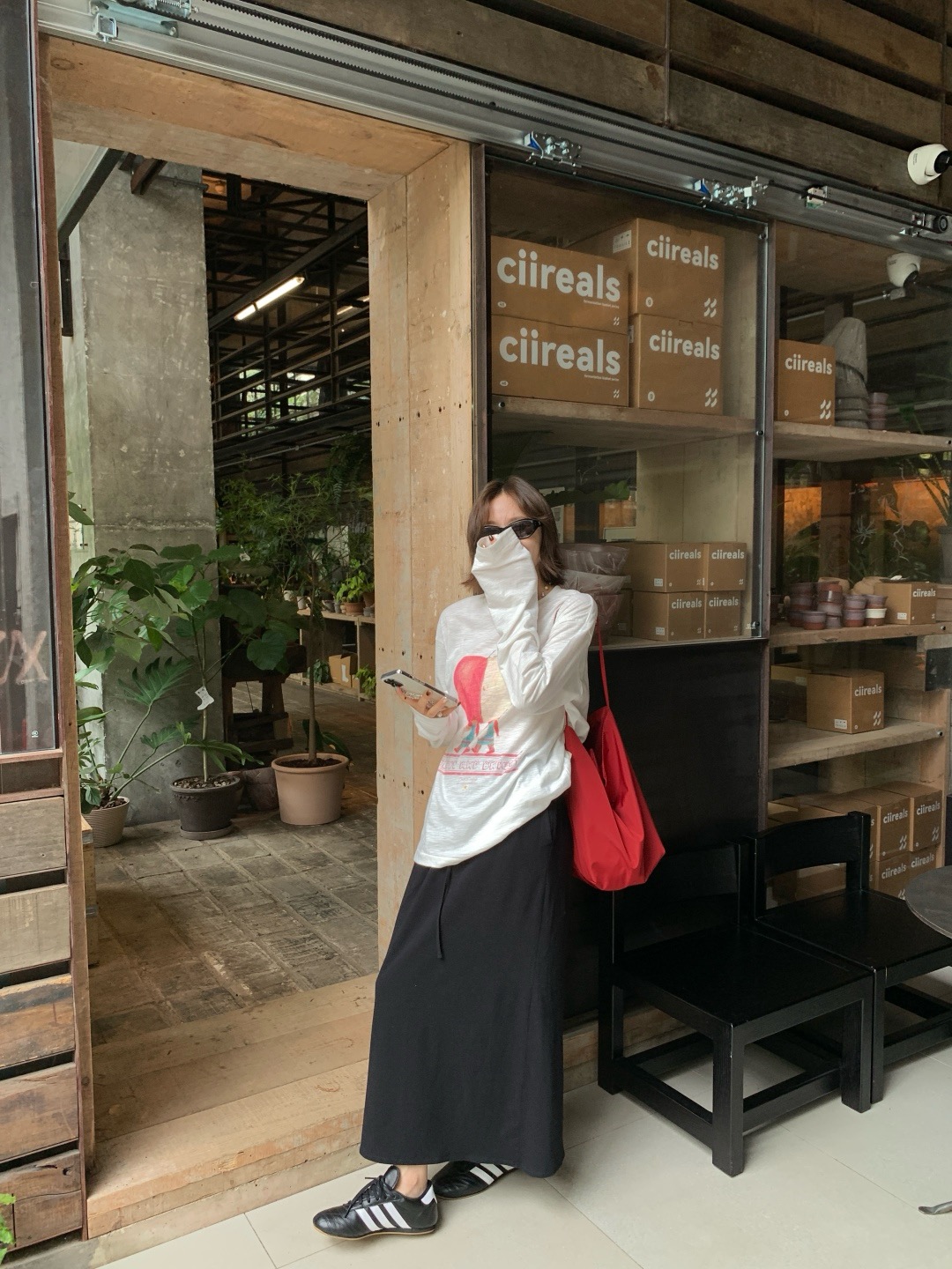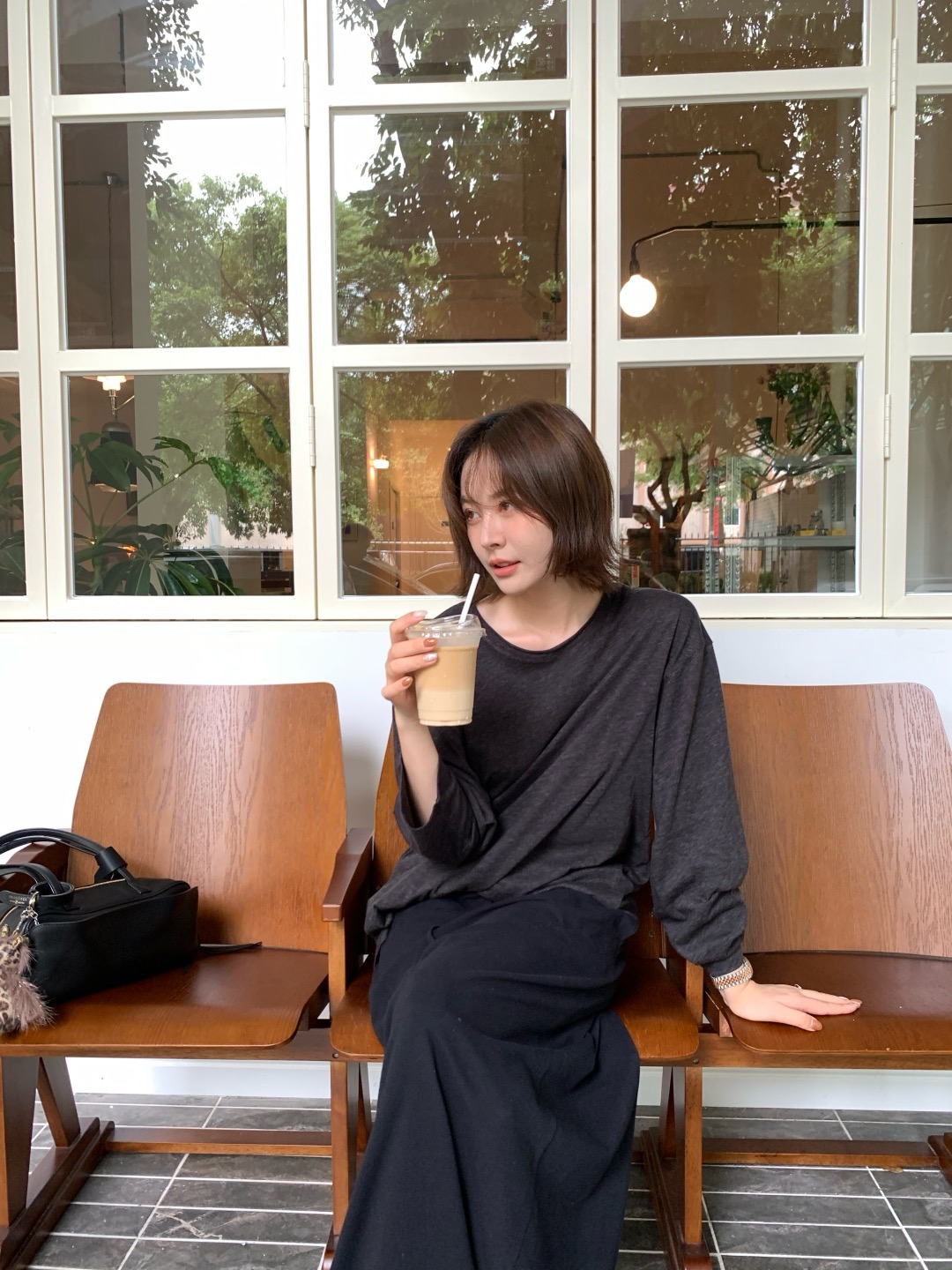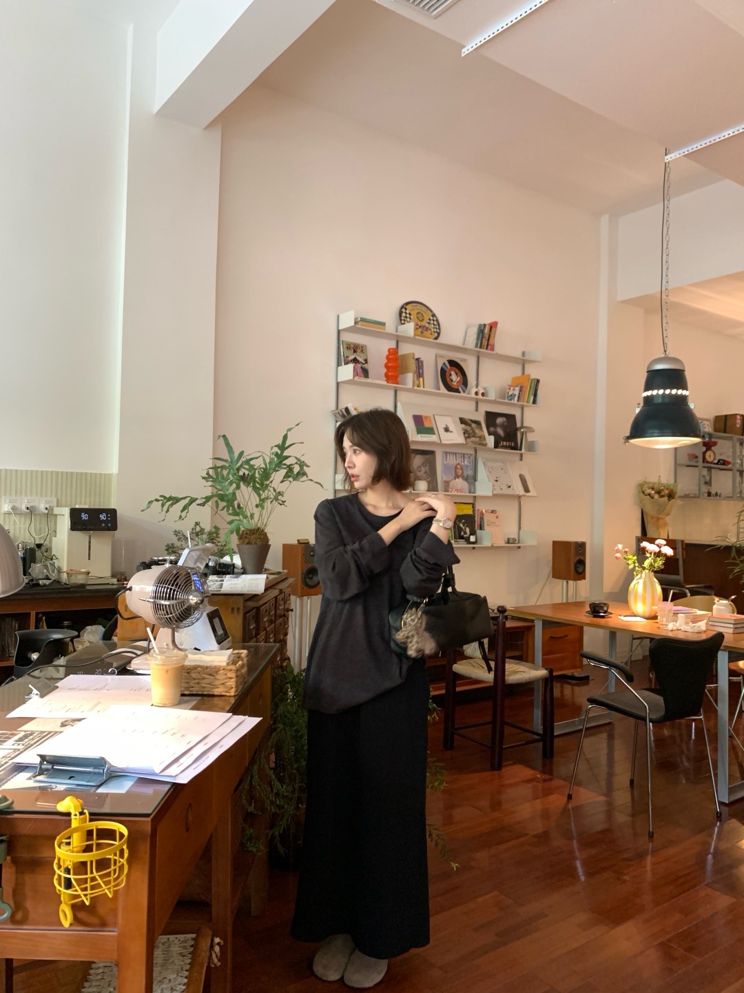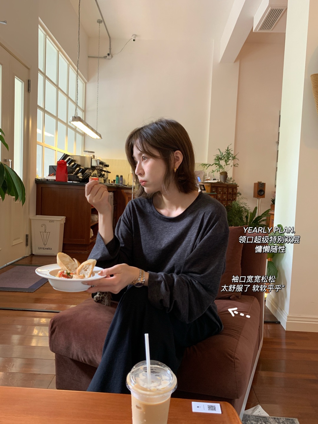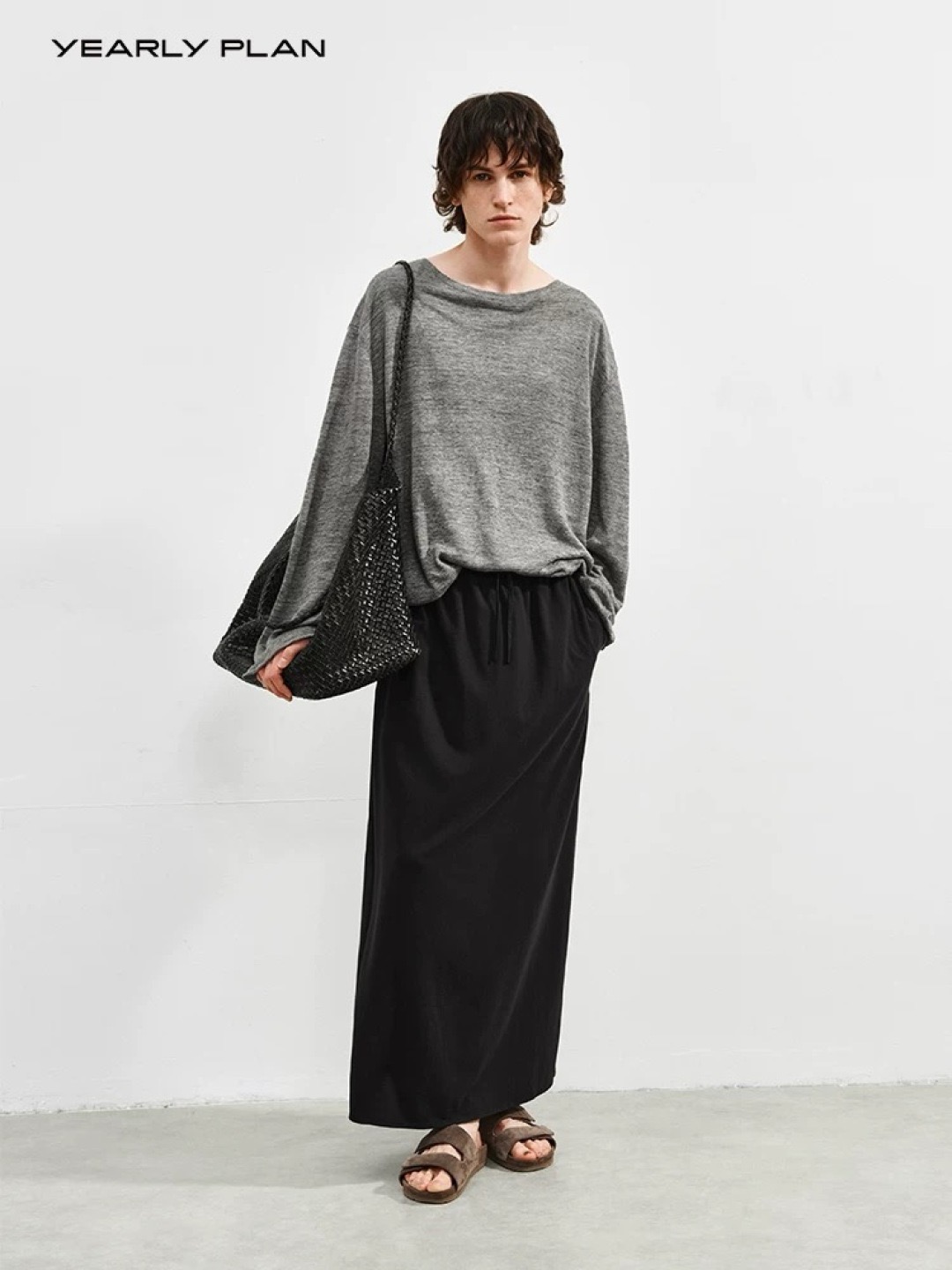 韩国进口面料,💪YEARLY PLAN混纺毛边圆领长袖tee打底➕垂感针织抽绳半身裙