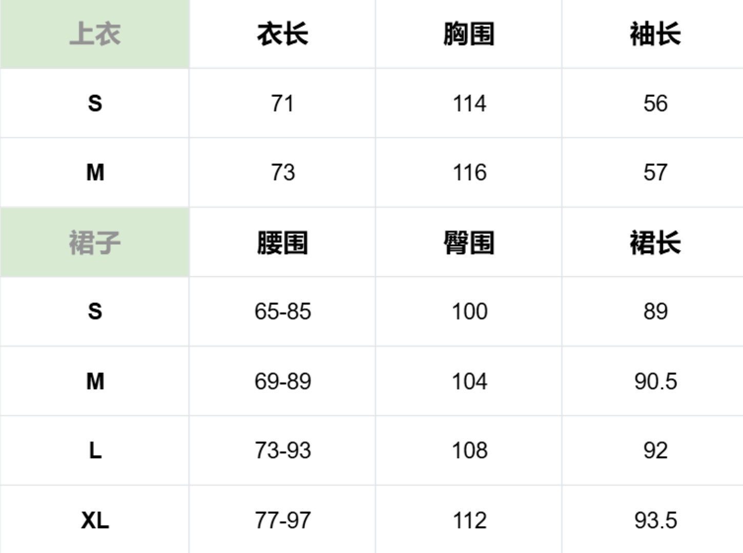 ⚠️码数:长袖tee S、M,半裙 S、M、L、XL