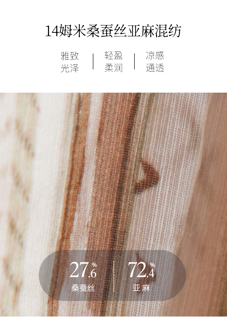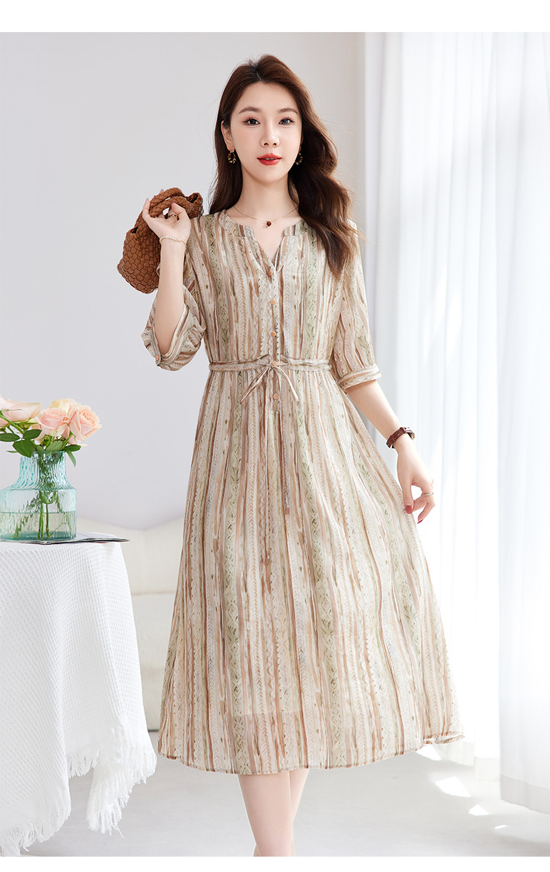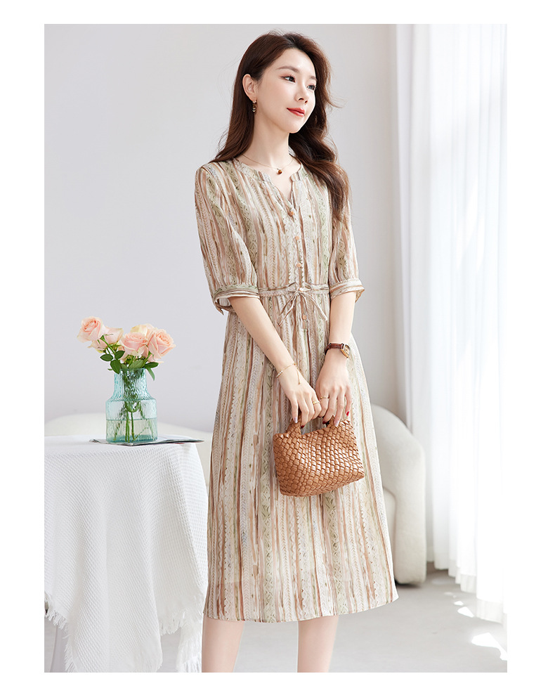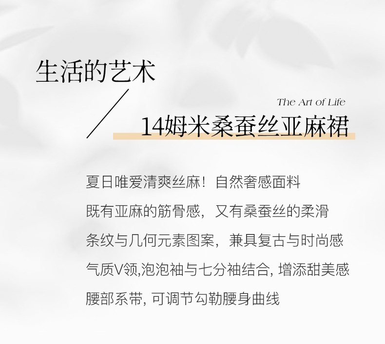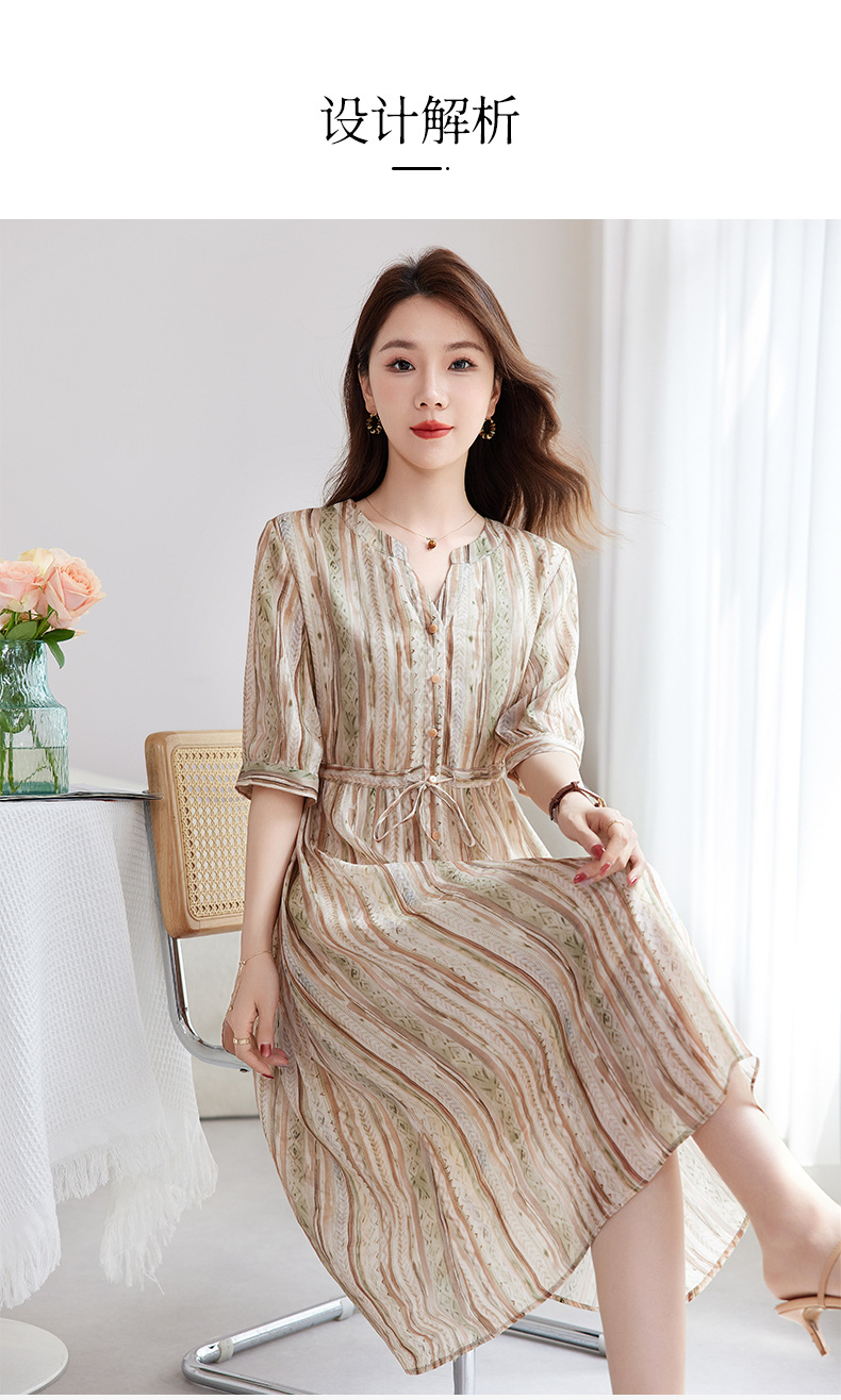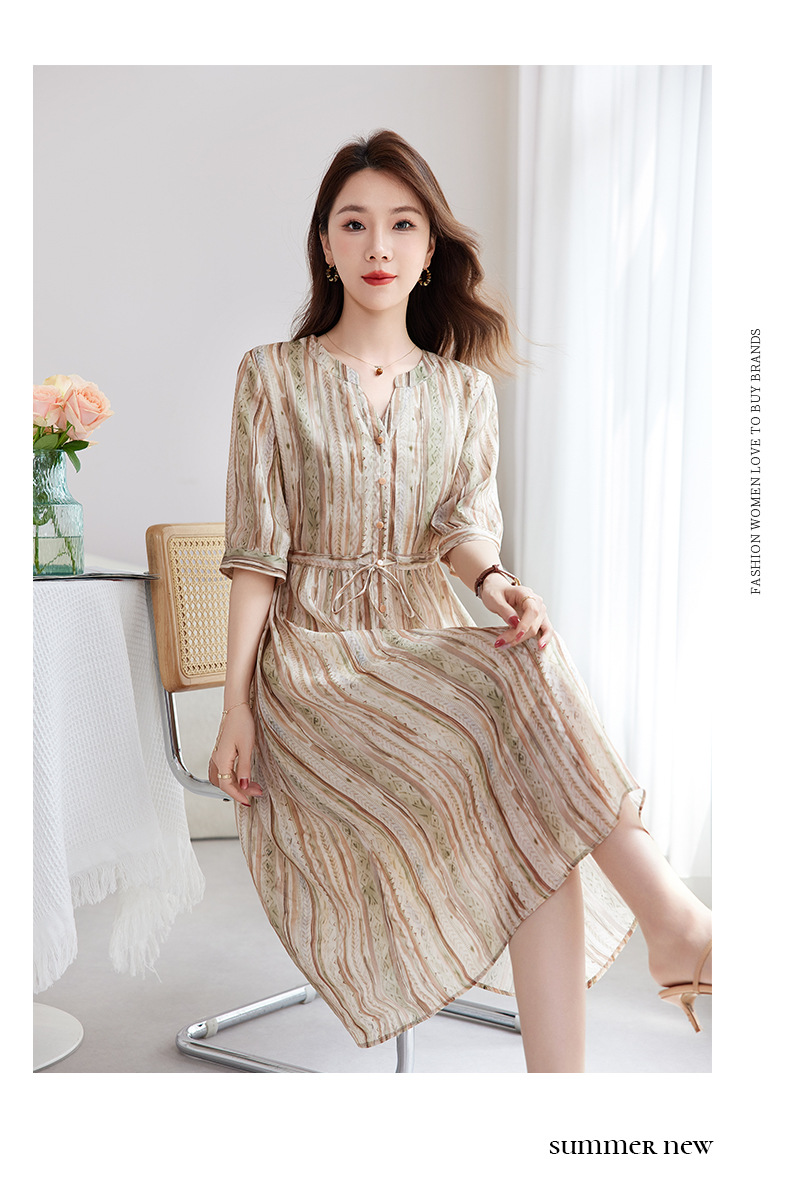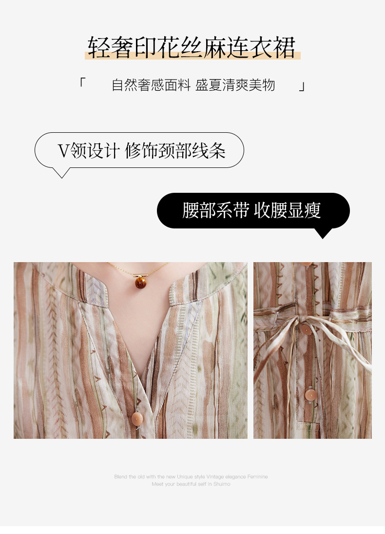 QS-【真丝亚麻混纺】中大淑休闲大码丝麻印花连衣裙女中长A字裙1123