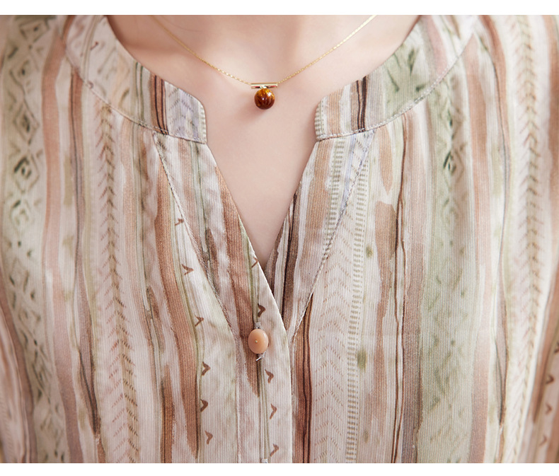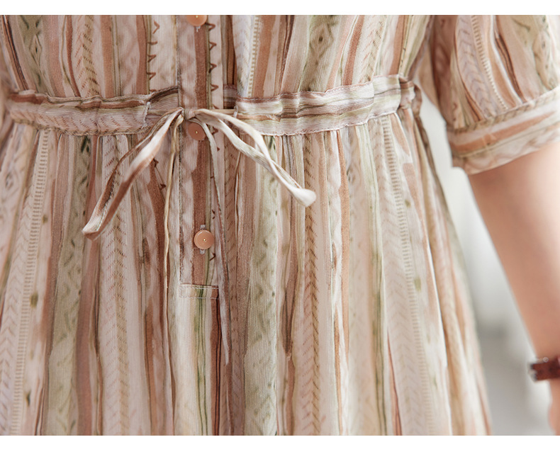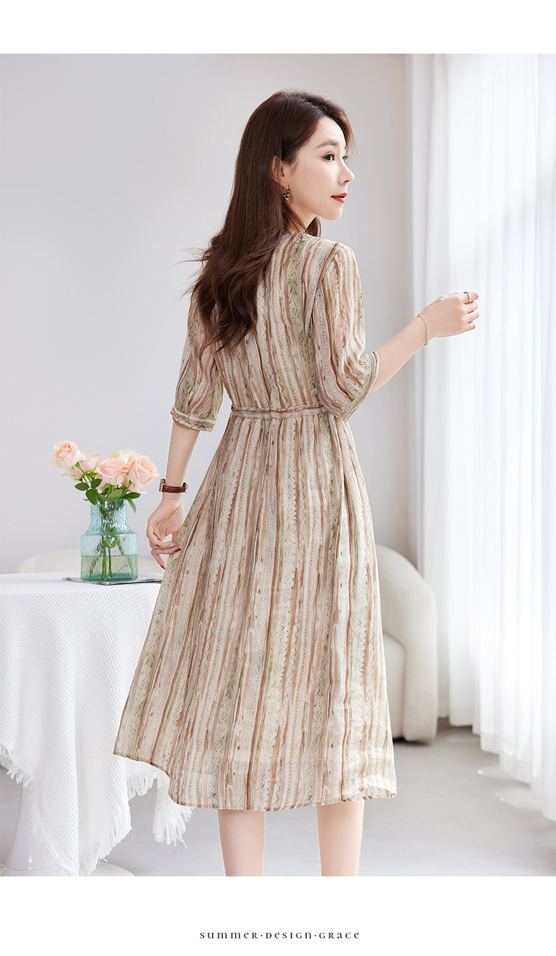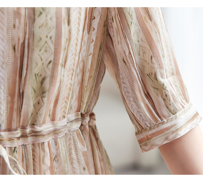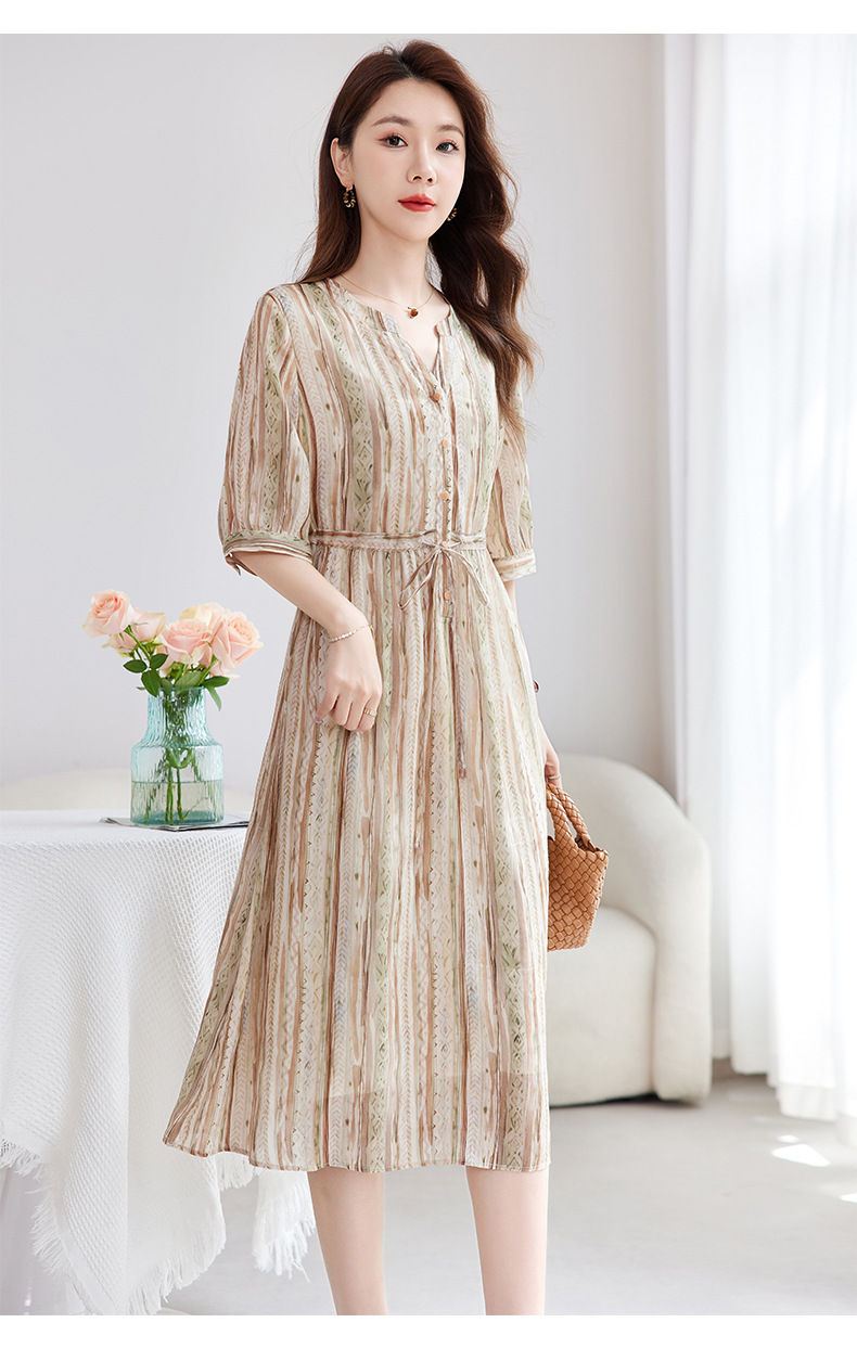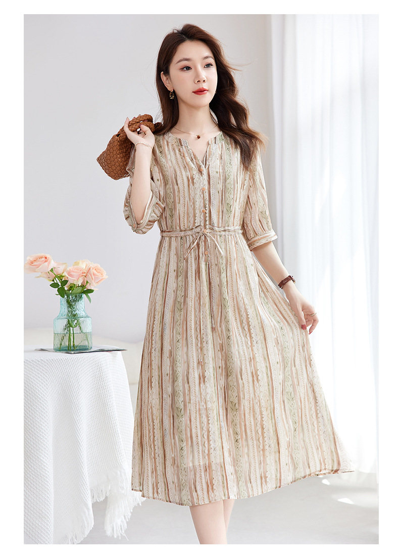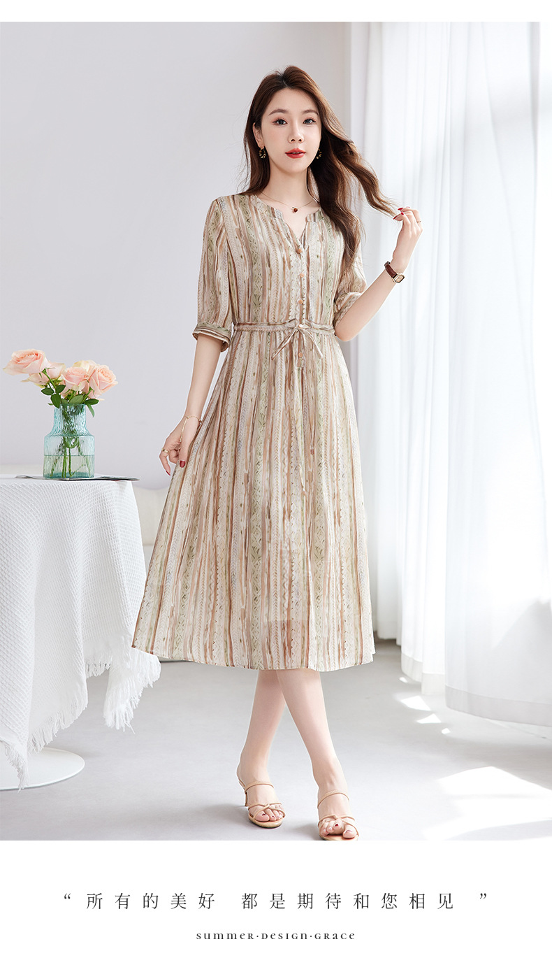 QS-【真丝亚麻混纺】中大淑休闲大码丝麻印花连衣裙女中长A字裙1123