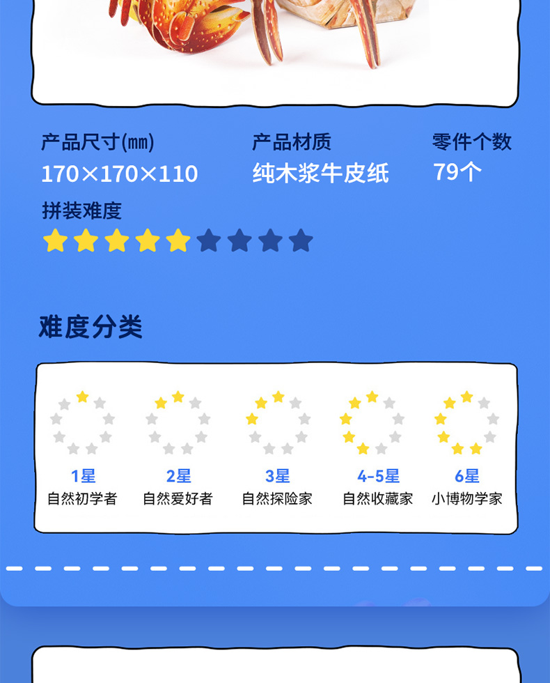 博物文创 海洋系列橙红陆寄居蟹纸模创意生日礼物动手动脑拼装玩具