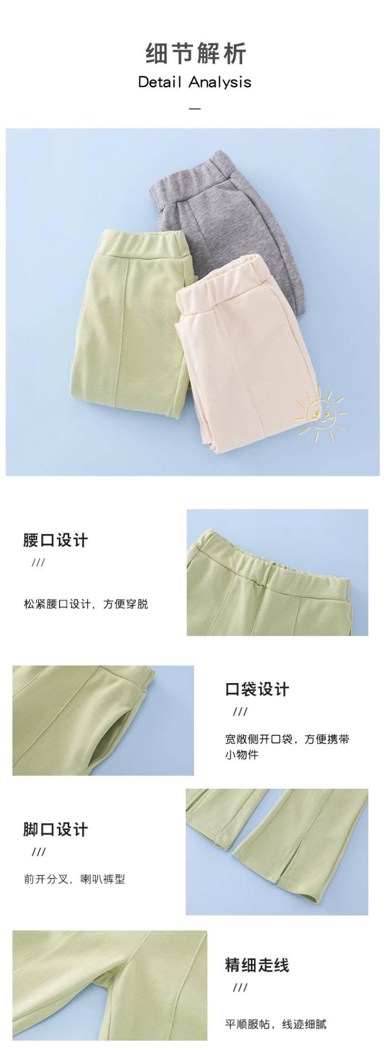 产品二:精棉前开喇叭裤