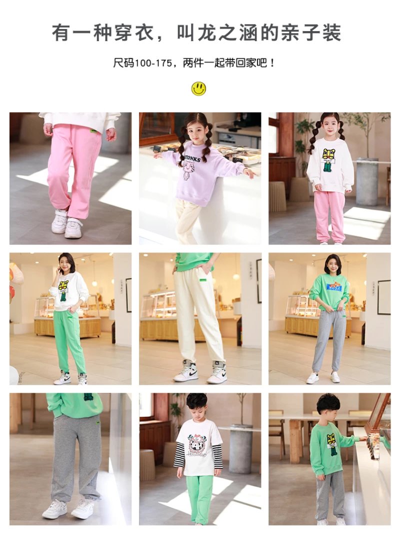 【爆款特价 提前购】龙之涵 亲子款精棉卫衣卫裤套装 婴幼儿A类标准 舒适百搭中大童休闲裤90-175码