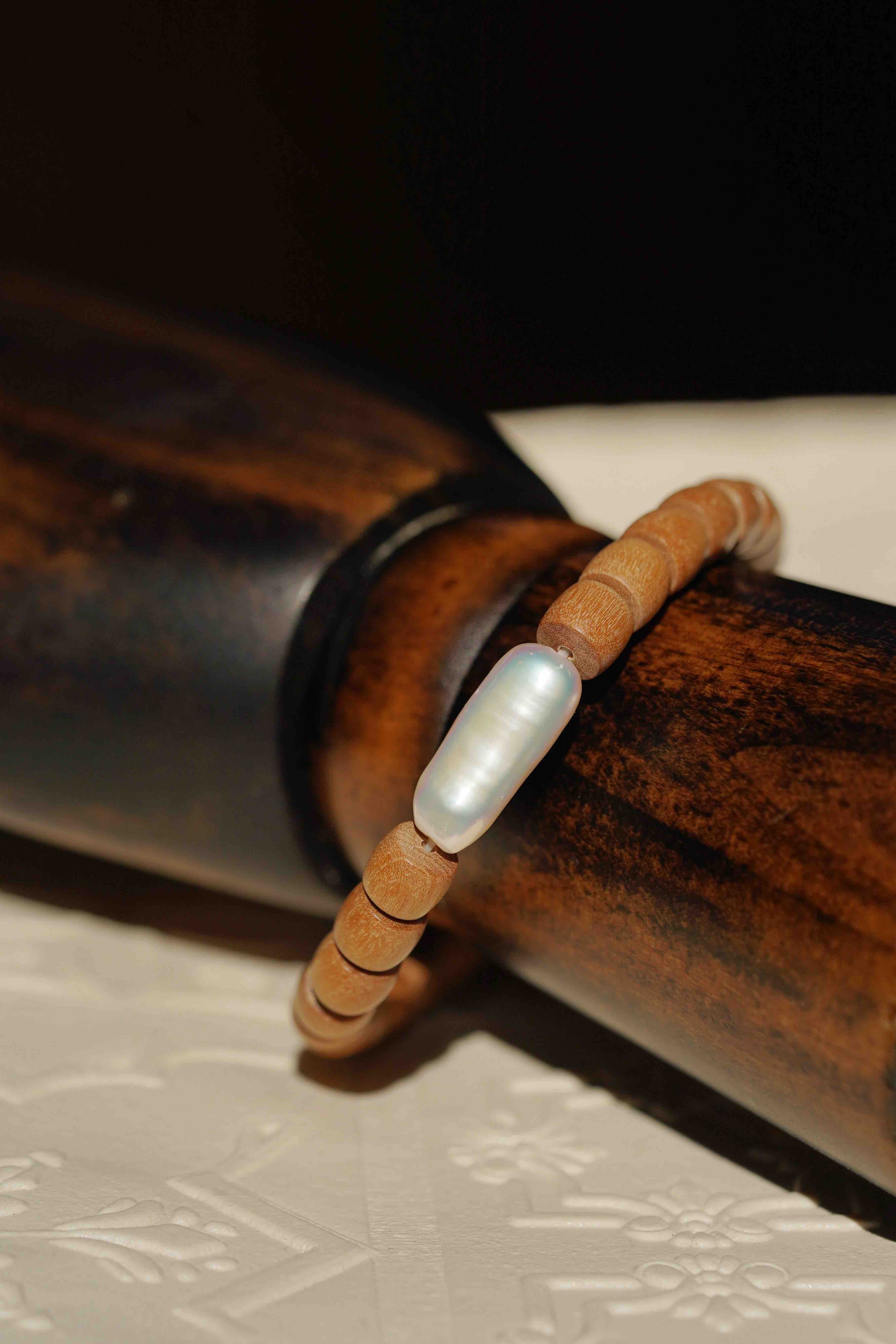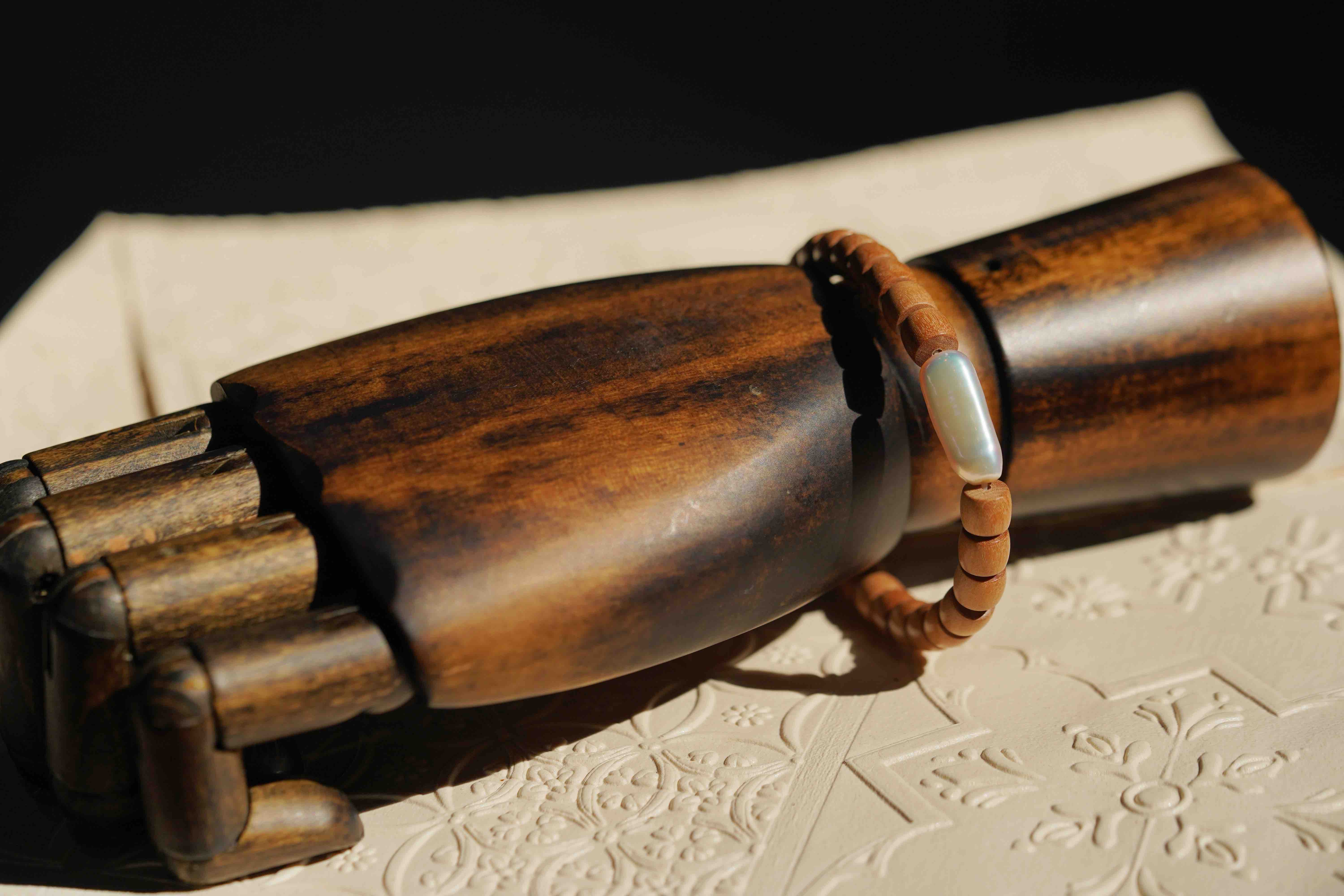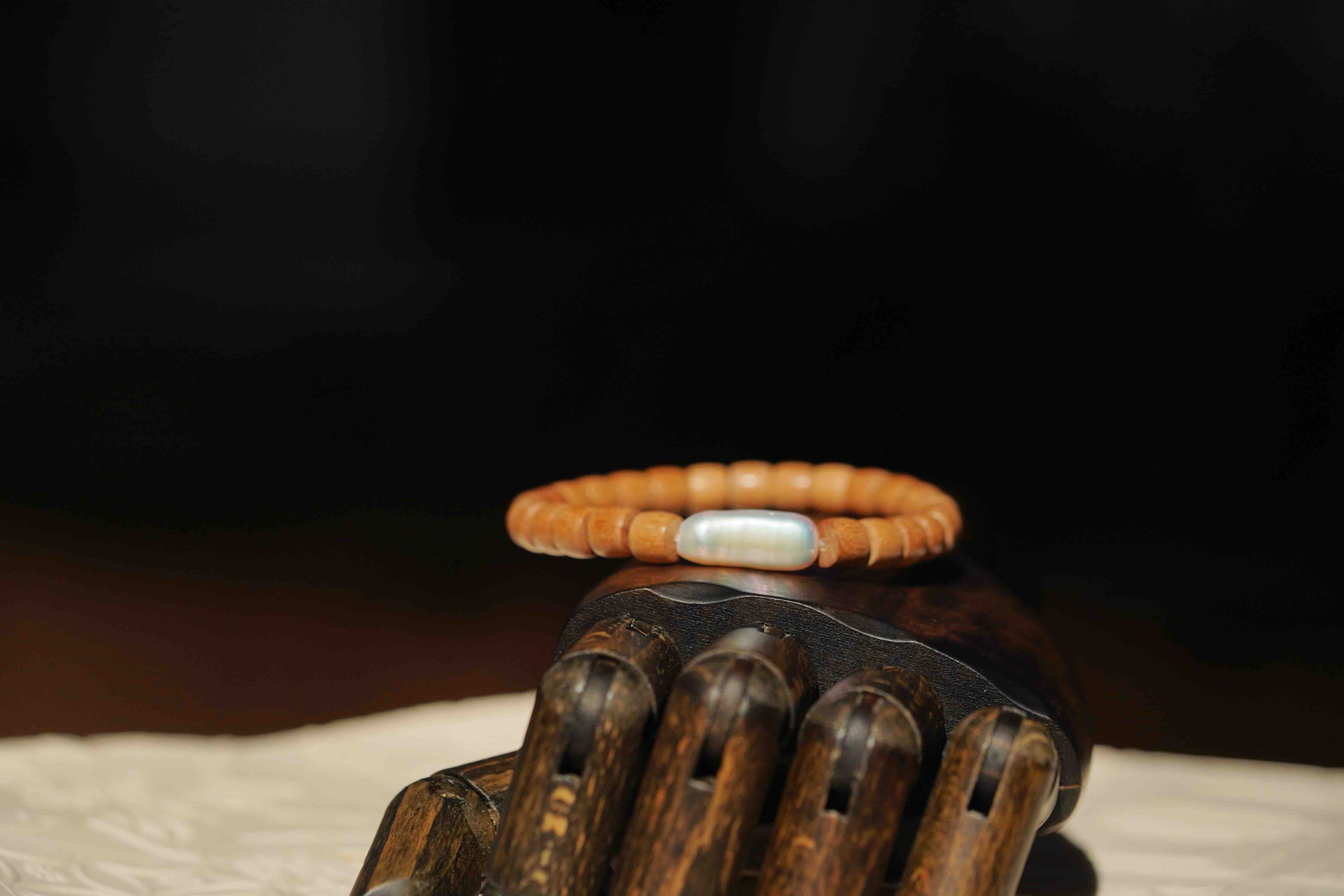简简单单的老山檀直角切,搭配一颗天然珍珠。