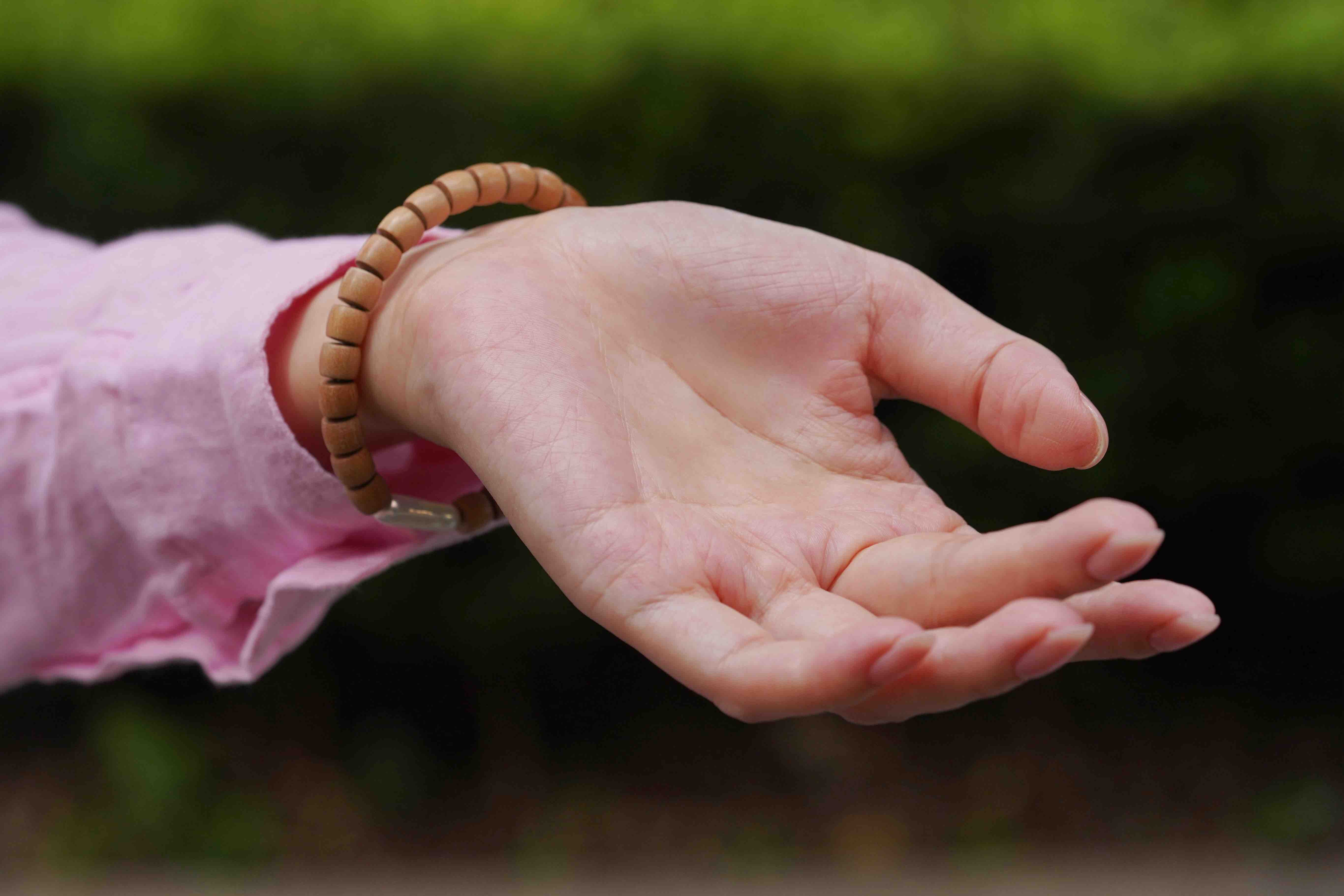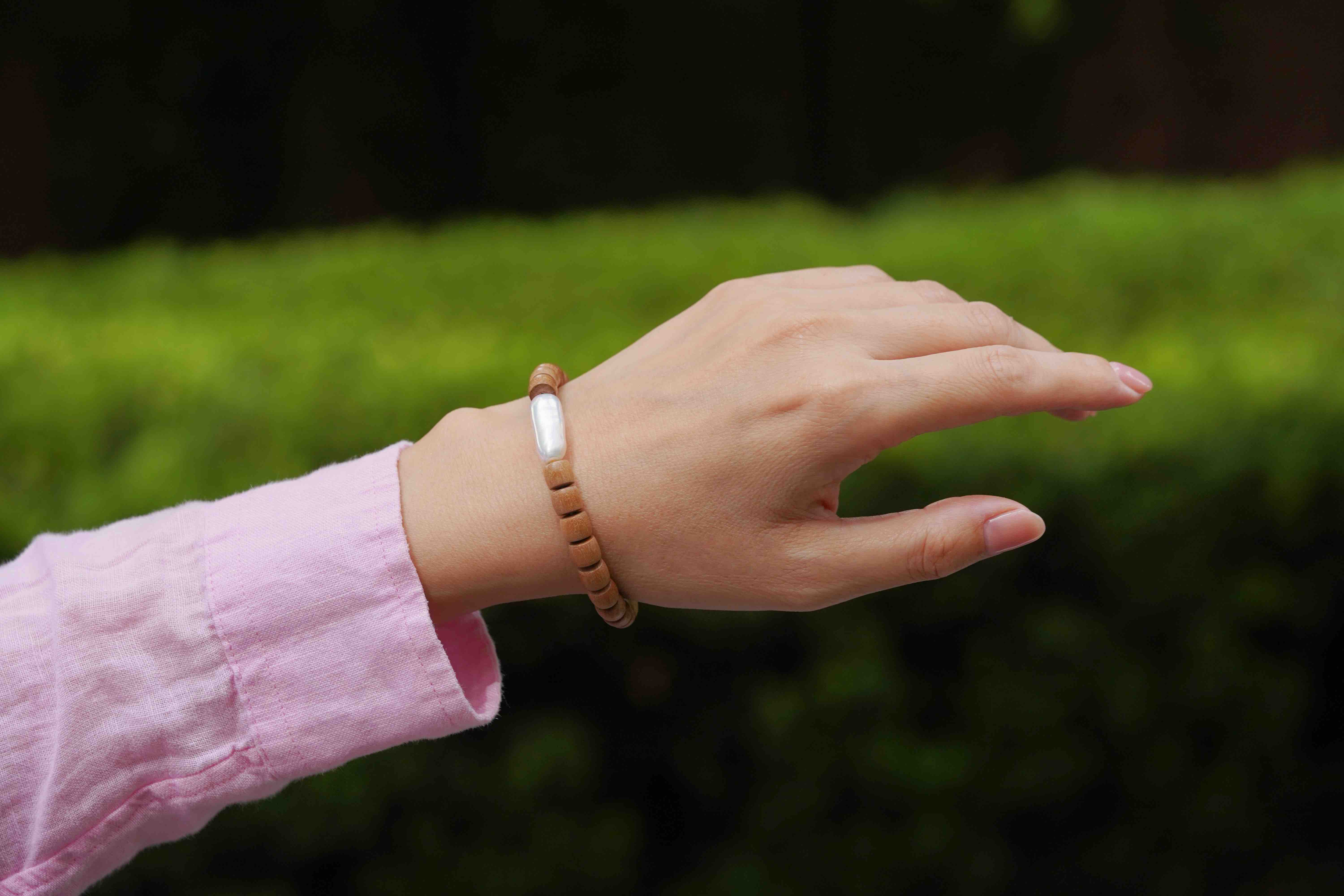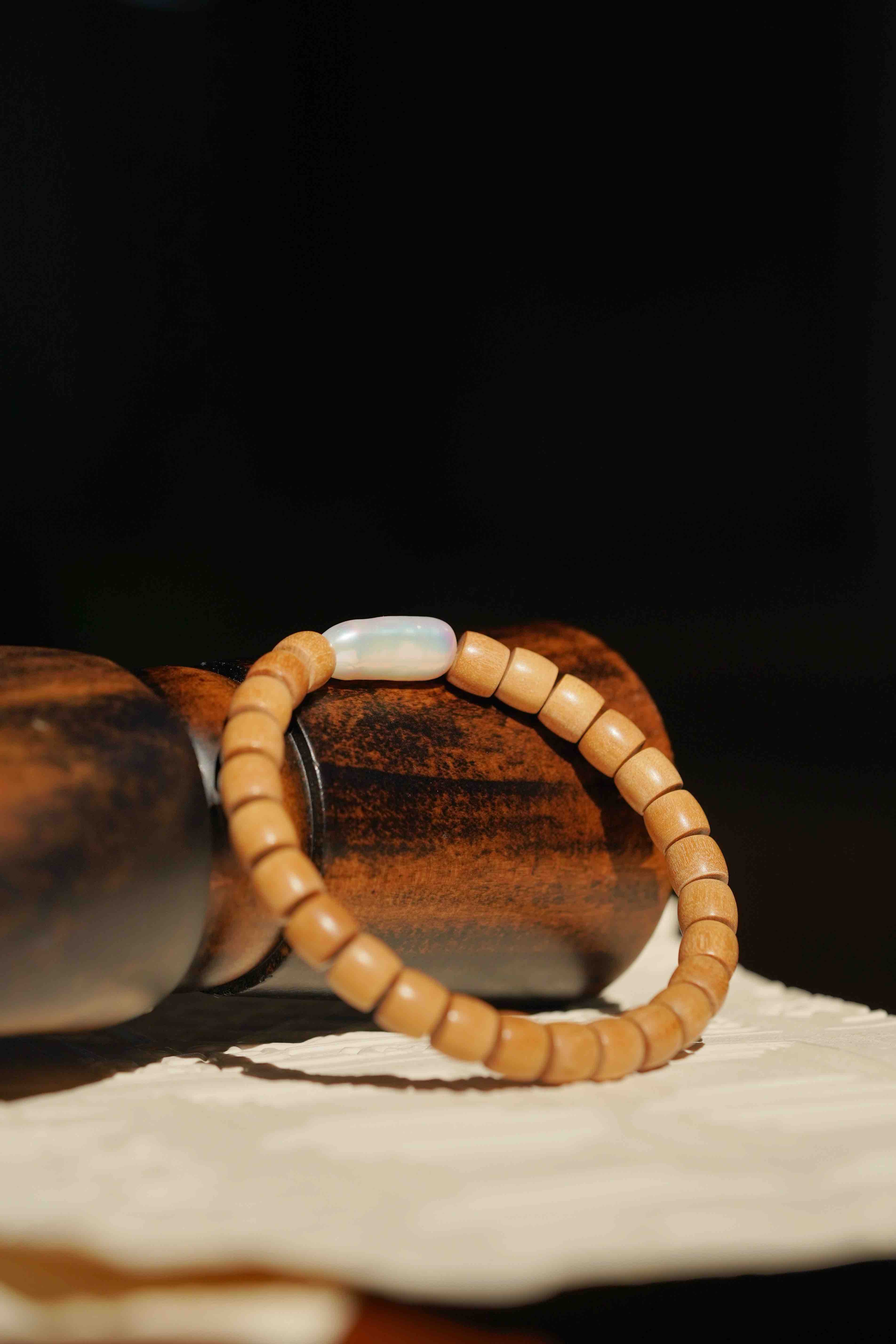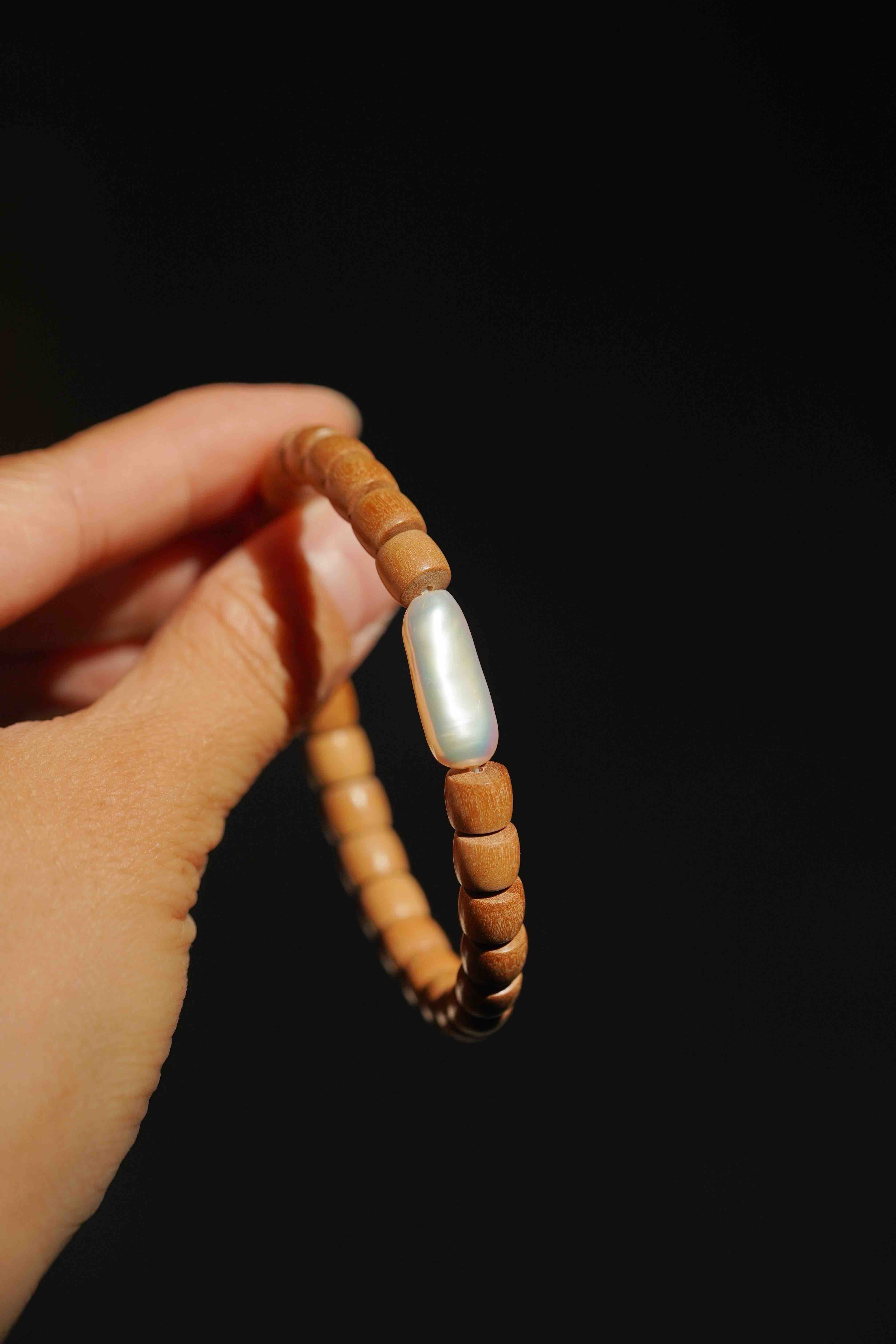简简单单的老山檀直角切,搭配一颗天然珍珠。