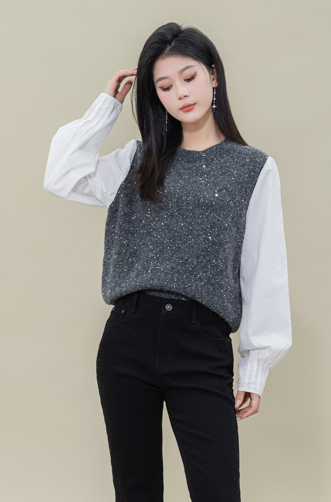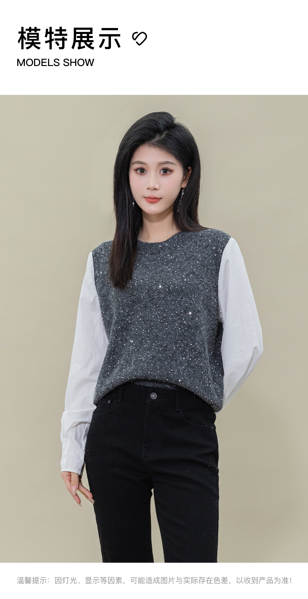 春上新时尚拼接气质优雅柔软舒适小衫1251021 商品图0