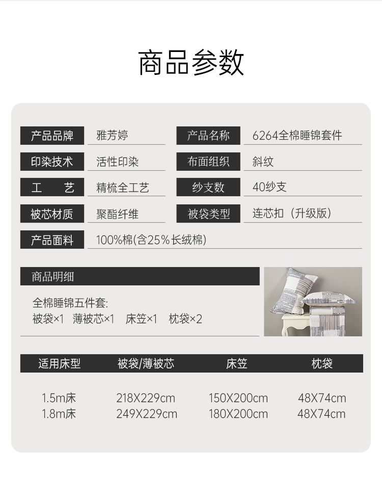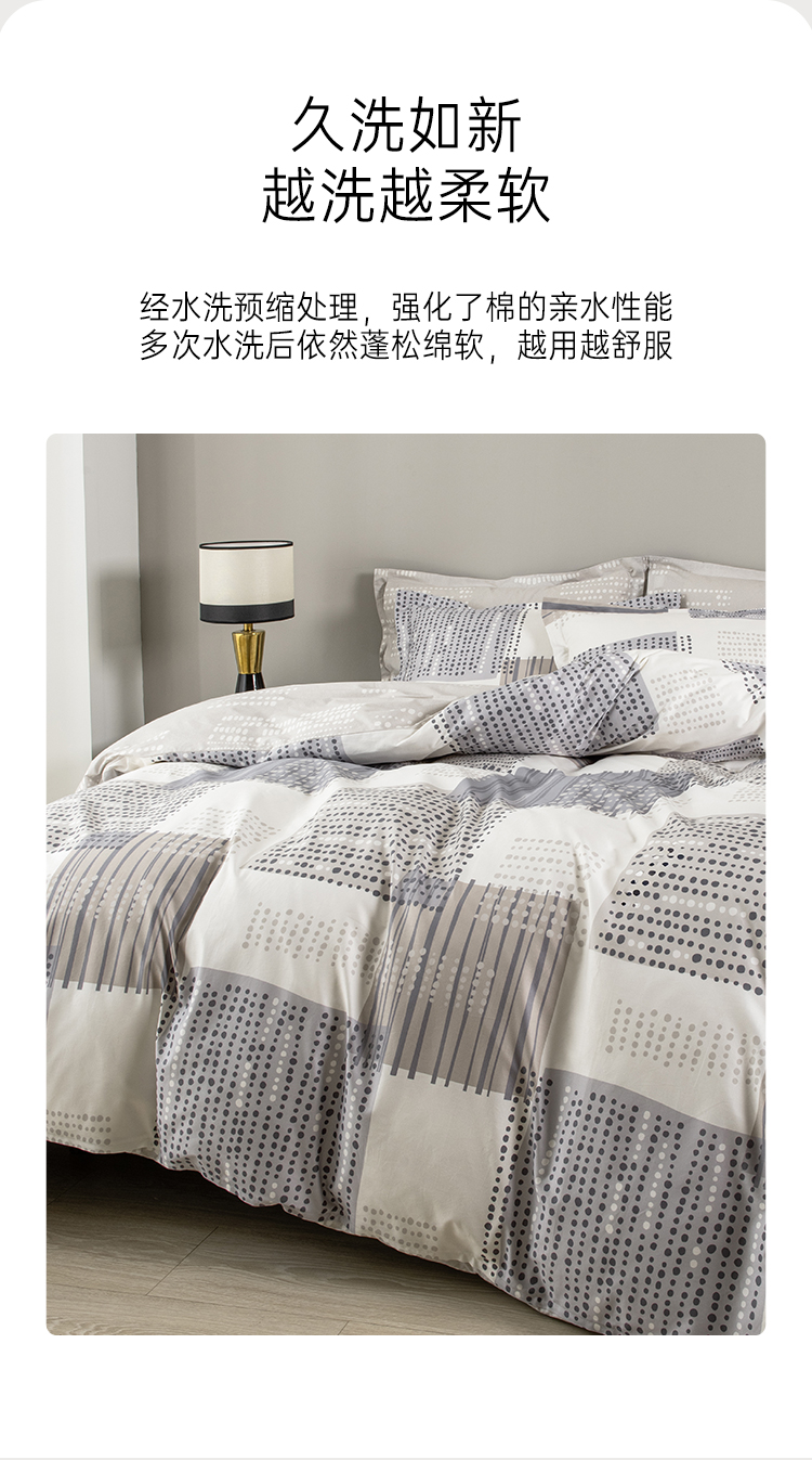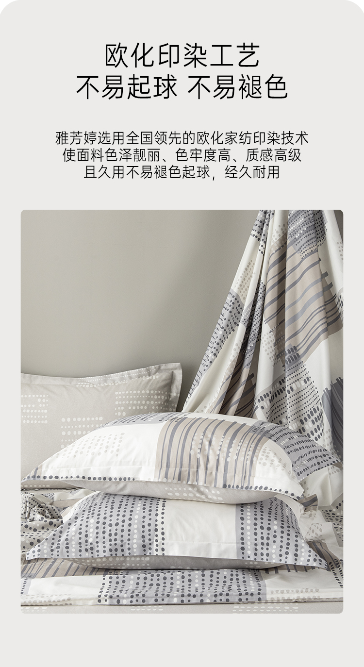 2025年新款雅芳婷100%全棉床上五件套床笠款简约风被套长绒棉套件