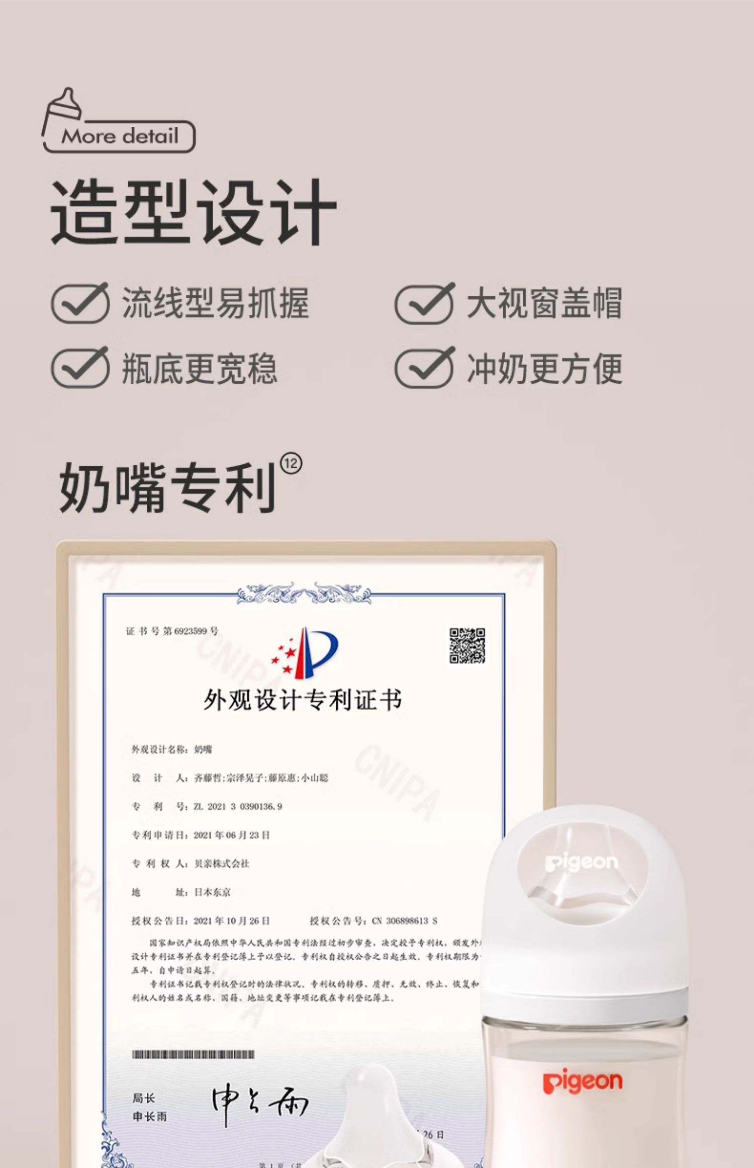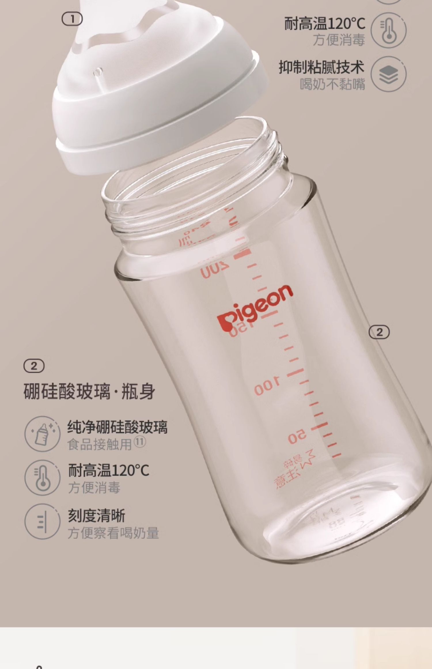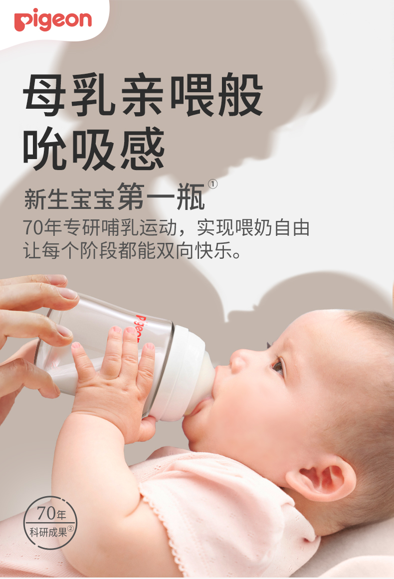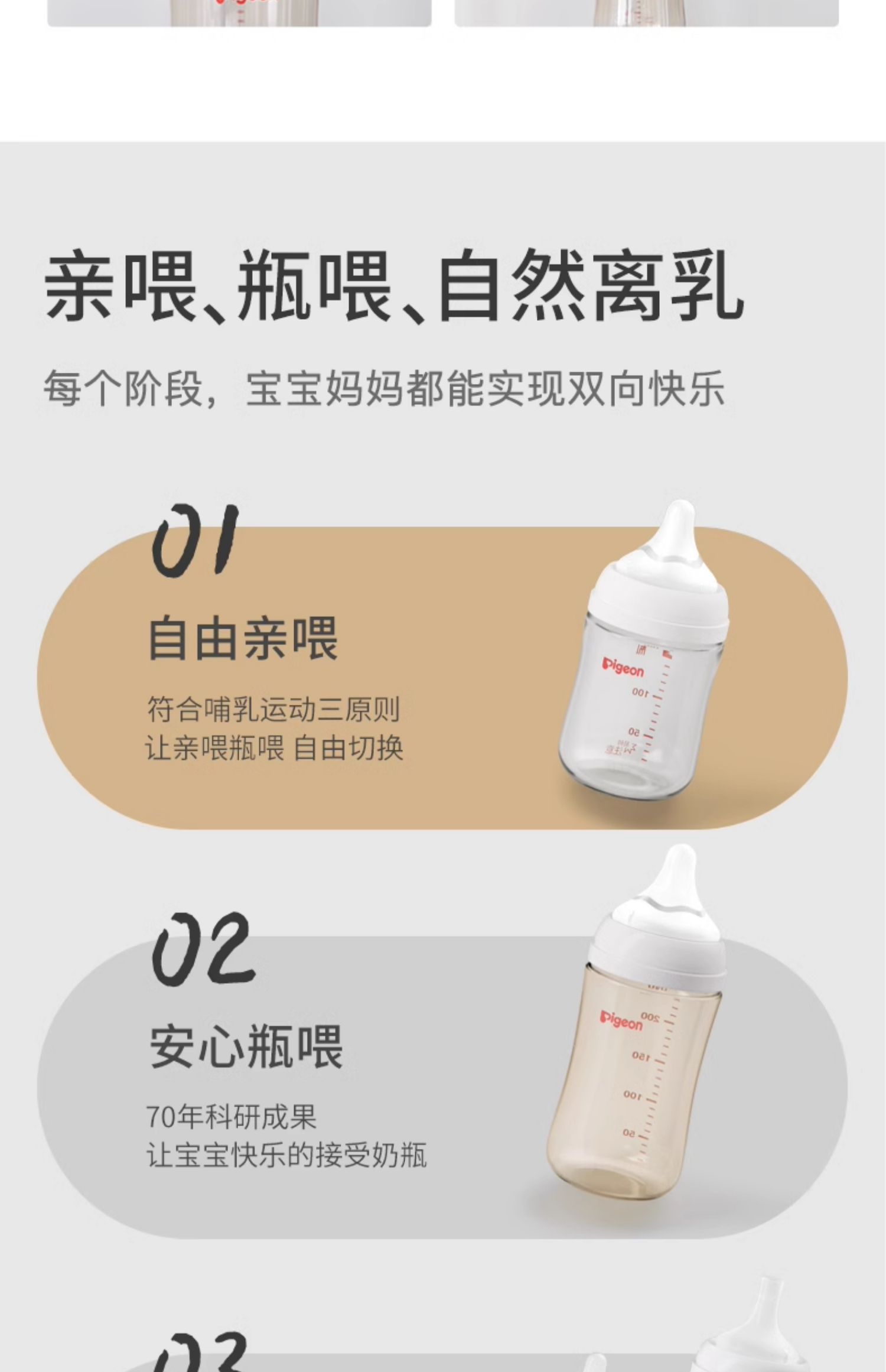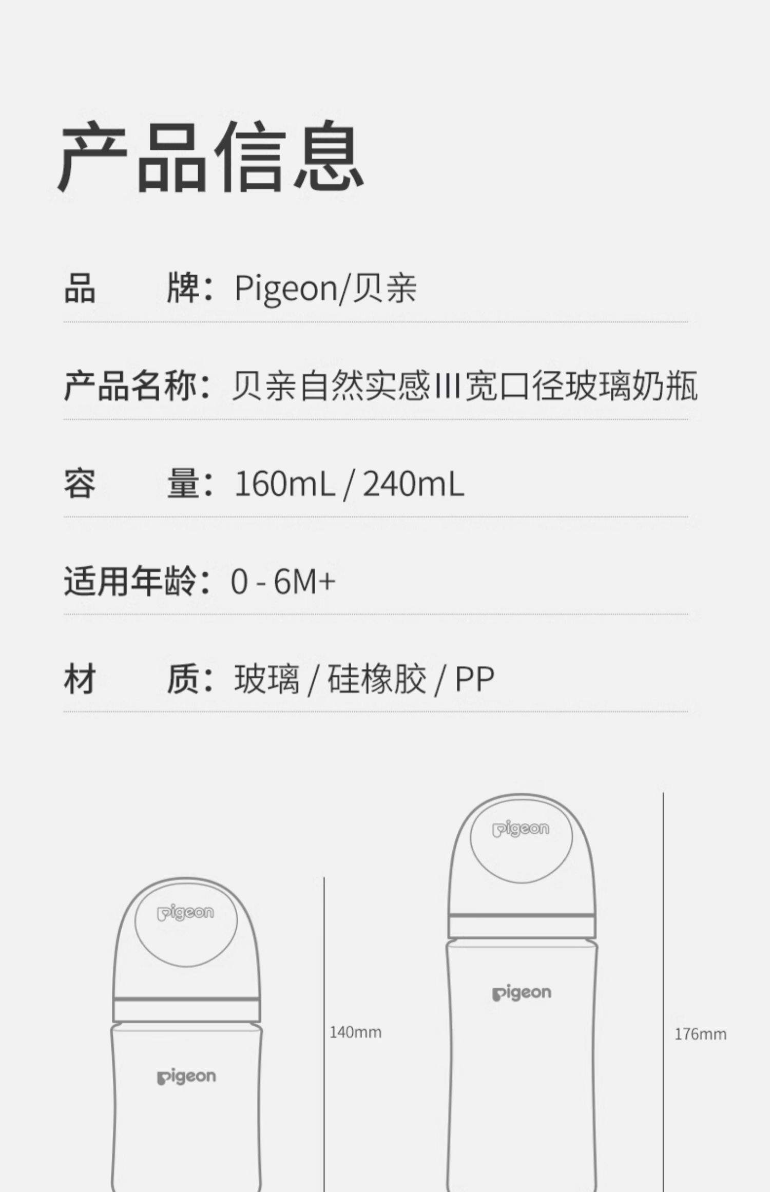 Pigeon/贝亲奶瓶 自然实感第3代PRO系列新生婴儿宽口径玻璃奶瓶PIG-AA185/PIG-AA187/PIG-AA188/PIG-AA260